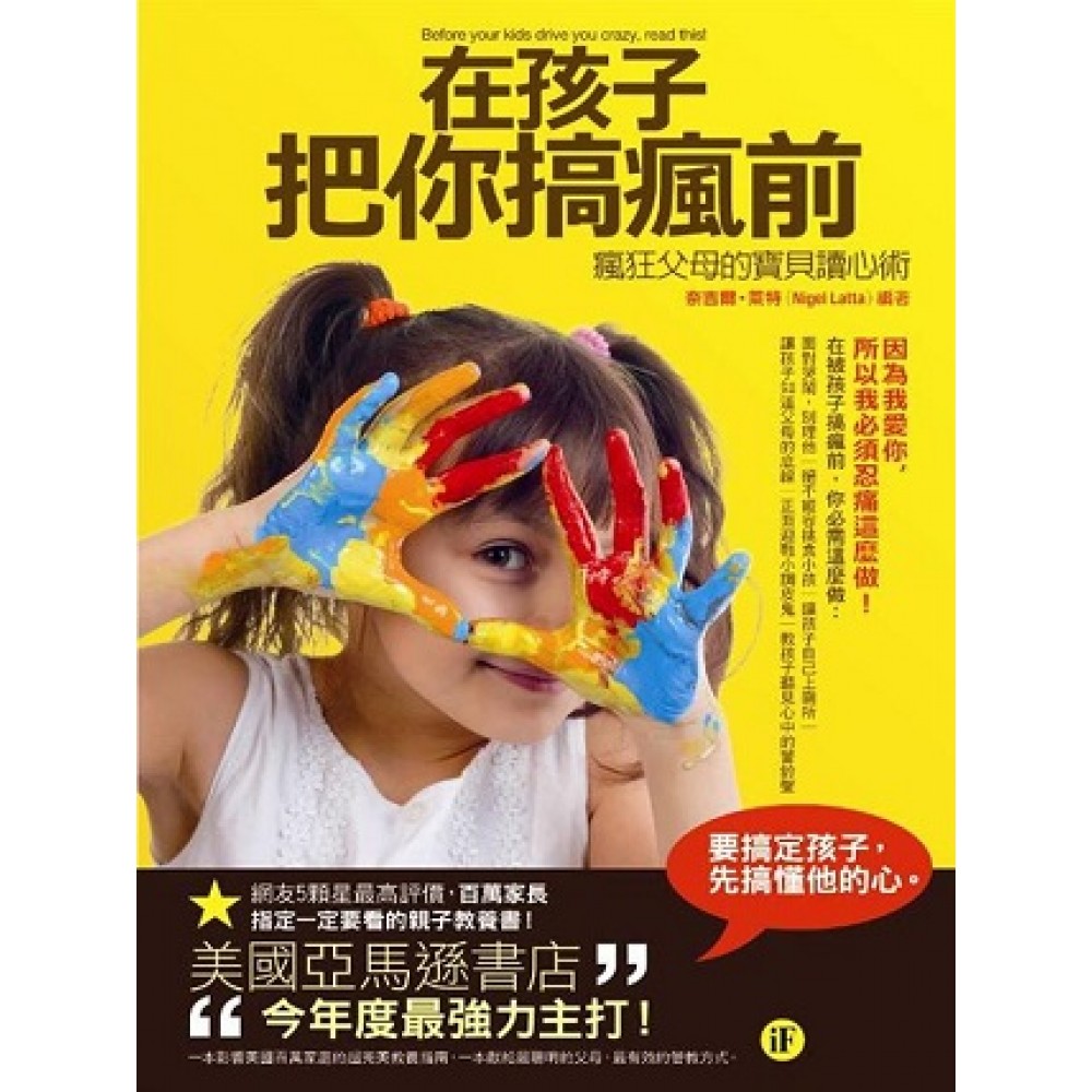 要搞定孩子,先搞懂他的心 美國亞馬遜書店今年最強力主打! 網友5顆星最高評價,百萬家長指定一定要看的親子教養書! 你無法停止對孩子大聲咆哮? 你因為孩子的失控而感到精疲力竭? 你覺得孩子想盡辦法想要搞瘋你,但你卻束手無策嗎? 《在孩子把你搞瘋前-瘋狂父母的寶貝讀心術》給你最有效的方法, 讓孩子乖乖聽話,讓你陪著孩子快樂成長! .「因為我愛你,所以我必須忍痛這麼做!」 《在孩子把你搞瘋前-瘋狂父母的寶貝讀心術》中,家庭治療師奈吉爾.萊特(Nigel Latta),為瀕臨瘋狂的爸媽,撰寫專門對付成長中的孩子的最佳教養準則。 在被孩子搞瘋前,你必須堅持這麼做: .面對哭鬧,別理他。 .絕不縱容挑食小孩。 .讓孩子自己上廁所。 .讓孩子知道父母的底限。 .正面迎戰小調皮鬼。 .教孩子聽見心中的警鈴聲。 .學習和孩子說話,孩子比你想像的更懂傾聽 從只知哭鬧的孩子,到故意調皮的小惡魔,都帶給爸媽極大考驗。無論是日常生活,抑或是培養孩子的良好習慣,與擔心他們週遭的安全,都在在檢視著父母教養的智慧。 《在孩子把你搞瘋前-瘋狂父母的寶貝讀心術》提出相關案例,運用聰明的教養策略,讓爸媽不再感到頭痛。 .陪孩子度過成長的關鍵10年,爸媽請務必學著做: 唯有讓孩子知道你的堅持,你才能克制孩子成長的失控局面! 孩子成長的關鍵十年,奠定他之後的性格修養基礎,因此請善用教養守則。 《在孩子把你搞瘋前-瘋狂父母的寶貝讀心術》點明爸媽務必解決的孩子必經5大失控關卡,正面迎擊父母一定會遇到的5大失控問題: .培養規律睡眠時間 .處理棘手的挑食問題 .教會孩子上廁所 .克制調皮搗蛋的天性 .保護孩子的安全問題 讓父母能夠在孩子教養的過程中,獲得成就感, 也能夠以歡欣愉悅的心情,陪伴孩子與家庭的成長。 .百萬父母親身體驗,神奇教養法則 奈吉爾.萊特(Nigel Latta)以獨特的幽默口吻,指出眾多父母在親子教育上的難題, 針對別出心裁的方式,利用遊戲進行與身為父母應有的10個堅持,讓孩子乖乖聽你的! 關鍵10大教養守則: 1.記得三個R(Relationship) 2.愛很容易,喜歡卻很難 3.孩子是食人魚 4.餵養好行為,讓壞行為挨餓 5.孩子需要設限 6.盡量始終如一 7.拒絕亂說話 8.你必須、絕對、務必要有計畫 9.所有的行為都是溝通 10.與混亂和平共處 《在孩子把你搞瘋前-瘋狂父母的寶貝讀心術》提出18則實際教養案例,讓你跟著案例中的頭痛父母一起學習怎麼搞定孩子,搭配圖表教學,讓父母冷靜的傾聽孩子要什麼,輕鬆管教孩子。 一本影響美國百萬家庭的超完美教養指南,一本獻給最聰明的父母,最有效的管教方式。 與其無意義的打罵吼叫,倒不如運用聰明的教養策略,與孩子一起成長。