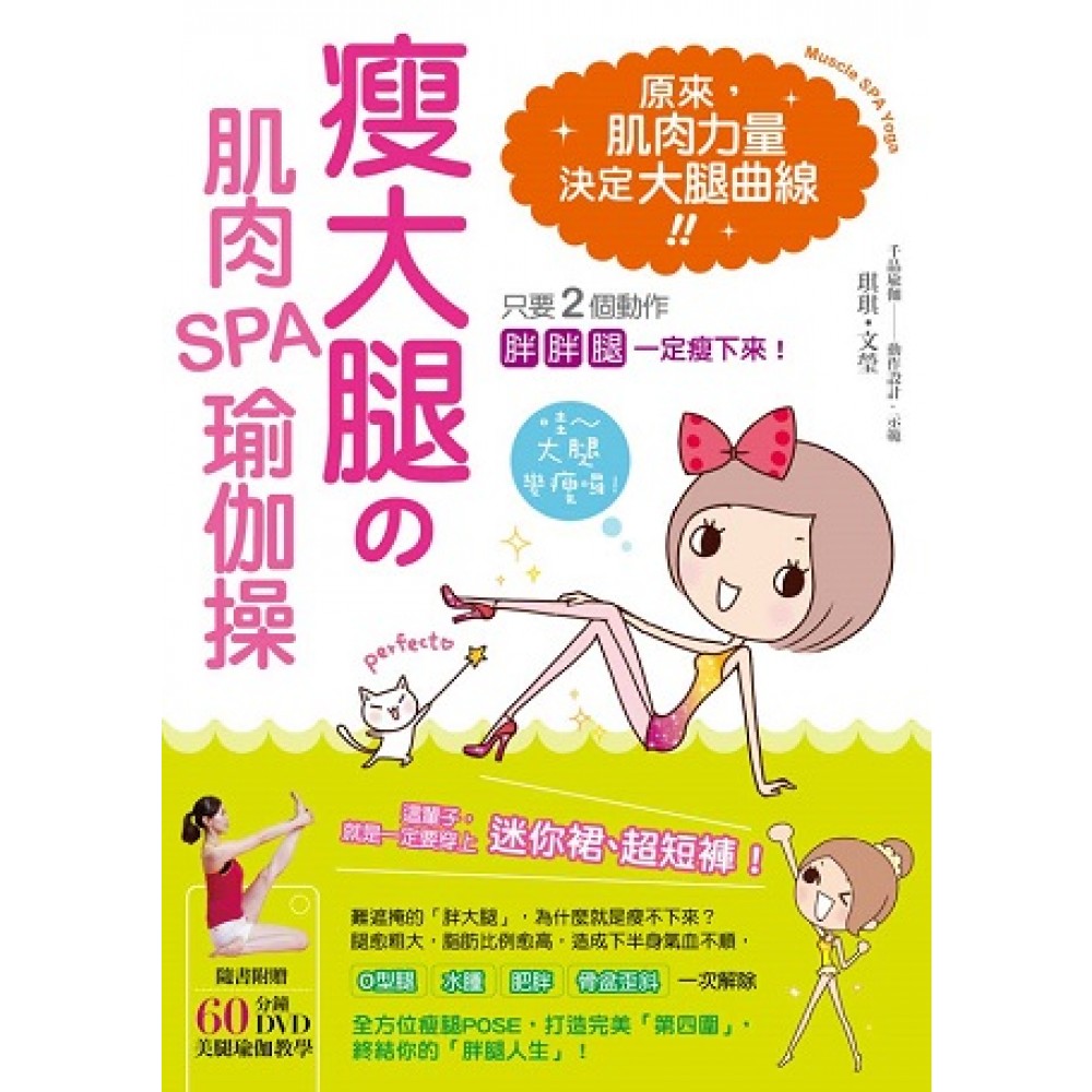★破天荒!隨書送超值【60分鐘完整版】DVD 原來,「肌肉力量」決定下半身曲線。 只要2個動作,「粗大腿」就能瘦下來! ★最難瘦的「大腿」,居然明顯的變細了! 辦公室女孩、運動女孩、肉肉女孩心中的痛就是「大腿太粗」! 原來,「肌肉力量」決定大腿曲線! 史上最強的「瘦大腿瑜伽操」,每天5分鐘大腿肉, 幫你擊退四大胖腿魔王! 【肉肉腿】、【水腫腿】、【壯壯腿】、【歪斜腿】從此ByeBye! ★這輩子,就是一定要穿上迷你裙、超短褲!! 難遮掩的「胖大腿」,為什麼就是瘦不下來? 腿愈粗大,脂肪比例愈高,造成下半身氣血不順, O型腿、水腫、肥胖、骨盆歪斜等問題接踵而至。 全方位瘦腿POSE,打造完美「第四圍」, 終結你的「胖腿人生」! 【Q1】大腿的「脂肪」該如何消除? A:每天做大腿瑜伽操,從此終結你的「胖腿生活」! 大腿多餘的肉肉代表著該處「屯積過多脂肪」,瘦大腿瑜伽可以鍛鍊大腿每個部位「前側」、「後側」、「內側」與「外側」,幫你除去大腿多餘的脂肪! 【Q2】『瘦大腿瑜伽操』為什麼可以瘦? A:「收緊」、「延展」2步驟,就像幫大腿做肌肉SPA一樣! 同一處的肌肉,藉由不同的體位法使得它一下收緊,一下延展,就好像為大腿做SPA一樣,可使肌肉緊實有彈性,讓大腿不但瘦下來,而且線條勻稱美麗。 【Q3】練習『瘦大腿瑜伽』時,該如何調適呼吸? A:「伸展吸氣,收縮吐氣」,燃燒脂肪更快速! 為了要雕塑美麗的曲線,就要全力付出,通常在肢體伸展時要「吸氣」,收縮時要「吐氣」,過程中如果發現呼吸開始變得急促,便可減緩練習的強度。 本書特色 成功度破表!好評五顆星★★★★★ 大腿,就是這樣瘦下來的! 【Step1】自我「胖腿檢定」→輕鬆看出你的「第四圍」合格指數! 腿圍是重要的「第四圍」指標,你的第四圍是不是總處在合格邊緣呢?如果能控制在標準的範圍內,整條腿的曲線就會是纖細而勻稱的,測量你的大腿圍、小腿圍和腳踝圍,看看你是不是「粗腿一族」的成員喔! 【Step2】找出「胖腿人」的形成主因→你也可以擁有一雙【五沒有】的漂亮美腿! 一雙漂亮完美的腿,需具備【五沒有】的條件,也就是沒有「浮腫」、沒有「橘皮」、沒有粗糙的「大象肌膚」、沒有「膝蓋下垂」、沒有「歪斜」等問題,了解大腿的合格指數後,跟著本書找出你的胖腿形成主因,才能對症下藥,達到瘦大腿的目的喔! 【Step3】打敗「美腿殺手」不費力→【燃脂】、【拉長肌肉】、【調整骨架】是首要任務! 原來「水腫、脂肪、肌肉、骨盆、飲食習慣、走路姿勢」都會決定你的大腿粗細,你是屬於脂肪橘皮多的肉肉腿,還是肌肉僵硬的壯壯腿呢?本書用淺顯易懂的圖文說明加上自我檢測,可以清楚了解你的雙腿是屬於那種類型,同時幫你找出解決方案! 【Step4】把握瘦腿的黃金時段→【壯壯腿】攻略、【辦公室瘦腿運動】隨時隨地都能瘦! 做錯運動不但乳酸容易堆積,肌肉也會顯得僵硬,並且發展成又圓又大塊的形狀,每天都坐在辦公桌前沒有時間運動?沒關係!本書特別列出壯壯腿及辦公室的瘦腿攻略,這些小動作可以讓你在神不知鬼不覺的狀況下,偷偷鍛鍊自己的雙腿喔! 【Step5】每天做全方位瘦腿瑜伽操→配合【床舖瑜伽】【ONEPOSE瑜伽】大腿一定瘦! 為了方便大家練習,本書總共提供了約60招體位法,另外還特別設計了床上也可以做的瑜伽,讓你在睡前練習,夜夜好眠,以及只要ONEPOSE就能瘦腿的動作,動作搭配圖文解析,清楚實用,人人都能輕鬆上手,讓你輕鬆地完成瘦大腿的夢想。 【Step6】看DVD邊做邊學效果更好→這樣還不夠,跟著老師一起練習,【瘦腿指數】加倍! 隨書附贈60分鐘的『美腿教學DVD』,搭配清楚的旁白說明,並且示範《經典版本》與《替代版本》,跟老師一起練習,為自己打造『心機美腿』,從來沒學過瑜伽也不用擔心,在家就能輕鬆練習,下一次出門就能如願穿上短褲、迷你裙喔!
