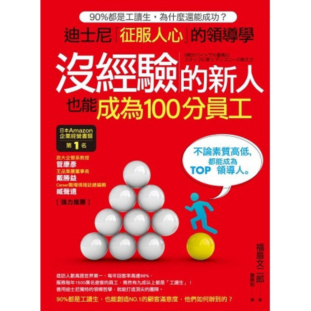 99%的人才都是「培養」出來的, 不訓練員工,就是一種損失。 這些帶人的方法,連沒經驗的「工讀生」都能學會! 日本Amazon企業經營書類第1名, 東京迪士尼首度公開「工讀生變領導人」的訓練法。 善用「迪士尼領導學」,任何一種員工都能變「頂尖人才」。 別老抱怨員工沒才能,因為,「主管態度」決定員工的「表現」。 每年遊客人數名列全世界NO.1,迪士尼樂園竟然90%都是工讀生,為何還能—— *整個樂園裡看不見一點點垃圾。 *不管什麼時候去,園區裡的玻璃窗都沒有灰塵或污垢。 *冬天時,園區裡的草地竟然還是綠油油的! *廁所總是乾乾淨淨。 *即使是下雨天,戶外舞台區的椅子還是乾的。 *每一位迪士尼員工對小孩子說話時,一定會彎下身來。 *遊客掉在遊樂設施底下的隱形眼鏡,都能找回來。 這些例子都是去過「東京迪士尼」的人,會感到很不可思議的事實。到底,迪士尼到底有什麼獨特的帶人方法,能讓上萬名員工維持如此「高品質服務」呢?而且25年來,始終如一! 這些帶人的方法,連part-time工讀生都會! ◎做給他看,不要光會說 ◎不能只看結果,盡全力做事的態度才是重點 ◎「認同感」比加薪重要,牢牢套住員工的心 ◎先有「體諒心」,才有領導力 ◎就算要「責罵」,都要是出自於為他好 ◎多溝通,「共同的想法」越多,越有效率 ◎「面對面」,才是最好的溝通方法 ◎不論任何指示,都要告訴他「為什麼」 ◎讚美,讓員工更有信心 ◎給意見,不如讓他學會「做決定」 日本311大地震,迪士尼的所有員工,都堅守工作崗位, 就連在遊行中的米奇及米妮,都還是不斷微笑及揮手, 直到確定要閉園後,才集中遊客並給予照顧, 沒有人生氣或抱怨,為什麼他們能做到? 這本書,告訴你答案。 本書特色 【本書3大重點──跟著做,工讀生也能變人才】 Point1★最有效的帶人方法──統整人才教育訓練精華,馬上能運用 不會帶人?不管說什麼,對方還是聽不懂?沒關係,實踐迪士尼的帶人方法,你會發現,原來只要用對技巧,不論哪一種員工,都能培育成一流人才! Point2★真實經驗大分享──內容淺顯、實用,看完就明白 打破一般企管書以理論為主的編寫方式,本書以作者的親身經驗搭配好懂的說明文字,不但不枯燥,更能在輕鬆的閱讀中,學會主管必備的帶人知識。 Point3★搭配圖表,列出步驟和重點──跟著圖表實踐,一看就懂 覺得只看文字沒有圖說,很難懂嗎?沒關係,所有技巧及貼心叮嚀都已化為圖表,再也不用擔心無法消化內容,只要跟著示意圖執行,你也能帶出「最棒的員工」。