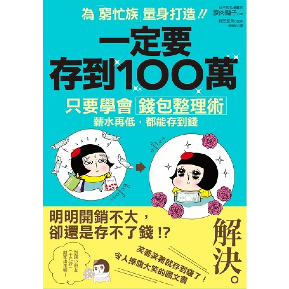 明明開銷不大,為什麼還是「零」存款? 想存100萬?想用最簡單的方法?日本負債漫畫家的真實故事, 從今天開始,學會「錢包整理術」,就能輕鬆滾出人生第一桶金! 日本史上最暢銷、最實用的存錢漫畫書 沒錢的人一定要看,絕對讓你笑著笑著就存到錢了! 作者腹肉艷子是在家接案子的插畫家,每天關在家裡努力工作,天天畫到三更半夜,連逛街買東西的時間都沒有,但卻負債累累,她百思不解自己到底是把錢花到那裡去了?明明省吃儉用、連一頓大餐都捨不得吃;很少出國也不玩股票;更沒有在男人身上亂灑錢……,但卻每個月被銀行催繳貸款,銀行存款也都只有千位數字……,救命啊!為什麼都這麼「刻苦」了,還是存不到錢啦??? 直到有一天,她遇見了理財專家有田宏美老師,開始從「錢包」管理,改變自己「浪費體質」的習慣,真的如願從到人生的第一個一百萬,還成功減肥了呢! 有田宏美老師是日本相當有名的理財專家,成功幫助過數萬名負債女性存到人生第一個一百萬,她認為多數人會成為「窮忙族」(每天辛苦工作,卻存不了錢)的原因,都是許多小習慣造成的。 例如:錢包裡有一大堆發票、集點卡、會員卡;永遠搞不清楚帶多少錢出門;常用大鈔付錢,覺得拿零錢太麻煩;總是塞滿用不到的集點卡和會員卡;會帶兩張以上的信用卡在身上……,這些我們看似「正常」的習慣,其實都隱藏著「破財」危機。 我們一直認為錢包裡什麼都可以放,許多人的錢包總是鼓鼓的、重重的,但並不是因為裡頭放了很多錢,而是塞了一堆過期會員卡、發票等雜物,錢包亂七八糟的人,絕對存不了錢!作者腹肉艷子學習理財的第一步,就是把錢包裡的東西通通倒出來,慢慢改變用錢習慣,終於實現存到100萬的夢想。 作者跟多數讀者一樣,不喜歡記帳、數學很差、永遠只能看完投資理財書籍的第一頁(接下去都在鴨子聽雷,一看到數字腦袋就空空如也),她怎麼可能存到100萬呢?是如何辦到的? 1.便利商店,少去: 很少到高級餐廳吃飯,也很少逛百貨公司超市,照理才說每個月的餐費和日常用品的費用不會花這麼多錢才對啊……,理財老師發現腹肉艷子雖然刻意不去昂貴超市商店買東西,但幾乎天天都會到便利商店買特價打折商品,積少成多,就是一大筆錢,請立刻停止在便利商店亂灑錢! 2.記住,「請別人幫忙=花錢」 外食、外送、坐計程車……,雖然看起來很方便快速,但其實都是得用多一點錢財來換得的。人一旦工作繁忙,連一點小事情都會覺得很麻煩很累,會忍不住替自己找藉口,「反正我這麼努力了,花點小錢無所謂吧?」自己的事盡量不要借他人之手完成,是存錢的捷徑。 3.領薪日,一次提出每月固定支出: 每月月初通常是餐廳生意最好的時候,也是最容易亂花錢的危險期。發薪日之前先規畫好那些是固定開銷(水電費、租金等),一次全部領出放進信封袋寫清楚,不旦可以省下跨行提領的手續費,也可避免在發薪日那幾天出手突然變大方,亂撒錢。 4.開一個只能存款,不能領錢的帳戶: 如果你是「有多少就花多少」的人,一定要在錢到手之前想辦法存起來,「自動定期轉存」是儲蓄的關鍵,有大筆進帳的時候也可以多存一點。善用定期定額存款和自動扣款存錢,可以避免過度消費,也是一種強迫存錢的好方法。 5.養成「每天存50元硬幣」的習慣 許多人會以年或月當作儲蓄單位,如果能以「日」計算,更能感受到現實,一旦算清楚一天要存多少錢,就很清楚知道那些消費其實是不需要的,每天存幾個50塊錢硬幣,能快速建立存錢自信呢! 6.別讓你的千元大鈔票「不告而別」! 「管他的,沒零錢,拿一千元大鈔出來找錢吧……」完蛋了,一旦把錢找開來,就很容易亂花錢,這是人性的弱點啊,千萬要忍住!如果身上只剩千元鈔票,不妨就直接回家吧,練習「即使不花錢也能過一天」,累積這種經驗是很重要的! 只要用對方法,你也能加入「百萬小資女」行列! 本書特色 本書4大重點──史上最簡單易學的存錢書 Point1風趣幽默----笑著笑著,存到100萬 揮別過去沉重的說教文字、複雜理論。風趣幽默的漫畫,笑著笑著就學會了,不但簡單易懂,更能立即行動。 Point2親身經驗----從負債到存百萬的真實故事 覺得半信半疑?不知是否有效嗎?別緊張,口說無憑,本書作者親自實驗,從負債的月光族,變身為百萬小資女孩,完整過程毫不保留,一次大公開。 Point3方法簡單----只要五週,就能養成存錢體質 使用按部就班的進階式存錢法,一天改變一點「存錢的習慣」,慢慢累積,只要五週,立刻養成強健的「儲蓄體質」。 Point4表格記憶----列表清楚,隨翻即可查到重點 怕一次記不起存錢的重點嗎?別擔心,每篇漫畫都搭配表格說明,羅列全部必要事項,隨翻即查,再也不會錯過內容了。