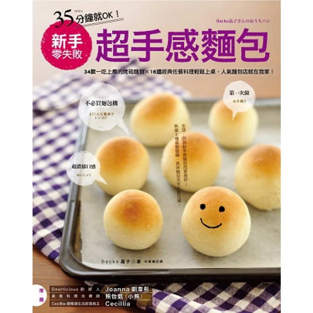 做麵包只要35分鐘? 不用費力打麵糰,不需要專業烤箱,優雅做出美味麵包。 零基礎也不失手、想吃馬上能動手做。 34款人氣麵包×16道經典料理不藏私圖解大公開! .走過麵包店時明明不餓,香味卻陣陣撲鼻,讓你忍不住踏進店裡? .買了重如磚頭的食譜書回家研究,卻怎麼也做不出理想的味道? .擁有懶人麵包機,妄想就此化身賢妻良母,不料成品卻難以下嚥? .想到做麵包得從揉麵、發酵開始,非常耗時傷神,還沒挑戰就宣告放棄? .或是,想在清朗的周末午後,與三五好友在家來個悠閒的「午茶之約」? 愛吃麵包、想做動手試做,卻因為怕麻煩、不得要領而望之卻步嗎?別擔心!只要跟著本書掌握發酵與揉麵的簡單步驟,不用麵包機、不用專業烤箱,也能輕鬆烤出不輸專業麵包店的「超手感烘焙」。 ◆破除兩大迷思,做麵包輕鬆上手 .聽說做麵包很花時間,從揉麵到出爐,少說也要兩個半小時? ○其實扣除發酵、烘焙這些「什麼也不必做」的等待時間後,實際動手做的時間不過30分鐘,只要善用空檔打掃、閱讀或與家人相處,做麵包一點也不花時間。 .聽說沒有專業烤箱,就不可能做出媲美麵包店的美味麵包? ○本書食譜正是為了沒有專業烤箱的人而設計,只要能擺進寬約25公分的烤盤,溫度能設定至250度,即使是家庭烤箱或微波烤箱,都能烤出好吃的麵包。 ◆34款人氣麵包×16道經典佐餐料理×12個解惑小專欄獨家收錄 日本超人氣烘焙女王Backe晶子小姐,過去也嘗試麵包機、不斷研究市售食譜,卻偏偏做不出理想味道,經過十年苦心專研,終於發展出這套獨門的麵包食譜。有別於坊間食譜與烘焙教室「從圓麵包開始」的教法,堅持從「模型麵包」出發,幫助讀者掌握發酵的過程,確實熟悉烘焙的節奏與步驟後,再一步步地進階,從原味麵包到貝果、披薩,變化出34種迷人風味: (鬆軟肉桂捲) 將撒上肉桂粉與黑糖的麵糰捲起來,放入烤模烘烤,接著再淋上滿滿的奶油起司糖霜,一款適合搭配咖啡享用的點心就輕鬆完成了。 (卡士達餐包) 只要有台微波爐,就算是作法困難的卡士達醬,也能在家輕鬆完成。一口咬下,綿密滑順的卡士達醬在口腔中散開,這滋味真會讓人忍不住開懷大笑。 (巧克力橙皮麵包) 在可可麵糰裡加入巧克力與柳橙果皮所烤出來甜麵包,甜而不膩,略帶苦味,讓人一吃就停不下手來。 (芝麻起士貝果) 在麵糰中加入芝麻與起司丁,起司在貝果裡融化開來,伴隨芝麻淡淡的清香,香滑交融的多層次口感,真是絕配。 (酥烤瑪格莉特披薩) 將麵皮□成薄片,烤出來的披薩口感酥脆。水潤多汁的小蕃茄與新鮮芳香的羅勒葉,搭配莫札瑞拉起司,呈現道地好滋味。 此外,更針對「烘焙教室」、「午餐約會」、「自家咖啡店」、「慶生派對」等4種情境,各設計一套含前菜、主餐、甜點、飲品的經典料理,搭配麵包一起享用,美好時光就此展開。 (搭配小餐包的飽足午餐) 紅酒燉豬肉∕醋漬豆仁∕和風焗烤蘿蔔∕薑汁奶茶 (帶著吐司三明治去野餐) 法式胡蘿蔔烤雞三明治∕蔬菜佐香蒜鯷魚醬∕迷迭香炒蓮藕 (人氣Cafe的貝果早午餐) 萵苣雞肉沙拉∕鮮奶蔬菜濃湯∕3種奶油起士抹醬∕優格奶凍 (披薩香四溢的歡樂派對) 綜合蔬菜燉湯∕酪梨橄欖沙拉∕燻鮭魚佐檸檬橄欖油沙拉∕桑格利亞酒 從模型選擇、粉類介紹、技法應用到包裝方式等……,針對第一次接觸烘焙的讀者們設計12個小專欄,讓新手不再害怕、慌張,從第一次揉麵開始就愛上做麵包! ◆享受下午茶不必出門,美味麵包天天在家出爐! 遲起的假日午後,想來客慵懶的早午餐;和好久不見的姊妹淘相約下午茶,天南地北的聊天;偶爾喝杯咖啡徜徉閱讀之海,當一日文青……,誰說這些浪漫與閒適,一定發生在咖啡店?自己在家動手烤麵包吧!外型如何不重要,從揉麵、發酵開始,隨心所欲搭配材料,再加入對家人、朋友以及自己的體貼心意,溫暖人心的美味麵包就出爐啦! 本書特色 (一)35分鐘就OK:食譜附有照片及Stepbystep的詳細解說,初學者也能快速上手 (二)材料簡單:使用便宜又容易取得的材料,準備起來不再耗費心力、傷荷包 (三)不需要摔打麵糰:不用費盡力氣,可以輕鬆又優雅的安靜作業 (四)不需要專業級烤箱:運用價格親民的微波爐烤箱就能烘烤麵包 (五)超口感:比起外型更重視麵包的口感,烤麵包是種享受,從此不再受罪 (六)掌握關鍵化繁為簡:重要步驟扎實練習,不重要步驟能省則省 (七)獨家收錄16種經典佐餐料理:搭配麵包一起食用,美味加分