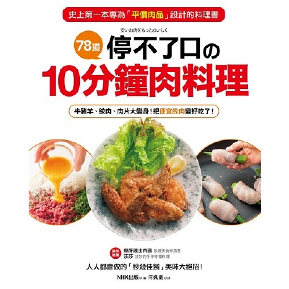 序 ◆一次發現牛、雞、豬、羊肉的絕佳美味! 肉類料理是餐桌上的主角。豬肉、雞肉、絞肉,以及牛肉、羊肉等,肉品的種類與部位雖然琳琅滿目,可是一提到營養充足、能簡單烹調又下飯的菜色,還是脫離不了肉類。因此本書專門為大家介紹78道能使人念念不忘、食指大動的肉類佳餚。 ◎CP值超高!買超市便宜的肉也能每天吃好料! 如果每天都想煮一道肉料理,其實不需要買太貴的肉,選購便宜的部位或是特價品就可以了。因此本書大膽捨棄豬肉塊、肉排、雞腿肉等價格稍高的食材,而以豬肉片、雞胸肉、牛豬絞肉等「平價肉品」為主。 另外,設計食譜時,即使搭配常見蔬菜,也會把「不同以往的滋味」當作目標,改變調味和料理方式,創造吸引人的新菜色。 ◎3步驟,美味高下立現 肉類食材事前處理必須細心謹慎,煮的時候可以試著變換搭配的蔬菜與調味料,選擇適當的加熱方式。只要留意這些小細節,每次下廚都能更接近美味一步。請各位務必按照食譜簡易快速的3步驟做一遍,會發現相同食材做出的菜,美味居然大大加倍,絕對可以讓你齒頰留香、吮指回味。 ◎珍惜食材,平民美饌俯拾皆是 除了牛、豬、雞肉外,還要為大家介紹價格合理,但鮮少有機會躍升餐桌主角的內臟與其他肉類料理,如雞肝、雞胗、羊肉、絞肉鬆等。到超市賣場如果看到這些食材,一定要記得買回家試做看看。用心嘗試就能開發出更多高貴不貴的料理喔! ◎「調味料」是讓佳餚1變3的美味大絕招 最後一個美味秘訣是──使用平常不買、聽過名字卻不會用的調味料與辛香料。試著用這些調味料烹煮入菜,家常菜換個口味,嚐一口就讓人驚呼「超好吃!」變換調味方式,能煮的菜色也會瞬間爆增3倍,不用煩惱單調料理吃到膩。 現在,請大家開始體驗「省錢省時3步驟」下廚的樂趣,做出好吃到令人上癮的肉類佳餚,盡情大快朵頤吧!