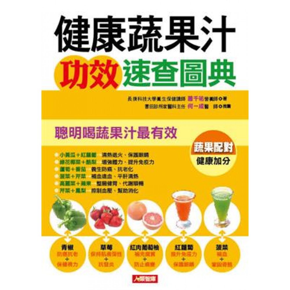 名醫推薦序 吃的聰明,健康滿分 何一成 醫師 作者自序 防癌抗病專家-蔬果汁 蕭千祐 營養師 導讀 本書使用說明 Part 1 蔬果知識8大問 蔬果有何營養成分?14 什麼是植物生化素?15 飲用蔬果汁好處為何?16 何謂蔬果的四性五味?17 你適合吃哪種蔬果?18 生病了,怎麼吃蔬果?19 蔬果如何保存、挑選?21 Part 2 7色蔬果營養保健密碼 綠色蔬果汁 檸檬 平衡體內酸鹼好幫手 ●柚香檸檬汁●蜂蜜檸檬汁 ●莓果檸檬汁●蘋果檸檬美生菜汁 奇異果 呼吸道的守護者 ●蜂蜜奇異果汁●奇異果鳳梨汁 酪梨 孕婦調養最佳選擇 ●酪梨香瓜汁●酪犁牛奶 番石榴 糖尿病患的救星 ●西芹芭樂汁●番石榴鮮果醋 蘆筍 適合銀髮族的養生食材 ●蘆筍番茄牛奶●蘆筍苦瓜汁 小黃瓜 減肥美容人氣王 ●黃瓜多多●黃瓜香梨汁 菠菜 貧血患者的醫師 ●活力菠菜汁●菠菜蔬果汁 高麗菜 縮小腫瘤的乳癌剋星 ●高纖蔬果汁●菠蜜高麗菜汁 芹菜 適合痛風患者的蔬菜 ●芹菜香瓜汁●芹菜鳳梨汁 青椒 延緩衰老聖品 ●青椒鳳柚汁●窈窕果菜汁 綠花椰菜 增強免疫力的抗癌菜 ●養生花椰汁●抗老蔬果汁 萵苣 淨化血液有一套 ●萵苣茶飲●萵苣蔬果汁 小麥草 富含胡蘿蔔素的防癌藥 ●小麥草優酪乳●抗老蔬果汁 紅色蔬果汁 草莓 美味養生幸福果 ●莓果酵母飲●粉紅莓果汁 ●草莓牛奶優酪乳●草莓鳳梨汁 蘋果 排除毒素的清道夫 ●蘋果蘆薈汁●蘋果葡萄柚汁 ●活力蔬果汁●美白蘋果泥 西瓜 促進水分代謝的瓜王 ●甘甜西瓜汁●西瓜葡萄汁 ●西瓜鳳梨鮮奶●消腫雙瓜汁 紅肉葡萄柚 開胃爽口兼降膽固醇 ●淨白纖果汁●香柚莓果汁 ●奇異果葡萄柚汁●排毒蔬果汁 櫻桃 補鐵防貧血的美人果 ●櫻桃香橙汁●粉紅櫻桃露 ●櫻桃芹菜汁●櫻桃枸杞桂圓露 火龍果 排毒美白,降火氣 ●火龍消暑飲●雙果優酪乳 ●火龍鳳梨汁●火龍果冰沙 番茄 抗攝護腺癌的明星 ●番茄絲瓜汁●番茄多多 ●健胃番茄纖果汁●活力番茄蔬菜汁 紅甜椒 免疫系統的守護者 ●紅黃甜椒汁●彩椒蔬果汁 蔓越莓 防心血管病的紅寶石 ●蔓越莓蘋果汁●蔓越莓蔬果汁 黃色蔬果汁 柳橙 加速傷口癒合黃金果 ●奶香柳橙冰沙●橙果優酪乳 ●香橙石榴茶●香橙紅蘿蔔汁 橘子 打擊癌細胞的高手 ●元氣鮮橘汁●橘香木瓜飲 金桔 化痰止咳的感冒藥 ●金桔水果茶●金桔橘子汁 鳳梨 潤澤肌膚的熱帶水果 ●鳳梨葡萄蜜●菠蘿西瓜汁 ●奇異果鳳梨優酪乳●香柚鳳梨汁 芒果 防夜盲症的甜蜜果 ●芒果蘆薈優酪乳●香芒蛋蜜汁 ●橘香芒果飲●淨膚養顏優酪乳 香蕉 潤腸通便的佳果 ●香蕉蜜茶●芝麻鮮果飲 ●香蕉牛奶●濃醇香蕉芝麻豆漿 桃子 活血補氣食療仙桃 ●美顏果醋飲●甜桃可爾必思 ●百香蜜桃冰沙●冰鎮鮮果汽水 楊桃 保護氣管的星星果 ●香橙楊桃汁●菠蘿楊桃汁 百香果 去油解膩芳香果 ●奇異百香蜜茶●百香多多 梅子 歛肺止渴的健康水果 ●梅香綠茶果醋●美顏青梅醋 橘色蔬果汁 木瓜 健胃助消化首選水果 ●木瓜豆漿●木瓜鳳梨汁 哈密瓜 消暑解渴夏日果食 ●密瓜鳳梨汁●密瓜優酪乳 紅蘿蔔 護眼明眸健康蔬菜 ●靚顏蔬果汁●元氣蔬果汁 南瓜 降血糖的黃金瓜 ●蔬果優酪乳●瓜子蜜豆奶 番薯 高纖鹼性優質食物 ●香醇地瓜奶●蘆薈三圓露 白色蔬果汁 水梨 緩解喉嚨痛的魔法師 ●清爽梨果汁●蜜梨蘋果飲 蘆薈 穩定血糖的美白祕方 ●蘆薈蔬果汁●蜂蜜蘆薈汁 白蘿蔔 高纖殺菌白人參 ●美顏蔬菜飲●蘿蔔蒸飴糖 馬鈴薯 益氣健脾平價美食 ●馬鈴薯蓮藕汁●防癌蔬果飲 山藥 健胃整腸絕佳藥食 ●淮山荷葉茶●黑芝麻山藥奶 蓮藕 補血抗癌聖品 ●蓮藕蜜汁●梨香蓮藕汁 薑 祛寒活血,藥食兩用 ●薑汁氣泡飲●美膚薑味果茶 苦瓜 解毒消暑抗癌瓜 ●纖體瓜果汁●苦瓜雙果汁 紫色蔬果汁 葡萄 防皮膚老化的紫水晶 ●葡萄高麗菜汁●高纖五穀葡萄汁 ●優格葡萄汁●美顏葡萄牛奶 藍莓 抗老防衰的藍色漿果 ●莓果雪泥●綜合鮮莓汁 桑椹 滋陰補腎的護眼果實 ●紫戀桑椹蘋果汁●桑椹芝麻糊 黑色蔬果汁 李子 防貧血的酸甜滋味 ●蜂蜜桃李飲●蜜李鮮奶 黑木耳 防便祕的黑色蔬菜 ●木耳芝麻排毒茶●雙耳冰糖飲 黑豆 強骨防衰黑色魔豆 ●養生黑豆漿●黑豆蜜茶 牛蒡 降血壓的根莖蔬菜 ●健康桔蒡水梨汁●牛蒡甜茶 芝麻 烏髮潤膚的黑色精靈 ●紅棗枸杞黑豆漿●藕香芝麻奶 附錄 對症自療蔬果汁VS.保健功效速查表 7色對症蔬果汁一覽表 超級明星蔬果排行榜 ● 增強免疫力明星蔬果排行榜 ● 防慢性病明星蔬果排行榜 ● 美顏養身明星蔬果排行榜 ● 病症調養明星蔬果行榜 4種體質最速配的蔬果汁 常見蔬菜營養素表 常見水果營養素表 國人膳食營養素參考攝取量表 四季蔬菜盛產表 四季水果盛產表