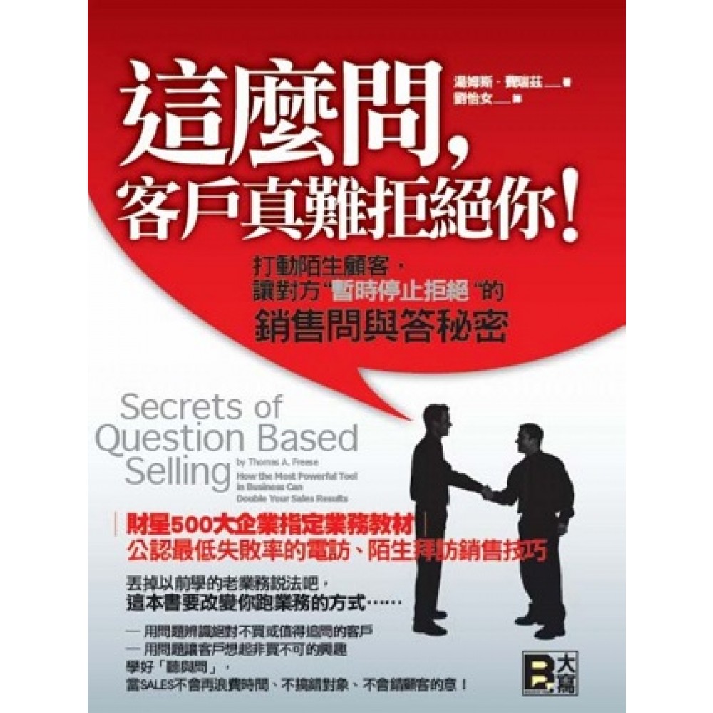 作者序 這本書,要改變你跑業務的方式 你有沒有注意到,全球各地的企業花了數百萬美元教導銷售人員該「說」什麼,卻幾乎不花分文教導他們該「問」什麼。事實正是如此。銷售機構僅投資在訓練銷售人員為產品或服務的價值定位,他們假設銷售人員已經知道如何提出正確的問題。 進行銷售時,提問非常重要。你得提問才能開發機會、瞭解客戶、找出需求。你得提問才能發現客戶群中哪些是做決定的人,並且從中得知如何提出最佳解決方案。你也得提問才能知道如何排除異議,在接近成交時可能還有哪些其他需求。提問向來是銷售過程的基樁,但提問本身不保證銷售對象和客戶必然會有正面回應。 剛開始從事銷售的時候,我想學習成交的技巧。不過更重要的是,我想學習打敗競爭對手的技巧。為此我讀遍手上所有銷售書籍,同時也聽相關的有聲書、參加了各種訓練課程,期望能夠精通銷售策略。然而當我脫離這些指導領域,事實變得很明顯。銷售對象對於回答我的問題,熱忱遠不如接受我的提問。這是因為每個銷售人員拜訪時,提出的問題幾乎千篇一律,但銷售對象已經被問煩了。當年我也遇到同樣困境,銷售對象沒興趣聽我做產品說明。就算銷售人員準備了精彩演說,也不表示銷售對象一定會想聽。反正每個銷售人員都自稱有精彩故事可說。 傳統銷售手法無法讓我的產品或訊息脫穎而出,銷售對象的接受度不如我預期。我的拜訪次數越多,就越感到挫折。對銷售對象來說,我和其他覬覦他們口袋的銷售人員沒什麼兩樣。雖然當時我的銷售資歷還不算久,但已明顯地走到必須採取新方法的時機。新方法得能打破傳統銷售壁壘、吸引銷售對象注意、並且顯著提升成效。 我開始實驗各種行銷技巧,無論背後動機是出自創業本能或純粹絕望。有些技巧收效不錯,有些則慘敗收場。當我發現某種技巧有效,便想瞭解背後的原理,藉此複製成功經驗。同樣的,若某些技巧不管用,我也會想瞭解失敗的原因,避免未來再犯同樣錯誤。隨著時間累積,我彙整出一套可行與不可行的清單。這份清單將永遠改變現代銷售方法及訓練課程。最後到了一九九六年,我將這些銷售策略整合成一套系統,稱之為「提問銷售法」(Question Based Selling)。 提問銷售法其實是銷售常識,立論基礎為銷售人員提出的問題、以及提問的方式,比他們要說什麼來得更重要。這項原則之所以合理,原因在於銷售人員若想提出解決方案,就得先發掘顧客有什麼需求。要如何發掘顧客需求?向他們提出問題。但問題不是隨便提提,你得問出銷售對象會有興趣回答的問題。 本書並非告訴你如何走出去問問題,因為這不是有效的銷售方式,特別是在競爭激烈的環境。相反的,我們會告訴你如何透過提問激發銷售對象的興趣,並且在客戶心中建立信賴感。我們也會告訴你如何透過提問挖掘更大的需求、針對所處的整體情況取得更精確的資訊。我們還會告訴你如何辨識重要決策人物、在客戶內部建立人脈支持你的產品或服務、規避被拒絕的慣常風險並提高成交率。 本書將告訴你如何吸引更多銷售對象加入更具效果的對話、把銷售良機推進為實際銷售過程,並且讓雙方都能從過程中獲益。基本上我幫大家開了路,所以各位不必再為此殫心竭慮。 雖然本書最終談的是銷售,但能夠從本書獲益的不限於銷售人員。顧問、建築師、律師、會計師、招聘人員、廣告商、公關經理、經紀人等都必須具備銷售技巧,藉此創造新客戶、留住舊客戶。中小企業主和創業家也必須透過銷售技巧來保住生意。就算企業主管也得向其他主管及部屬團隊推銷想法。事實上,每個人都在推銷某些事物。 無論你賣的是電腦系統、壽險、製造機器、廣告版面、醫療器材、員工福利、電信產品、不動產、金融服務、辦公室家具、消費性商品、或各種專業服務,所面對的挑戰多半大同小異。你必須以新觀點破冰,找出客戶的需求。你也必須設法讓客戶樂於聽你提出解決方案。如何讓銷售對象及客戶願意從繁忙的行程中抽出時間?本書將告訴你作法。 本書共分為三部分,第一部針對提問銷售法策略提供簡短課程。在本書的前五章,我將闡述讓提問銷售法不同於其他方法的基本策略。第二部聚焦在商業界最有利的工具,即策略性提問。我們將深入探討該問什麼問題、以及該用什麼方式提出這些問題,並展示這些問題如何協助你達成銷售的策略目標。至於第三部,我將解釋如何實際運用提問銷售法的策略及各項技巧,協助你順利完成銷售流程、接觸新的銷售對象、做出更出色的銷售演說、克服反對看法、提高成交率、並且縮短成交時間。 對我而言,提問銷售法代表我十七年業務員生涯經歷的頂峰,它幫助我瞭解到策略性提問,比起日常出現的銷售對話來得重要許多。也許對你而言,這也標示了一段新旅程的展開。你不只是積極的讀者,也是提問銷售法的學生。恭喜你邁出了第一步,祝你好運! 湯瑪斯費瑞茲(Thomas A. Freese) / 提問銷售法研究中心(QBS Research)總裁