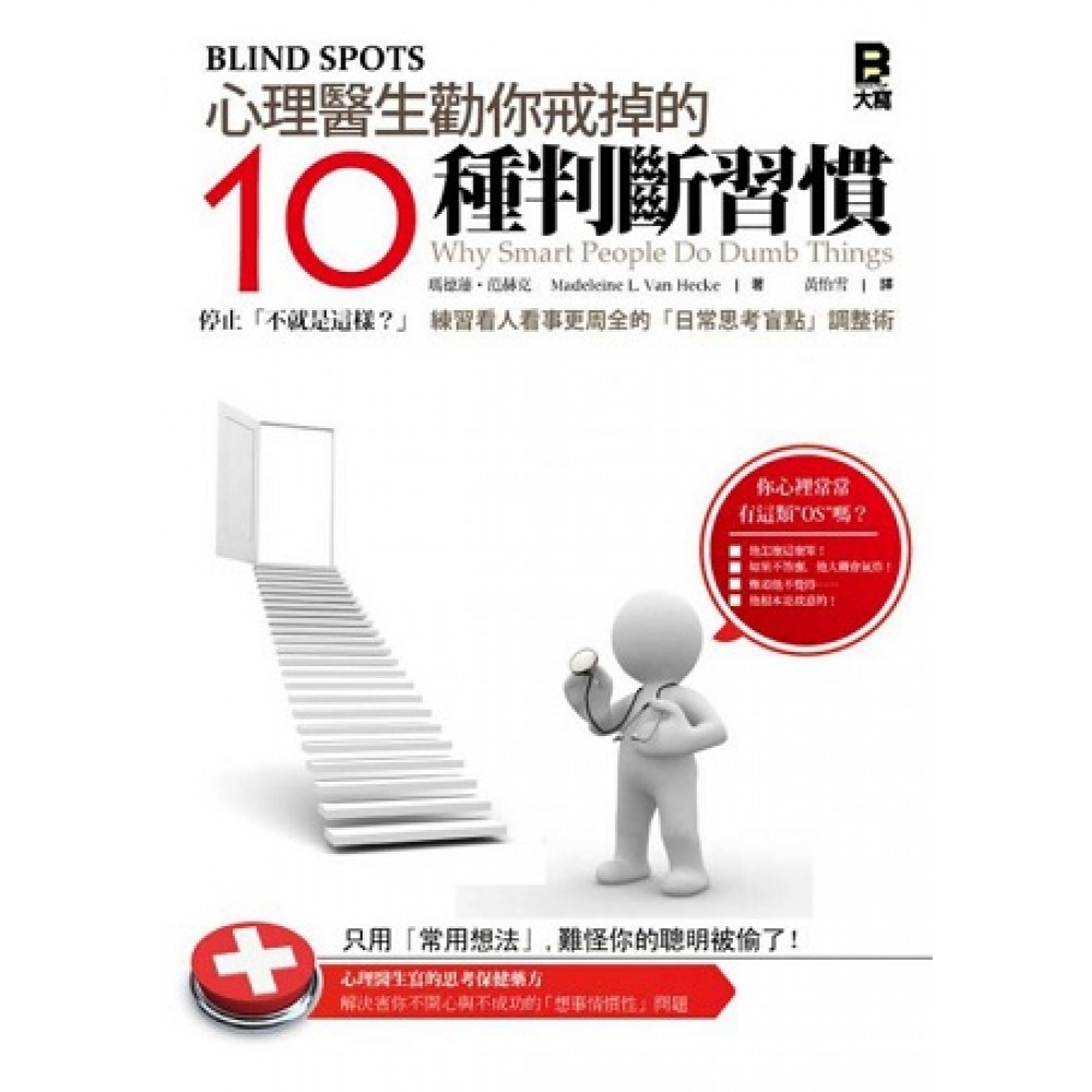 只用「常用想法」,難怪你的聰明被偷了! 你心裡常常有這類”OS”嗎? ─他怎麼這麼笨! ─如果不答應,他大概會氣炸! ─難道他不覺得…… ─他根本是故意的! 你是否想過:其實事情未必是這樣的! 本書作者瑪德蓮是資深的執業心理醫生,也是許多思考問題工作坊的常客及講者;她將在本書中介紹十個讓我們與其他人最容易出錯、產生誤會的「十種判斷慣性」!閱讀這本書能幫助你:不再犯10種最常見思考錯誤、生活中少掉10個討厭鬼、少得罪10個人、增加看事情的判斷成功率! 有位電腦專家在電話中指導初學者安裝程式,當他要對方「打開門放入光惵時」,電話那頭傳來那個初學者離開電腦前,「將辦公室的門打開的聲音」……;電腦專家不解地問起本書作者:「他怎麼可能會覺得那跟他『辦公室的門』開起來還是關上有關係?就算不是火箭科學家也會知道這沒有道理,只要有腦袋的人都會知道!」 我們都有過這種經驗,突然發現其他人解讀世界的方式有多麼不一樣。心理學長久以來一直在研究「智慧」,卻直到最近才把注意力轉移到「愚蠢」上面,我們總是企圖測量人類有多聰明,預測誰擁有可以成功的智慧,但是我們卻很少注意到,為什麼就算再聰明的人有時候也會浪費天賦,做出「驚人的愚蠢行為」。 而每當我們覺得別人的行為或是想法很愚蠢的時候,判斷的核心就是覺得某件事確實或應該「很明顯,怎麼可能會不知道?」同樣地,這種狀況也很可能在你我身上發生。 很多時候,我們的智力或頭腦,會以設定「最理想的方式」為我們工作,但這種理想的方式往往也使我們容易疏忽了事實「真正的細節」;其實也可以說盲點就是我們自然思考方式的一部分,我們並沒有辦法完全消除它們,因為它們是內建在系統裡面的。但是只要我們能夠察覺到它們,我們就可以想辦法把它們的扭曲帶來的影響降到最低。 本書就是要提供包括「以具體思考取代抽象思考」;「善用延遲下結論」等思考方法或生活習慣,解決我們原來是要為了「生活過得更方便」的內在盲點;習得這本書改進自我的技能後,慣性失誤便可以更少發生,讓我們在人際相處與做事的技巧上,有更完善的「防錯機制」。 在她這本充滿許多「幹蠢事卻不自知」故事(請你除了大笑,也想想自己是否也犯過類似錯誤)的書中,你將會發現,原來很多的出錯模式及思考老毛病,會讓我們在溝通與做事上走了多少冤枉路。翻開這本書,知道我們的「習慣判斷盲點」,你一定能擁有更全面的視野、也更能對事實有深入的思考能力! 附註:本書為《盲點:聰明人為什麼幹笨事?心理醫生教你改掉不自覺的老毛病》新版