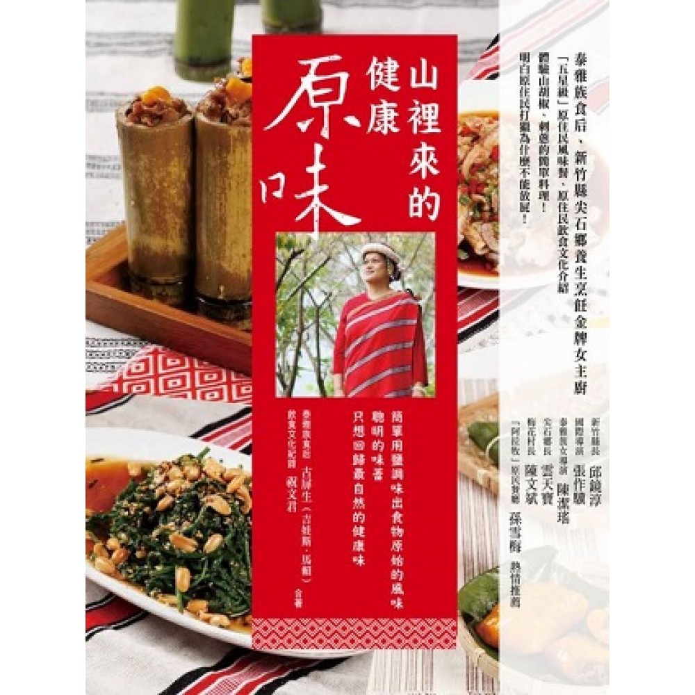 新竹縣長 邱鏡淳 國際導演 張作驥 泰雅族女導演 陳潔瑤 尖石鄉長 雲天寶 梅花村長 陳文斌 「阿拉牧」原民餐廳 孫雪梅 熱情推薦 世界美食藥膳名師、尖石鄉之光─古屏生老師,將原住民族創意及養生食譜予以彙編,出版《山裡來的健康原味》這本書,除了提供原住民風味創意與養生餐的訊息,介紹饒富族群多樣性的食材及健康養生餐的製作方法,導引您深入了解原住民族群健康養生的美食,讓你留下健康美好的滋味,也進而推廣原住民族群博大精深的飲食文化,帶動原住民族部落休閒觀光產業的發展。 ─新竹縣尖石鄉 鄉長 雲天寶 泰雅美食研發至養生餐在國內古屏生老師是第一人。她的成就是一步一步的努力,17年的歲月累積了她豐碩經驗,成功是指日可待的。目前經營山清休閒農園,主要目標是能更精進她的專業領域,她也不辭辛勞於大學夜間部相關科系進修,尤其對泰雅風味餐不吝嗇公開出書,泰雅美食得以傳承,她的精神與表現實是族人的驕傲,謹獻短序代表族人之敬意。 ─梅花村 村長 陳文斌Wnping Batu 屏生的料理口味精準,調配得宜,但這不是單憑湯匙火候就能調的出來,是除了調味之外做菜用的情感,為了料理而料理的味道是出不來的,她用心去做,以豐盛的心溫暖別人,帶給別人幸福和圓滿的感受,滋味更勝一籌。 ─阿拉牧原住民主題餐廳 負責人 孫雪梅