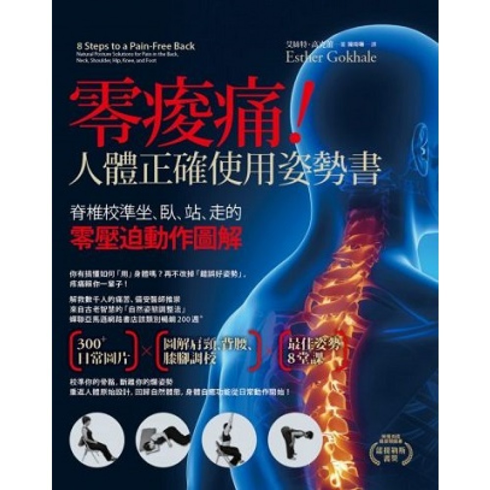 序 好好使用自己的身體 對某些人來說,那些年不會痛的日子只存在於記憶深處,其實可以不必如此。我透過自己背痛的治療經驗,加上密集的訓練與研究,發展出一套有效減輕背痛的技巧:「高克蕾法」。我很榮幸且開心能幫助數千人重新認識身體構造:身體的原始設計是讓人可以輕鬆優雅的行動。我有15年的時間都在教導這些技巧,宣揚它的簡易與效能,很高興現在能編著成書,讓更多人可以分享。 我的背痛是源自讀大學時做瑜珈所造成的背部痙攣,在吞了肌肉鬆弛劑和躺在床上休息後,所幸得以改善;幾年後,我又弄傷自己的背,這次在床上躺了5天才復原,為了恢復背部健康,我開始健身,於是很快就生龍活虎。 在懷第一胎時,九個月的妊娠讓我背痛舊疾再犯,還伴隨日益加劇的坐骨神經痛。有人安慰我,小孩生下來後情況就會改善,但事實是,我的情況越來越糟,一旦躺超過2小時就痛苦不堪,我只好每天半夜在住家附近不停散步走動,以求減輕疼痛。孩子滿1歲時,我因椎間盤嚴重突出接受背部手術(特別是L5S1椎板切除術∕椎間盤切除術)。術後幾個月,我雖然還是沒辦法抱女兒,但背痛總算稍有改善,此時醫生勸我不要再生小孩,那時我便下定決心,我的第一個小孩也是最後一個小孩,因為不想再受疼痛折磨了。沒想到在術後12個月時,我的背痛再次來襲,醫生建議再動一次手術,這次,我決定用自己的方法擺脫悲慘噩運,於是我開始深入研究背痛的原因及治療方法。 我到法國巴黎的帕朗柏研究所上課,我的恩師諾伊爾.佩雷茲以人類學為基礎,發展出一套姿勢調整技巧。她的理論是:在工業社會,人們沒有好好使用自己的身體,因此造成疼痛與損傷,我們必須向傳統文化社會中的人學習。她的理論應驗了我在印度的童年生活。我記得那時常聽到荷蘭籍母親讚歎印度女傭工作姿勢是多麼優雅、是如何輕鬆提重物上大街。 恩師諾伊爾的技巧有效改善我的背痛,我花費5年時間取得帕朗柏認證,由於這些課程的啟發,我繼續就讀史丹佛大學醫學院及人類學系,並前往歐洲、亞洲、非洲及南美洲參訪觀察、拍照、錄影、訪問不曾受背痛之苦的人們。我結合不同學科的重點,加上專業領域的研究,創造出一套獨特、有系統的方法,它能幫助人們改善姿勢,找回身體活力。我有一位病患,原本是來找我針灸的,但我發現他的症狀是肌骼問題所引起,所以便提供這套方法給他,沒想到成果令人非常滿意,因此我開始把這套方法分享給更多人。 許多醫生會把飽受背痛折磨的患者轉介給我,幾乎所有患者才上第一堂課,就獲得立即改善,更有許多病例的成效相當戲劇化。然而還有許多人無法前來找我諮詢,例如東岸或中西部的居民,或是遭受長期背痛折磨、亟需幫助的病患的親友,多年來,我一直希望能撰寫成書,一步步指導並示範我的技巧與方法。現在我終於夙願以償。 艾絲特.高克蕾(Esther Gokhale) 2007年加州史丹佛
