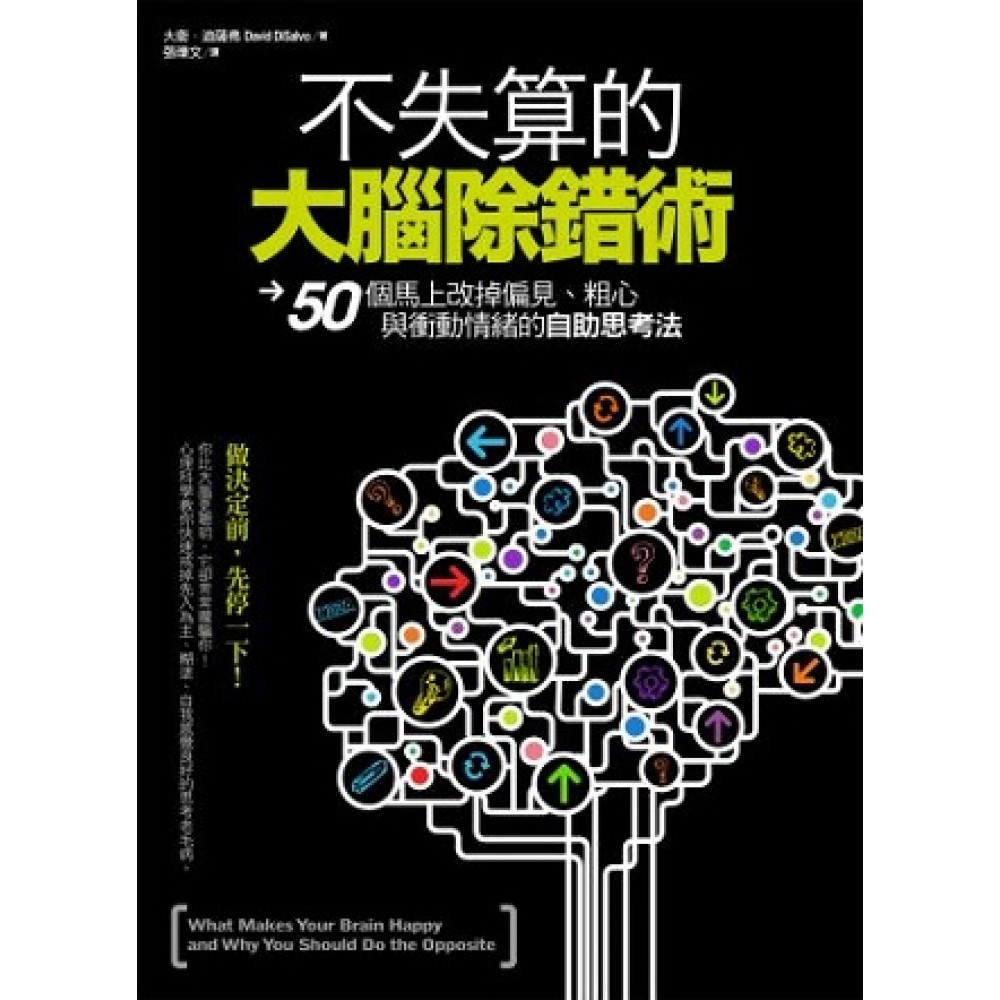 各界好評 「迪薩弗提供讀者『科學幫助』(與「自我幫助」相反)的方式,詳述大腦心智想採取的捷徑,往往不見得符合人類的最佳利益。透過本書瞭解大腦的運作,可幫助我們對抗頑固的行為模式。」——《今日心理學》雜誌 「大衛.迪薩弗帶領我們迷惘的心智做了一個短暫的旅行。每日生活中的每個方面他都有提到,不管是工作面試、第一次約會或是購物網站的危險,迪薩弗將改變你原本的思考模式…是能改變人生的心靈指導。」——《新科學家》週刊 「目前科學書籍作者可以做的事情,就是以各種方法讓讀者注意自己日常的心理思考模式。如何避免不理性的判斷與決策,固然是我們自己要想辦法面對的責任,然而在這本書中,作者還是為我們帶來了另類且寶貴的思考工具。」——雷.赫伯特《小心,別讓思考抄捷徑!》作者 「本書具有獨特科學見解,可以運用在日常生活當中,字裡行間引人深思,亦不失趣味性。」——蓋瑞.斯默爾,加州大學洛杉磯分校精神病學教授《記憶聖經》、《大腦革命》、《沙發背後:精神病醫師如何解決棘手個案》作者 「閱讀本書就像在最愛的茶餐廳裡吃著充滿智慧的點心:口口美味,會讓你想一吃再吃。」——布魯斯.胡德,布里斯托認知開發中心主任《超感官能力:為什麼會相信不可信的事情》作者 「迪薩弗以新鮮的架構,引導讀者從不同方向認識大腦控制個人的方式,帶領大家跳脫自助類心理書籍的思維。」——馬克.常逸梓《駕馭:如何透過語言與音樂將猩猩變人類》作者 「本書的內容清楚明瞭且多樣性,洞悉人類思考的方式,是一本深入認識人心的好書。」——菲力普.阿卡巴斯《恐懼:害怕和幻想如何刺激黑死病到禽流感的傳播》作者 「這本關於大腦科學最新研究的書籍,內容充滿智慧且容易閱讀,讓人愛不釋手…作者維持他一貫的風格,在內容與論述方式上,兼顧專業人士與一般讀者的需求。翻開它吧!」——瑪姬.傑克遜《分心:受侵蝕的注意力及黑暗時代的來臨》作者 「迪薩弗的文字平易近人且充滿熱情,帶領讀者以簡易有趣的方式,認識最新的神經科學、社會心理學、認知科學與行為經濟學等研究內容。但研究的結果、大腦與心智都不是本書的重點。本書的重點在於認識我們的生活方式,以及如何透過科學,將一團亂的生活轉變成有意義的優質人生。這是一本照亮人生的書。」——陶德.艾席格懷特研究所負責訓練與督導的精神分析師 「我們常在媒體上看到許多心理學與神經科學的研究發現,聽起來很神奇,但卻有些遙不可及,無法與日常生活結合。迪薩弗把科學研究中最實用的部分,萃取集結成書,內容充滿創意與機智。」——卓爾特,芝加哥洛約拉大學哲學與心理學教授《移情作用落差:搭起好生活與好社會的橋樑》作者 「想知道身體裡的神經化學物質是如何操控你的一舉一動嗎?迪薩弗從當代的神經科學與心理學的相關研究中,精選出最具啟發性的內容。隨著本書的發展,你會越來越瞭解自己的行為反應由何而來。」——喬瑟夫.卡羅《文學動物:演化和敘事的本質》作者 「透過作者流暢的文筆,認識神經科學與社會心理學的真面貌。內容引人入勝,幫助你以全新方式認識他人。」——查理斯.伊立特與其他作者合著多本心理學叢書,包括For Dummies傻瓜系列的《征服焦慮》、《認識強迫症》與《認識邊緣性人格》 「本書是心理學與神經科學研究領域的瑞士刀:便利又實用,並且非常非常管用。本書將最新的科學研究發現,以簡單易懂的方式呈現給讀者,而且都能運用在日常生活之中。」——喬瑟夫.哈里南,普立茲獎得主《我們為什麼老犯錯》作者 「五星級的智慧佳餚,有最先進的內容可供選擇。」——羅伯特.波頓《人,為什麼會自我感覺良好?大腦神經科學的理性與感性》作者 「本書以正面的方式,讓你的大腦感到快樂。迪薩弗透過吸引人的小故事,帶領讀者迅速瞭解大腦抄捷徑的模式,讓讀者知道大腦短暫的快樂選擇,往往會造成人生長期的傷害。」——丹尼爾.西蒙斯《為什麼你沒看見大猩猩?教你擺脫六大錯覺的操縱》作者 「跟著迪薩弗進行心智之旅,認識大腦的防禦機制及行為科學的相關研究。作者是一位超級導遊,清楚讓讀者知道每項論點的實用處。是非常具啟發性的一本書。」——吉納.皮考特《男人真愛金髮尤物嗎?身體、行為與大腦:隱藏在性、愛情與吸引力背後的科學力量》作者 「內容嚴謹且有效推論的一本書,揭露我們平日思考與行為不一致的原因,也帶領讀者認識人類如何操控彼此的手法。如果你想知道自己為什麼會做出某種行為,以及如何避免成為他人操控手段下的受害者,我推薦你趕緊翻開這本書吧。」——菲利普.金巴多,美國心理學學會前主席《路西法效應》作者