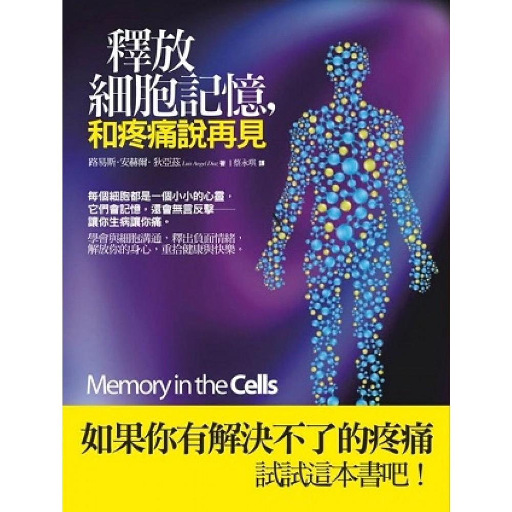如果你有解決不了的疼痛, 試試這本書吧! 每個細胞都是一個小小的心靈, 它們會記憶,還會無言反擊──讓你生病讓你痛。 好好跟你的細胞做朋友── 辨識它、傾聽它、接納它、疏通它、釋放它 學會與細胞溝通,就能讓日積月累的身體疼痛、心理創傷、負面情緒等痛苦能量找到出口,解放你的身心,重拾健康、平靜與快樂。 人體是個能量海,每個細胞都是一個記憶體 問問自己,你的不快樂比快樂多?你會經常性焦慮?你很容易緊張?還是管不住脾氣,動不動就生氣?小心,你的細胞會記住你昨天的失控,甚至上個月受挫時的沮喪。 我們都是由能量、純能量創造而成。過去五十年裡,許多不同學科的科學研究,尤其是量子物理學家已經證實,物質與能量都是單一微小能量場的不同表現形式。若從原子層次觀看,構成人體的細胞其實就是旋轉的能量模式。 你的思維在你的大腦與神經系統會產生信息能量暴風,導致你整個身心系統的能量移動。當身體細胞儲存的正負能量失去平衡時,就會嚴重影響我們的心智活動以及我們生理與情緒反應,並決定我們的內在感受以及外在行為。 擺脫老故事,注入正面的新能量 我們的一生中,有許多會造成痛苦的陳舊老故事,在我們無法察覺之下,層層埋藏在潛意識之中,導致我們習以為常地去傷害自己或傷害別人而不自知。透過釋放羈絆我們的「老故事」,釋出帶有感染力的有毒記憶,我們本有的智慧之門就能迅速地進行療癒與轉化,帶領我們重回正軌,與整個宇宙的能量一起運作。對於那些抱持絕望心態,認為自己遠遠不可能療癒自己深層的創痛,永遠無法體會平靜與喜樂的人而言,「釋放細胞記憶」就是希望所在。 學會與細胞溝通,釋放出過往身體、心智與情緒累積的傷痛記憶,以溫和方式釋放出負面能量,就能逐漸解放你的身心,重拾健康、快樂與平靜。 「痛」是老師,提醒你該好好重新審視自己了 我們會在身體及情緒的不同層次感受到痛,這些痛如果沒有處理就會阻礙身體能量的自然流動,進而形成「痛苦之身」。事實上,每個人身上都帶有「痛苦之身」,這是由兩種不同的「痛」所建構而成,一種是真實的痛,另一種是想像的痛。真實的痛包括肉體的創傷,以及肉眼見不到卻千真萬確的痛:痛失親人的感受就是其一,就好像我們身上有個部分被撕裂了。想像的痛,就是一般人所謂的「受苦」。想像的痛源自內心,我們習慣基於個人的經驗與信念來評判事情的好壞、臧否自己與他人,因而引發怒氣、驚恐、焦慮、沮喪與壓力,進而啟動痛苦之身,並立刻傳輸到身體各處,導致各類身心問題。 身體疼痛、情緒受苦,你是否正在無意識地餵養你的「痛苦之身」,讓它不斷茁壯。檢驗你出現了哪些「痛苦之身」的症狀: □微不足道的事物,就能激起你不成比例的反應。 □某人說了令你覺得不悅的話,從你的反應馬上就能看出。 □怏怏不樂與空虛感,讓你覺得快透不過氣來。 □不安、拘束、胸口悶、感覺喉嚨有異物、沉重、燥熱、暈眩、恐懼或強烈的壓力。 □你習慣逆來順受,或是言行充滿挑釁。 □你容易沮喪、長期易怒或習慣忍受肉體疼痛,你已經出現受苦成癮的症狀。 □缺少活力,對任何事都提不起勁。 □經常產生具毀滅性的負面思維。 □你與人相處的方式充滿了戲劇化,動不動就找藉口促使爭執或衝突白熱化。 釋放細胞記憶的五個關鍵 當我們扭轉自己的內心世界,我們的外在世界就會自然而然地隨之改變。我們的內心世界就像磁鐵一樣,會把外在世界的事物吸引到我們身邊。若要讓某件事情發生,我們必須由內而外地執行。釋放細胞記憶的過程所做的,正是這個。釋放細胞記憶療程是個十分特殊的個人經驗,也是讓你真正面對自己的一次深入剖析。 .關鍵一:找出讓你受苦的原因 .關鍵二:學習瞭解身體的語言 .關鍵三:釋放與轉換痛苦之身 .關鍵四:改變舊習與行為 .關鍵五:重組神經網絡