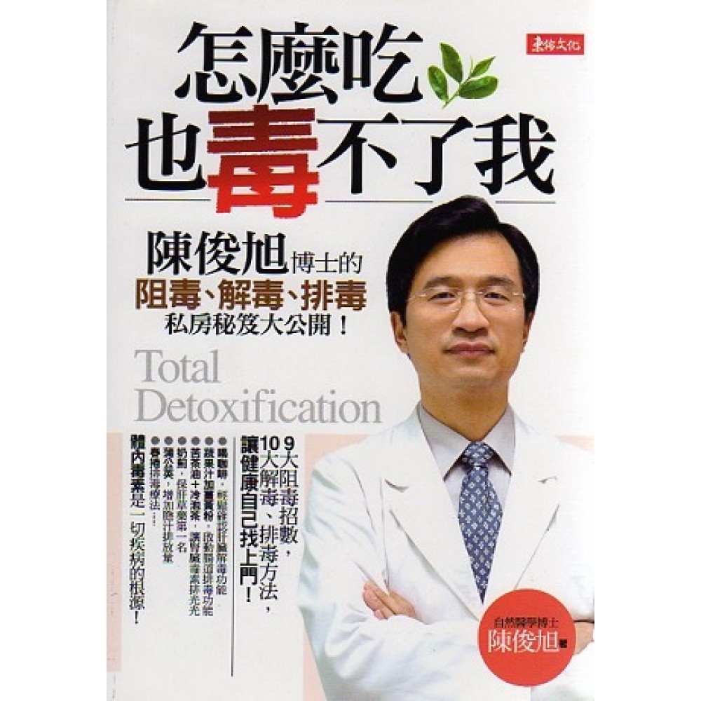 《怎麼吃,也毒不了我!陳俊旭阻毒、解毒、排毒私房秘笈》 陳俊旭博士的〔阻毒、解毒、排毒〕私房秘笈大公開! ˙喝咖啡,輕鬆確認肝臟解毒功能 ˙蔬果汁加薑黃粉,啟動腸道排毒功能 ˙苦茶油+冷泡茶,讓腎臟毒素排光光 ˙奶薊,保肝草藥第一名 ˙蒲公英,增加膽汁排放量 ˙春捲排毒療法 ………….. 9大阻毒招數,10大解毒、排毒方法,讓健康自己找上門! 體內毒素是一切疾病的根源!但是,您知道自己的體內毒素有多少嗎? 一分鐘毒素檢測法: □1身體出現大量粉刺。 □2有便秘or大便臭。 □3常有噁心、嘔吐的感覺。 □4常心情不好or情緒不穩。 □5吃到某些食物會身體不舒服。 □6皮膚搔癢、暗沉粗糙。 □7有口臭or體臭。 □8吃大蒜,身體會出現不適。 □9常感疲勞倦怠或關節容易酸痛。 □10對有害化學物質特別敏感(如油漆、有機溶劑)。 □11喝了含咖啡因的飲料後容易睡不著。 □12有偏頭痛or慢性頭痛。 □13濕疹、牛皮癬、異位性皮膚炎。 □14常常覺得無精打采。 □15腸胃道功能不好,有胃潰瘍、腸道發炎、消化不良的病史。 □16肝功能指數在40以上or患有B型、C型、酒精性肝炎。 □17患有自體免疫疾病(如類風濕性關節炎、紅斑性狼瘡、僵直性脊椎炎)。 檢測結果只要有一項與您相符,就別再猶豫了,請立刻打開此書! 讓陳俊旭博士,告訴您〉〉〉 如何阻絕毒素上身? 如何提昇自體的解毒功能? 如何輕鬆有效排除體內毒素? 讓健康自己找上門!