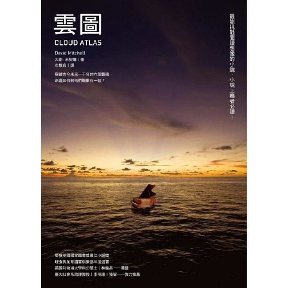 被熱帶寄生蟲啃蝕大腦的太平洋船客、寄生在音樂大師羽翼下的年輕作曲家、一心揭發建商弊案的八卦專欄記者、出版暢銷書後開始被黑道追殺的出版商、在餐館努力工作而升等為人類的複製人女孩、後末日時代殘餘文明的小島牧羊男孩——在時間的長廊裡,《雲圖》的敘事者可以聽見彼此回響的跫音,因而改變了自己的命運。 《雲圖》是科幻,也是冒險,有壯旅,也有社會議題,有患難與共的愛情,也有盪氣迴腸的情義,有東方的輪迴轉世,也有西方的哲思,談文明與文化,也有快節奏的緊張懸疑情節,時間跨越了過去、現在、未來,地點遍布在世界各角落。作者為串聯故事所設計的伏筆與回響,增加了故事的豐富度,也讓《雲圖》成為一本野心勃勃的小說。大衛.米契爾的想像力與寫作格局,對小說讀者來說是枚驚世駭俗的震撼彈,打破所有人對既有小說的所有認知與想像,讓人大開眼界,為之瘋狂! 大衛.米契爾是位有遠見的後現代作家,也是善於掌握風格與類型的大師,他放膽結合了張力十足的探險故事、熱愛謎題的納博科夫式風格、對角色的敏銳洞察力,以及傳承自安伯托.艾可與菲立普.狄克對深刻的哲學與科學省思的偏好。他抹去了語言、類型、時間的界限,進而討論「人性冀求權力的企圖心到底有多危險」以及「它最終會將我們帶往何方」,一連串的反思發人深省。這部原創性十足小說的誕生,為二十一世紀的小說模式開啟了新潮流與新風貌。 亞當.尤恩的太平洋日記 時間:1850年 地點:南太平洋 類型:海上冒險 舊金山的法律公證人亞當.尤恩從新南威爾斯(澳洲)搭船回鄉,在旅途中結識了亨利.古斯醫師,亨利是他在船上唯一能交談且學識相當的伙伴,兩人很快結成好友。 一位奴隸藏身在尤恩的包廂內,尤恩替他說情,讓他在船上工作。亨利診斷出尤恩身染熱帶病,寄生蟲正慢慢嚙食他的腦袋,而尤恩與船長船員格格不入,已經引起了怨恨,因貪婪而暗起的殺機也慢慢浮現。 寄自日德堅莊園的信 時間:1931年 地點:比利時 類型:哥德式莊園故事 年輕音樂家羅伯特.佛比薛爾為怪病纏身的音樂大師維維安.艾爾斯聘用擔任抄寫員,師生間衍生出共生關係。艾爾斯需要年輕的學生替他完成作品,佛比薛爾需要莊園的庇護躲避債務,並利用大師的名氣為未來鋪路。 佛比薛爾陷入莊園夫人設下的愛情陷阱,兩人發生了不倫關係。莊園的女兒夏娃是個嬌生慣養的蛇蠍女,兩人原本水火不容,但佛比薛爾還是抵擋不了年輕夏娃的魅力,雙雙墜入了情網。撲朔迷離的糾葛愛情,在美麗孤獨的歐洲莊園裡繼續延燒。 半衰期——露薏莎.瑞伊秘案首部曲 時間:1970年代 地點:美國加州 類型:懸疑驚悚 女記者露薏莎.瑞伊與科學家希克斯密遇上電梯故障,老科學家透露:布納斯伊爾巴斯城外史灣尼克島上的反應爐設計有嚴重缺陷,建商濱海企業不惜一切手段隱瞞,要讓反應爐順利啟用。 建商聘請殺手謀殺希克斯密。知道自己性命垂危的老科學家將關鍵報告藏在機場保險櫃之後,馬上被暗殺身亡。露薏莎千方百計取得了保險櫃內的報告,但是冷血的殺手不可能放過她,年輕有正義感的露薏莎因此捲入了重重新聞黑幕的漩渦。 提摩西.卡文迪西的恐怖考驗 時間:現代 地點:英國 類型:現代喜劇 名不見經傳的作者因憤恨書評太差,在眾目睽睽之下將評論家丟下樓,原本乏人問津的作品在一夕之間變成暢銷書,出版商提摩西.卡文迪西也因此解除了財務危機。 作者入監後,他的黑道兄弟上門勒索,卡文迪西的處境立刻從天堂墜入地獄。他求助於兄長潛逃,沒想到兄長提供的安全地點竟然是一家地點偏僻的養老院。就在他逃離杜鵑窩的時候,卡文迪西中風了…… 宋咪 ~ 451的祈錄 時間:近未來 地點:現在的韓國 類型:反烏托邦的未來科幻 女性量產複製人宋咪 ~ 451在餐館工作,每位量產人都篤信被應許的天堂:為雇主工作十二年後,就可以去永恆的樂園享受美好生活。但宋咪並不是一般的量產人,她因緣際會離開地底的餐館,脫離勞動者的命運,進入大學成為實驗體,並且能像人類一樣去學院上課。 宋咪與研究生尹海株成為好友,但在一次執法人員突襲校園掃蕩聯合黨勢力時,宋咪才得知,原來她的教授與朋友都是支持廢奴運動的異議分子,在逃亡過程中,宋咪越來越清楚自己被賦予的使命…… 史魯沙渡口及之後的一切 時間:遙遠的未來 地點:夏威夷 類型:末日後科幻 地球後末日時代,科技成為失落的遺產,夏威夷群島文明的交易模式是以物易物,科技民族「先見」每年幾次到島上來交易。一位名叫美若寧的先見留在島上做研究,寄居在牧羊人沙奇的家。 少年沙奇不信任美若寧,千方百計想要揭穿她的秘密,但美若寧救了沙奇妹妹的性命,沙奇對她心存感激。沙奇與美若寧去探索禁地,找到浩劫前的殘餘文物,這趟被過往靈魂糾纏的魔幻旅程,差點讓兩人喪命。 而這時,野蠻民族攻打島上的和平民族。沙奇回家後,只見到殘破的家園,家人與親戚都不知去向。沙奇到底是該復仇,還是該跟著美若寧一起逃亡?在島外還有什麼樣的世界?地球在浩劫後的殘餘文明還能延續下去嗎? 【本書特色】 ◎故事文體的靈感來源:卡爾維諾《如果在冬夜,一個旅人》。 ◎全書六個故事,時間橫跨一千年,從十九世紀一直到遙遠未來的核子世界末日。 ◎故事順序:一直到第六個故事之前,每個故事的敘述都中斷,從第六個故事結束之後,再以倒
