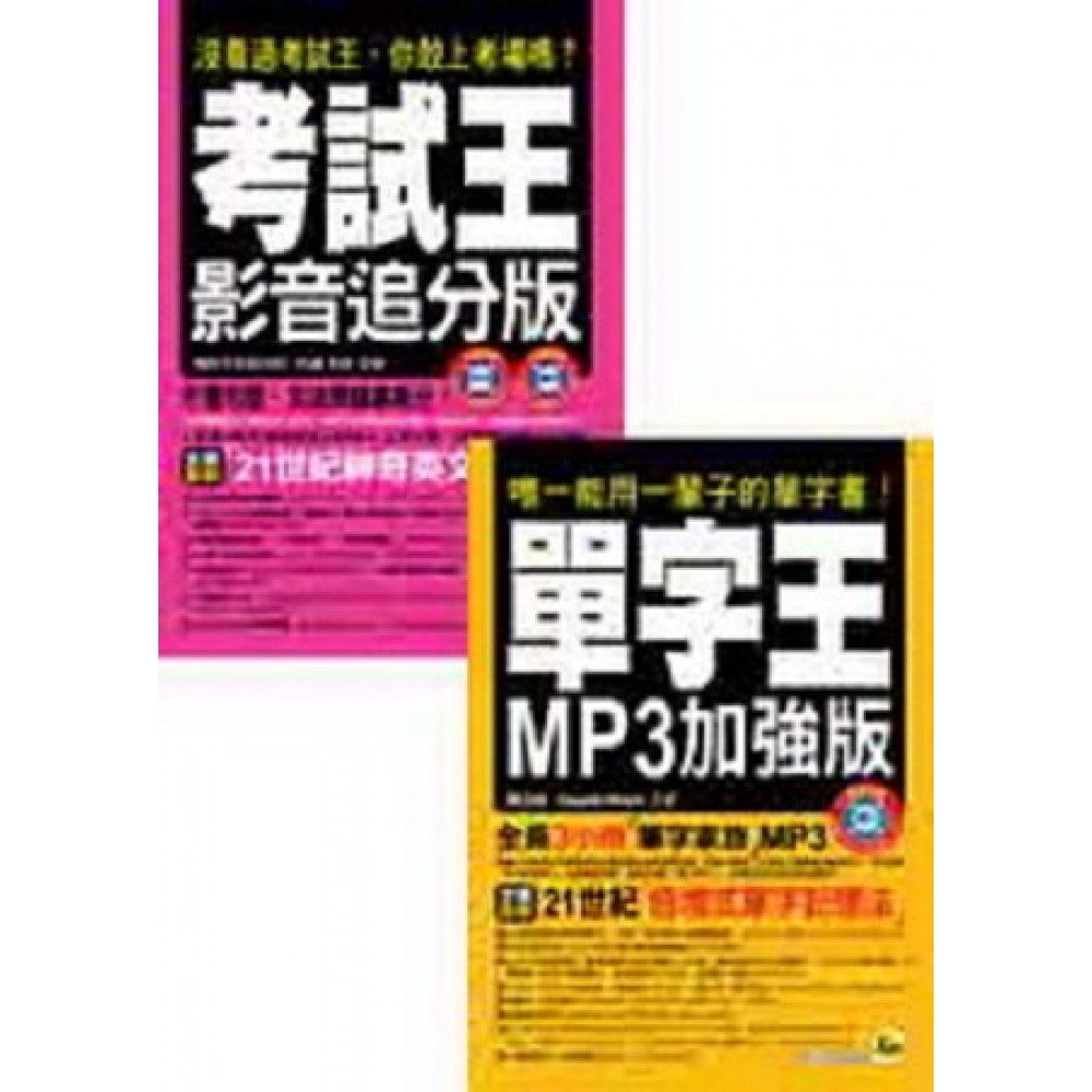 暢銷20萬本限量合輯 《單字王》唯一能用一輩子的單字書! 《考試王》沒看過考試王,你敢上考場嗎? 史上最長銷熱賣的英語學習工具書破天荒合輯,蔣志榆老師的《單字王MP3加強版》首創以樹狀圖結構幫助讀者快速、系統化記憶大量字彙;何誠老師《考試王影音追分版》則傳授你輕鬆破解英語考試各類題型的方式,就算不懂句型、文法也照樣能夠拿高分!2書+2MP3+1DVD限量之豐富超值內容,獻給所有有考試、加強英語實力需求之學生與上班族的最強英語學習方案。 ■單字王MP3加強版 《單字王》連續三年榮登各大連鎖書店與網路書店語言類暢銷書,狂銷20萬冊,為滿足上萬讀者的強烈學習需求,特別全新製作《單字王MP3加強版》,以美式發音錄製「單字家族MP3」方便讀者學習,並最新增訂「單字索引」功能,方便讀者檢索已閱讀過的單字,可幫助讀者複習及加強單字的記憶度,保證能更有效率地記憶單字。 一、21世紀倍增式單字記憶法──首創「單字家族」樹狀圖結構,包含衍生和相關字,背2000字即可學7000字! 樹狀圖是語言學中一個很奇特的解析工具,可以解析單字的結構,也可以解析片語與句子的架構。在《單字王MP3加強版》中,我們把它拿來幫助讀者學習「衍生字」和「同義、反義、近義等相關字彙」,猶如樹枝般把英文單字圈往外擴增,達成有效倍增學習記憶的效果,7000字自然可在不知不覺中背起來了。 二、唯一可以用一輩子的單字書 在《單字王MP3加強版》中所有單字均詳細分類為「英檢初級(適用於國中2000字範圍)」與「英檢中級(適用於高中7000字範圍)」,完全適用於「國中基測?大學學測、指考?新托福iBT?新多益NEW TOEIC?英檢初、中級」等考試用單字,讓你在各個階段、各個考試均可適用! 三、特別為讀者設計全長3小時單字語音學習MP3,讓你走到哪背到哪 《單字王MP3加強版》中,「單字家族」的每個單字,均由專業播音員以較慢速度逐字唸出英文和最常用的中文解釋,幫助讀者漸進習慣英語發音和語調、培養開口說英語的自信心,並引導讀者建立拼讀KK音標的能力,聽說英語將更為容易。 四、「背單字.記片語」單元整理出常用片語,讓你可背單字順便記片語,一氣呵成! 《單字王MP3加強版》的每個單字家族,均編寫與單字家族有關的常用片語,並附上範例讓讀者了解片語的實際用法,幫助讀者了解並熟悉單字與其他字詞的固定使用情境,是一本真正結合單字與片語的語文學習書,背單字還可順便記片語! 五、「近義詞大車拼」讓你了解近義詞的使用差異,避免誤用 《單字王MP3加強版》的每個單字家族均附相關的近義詞組解析,詳解各種近義詞的正確用法,幫助讀者避免誤用,同時加深學習效果;並附上「衍生字完全破解術」,讓你摸清楚衍生字的底細! 六、「隨堂總測驗」讓你在學完單字後馬上來個擬真練習,驗收學習成果 《單字王MP3加強版》的每個單字家族之後,均提供隨堂總測驗,讓讀者可「牛刀小試」一番,方便讀者在學完單字後馬上複習,並提供中文翻譯及解析,幫助讀者加強不熟悉的單字,更可做為考前總複習之用,臨場衝刺。 七、全國唯一適用於「大陸四級、六級」的考試單字書! 八、熟讀《單字王MP3加強版》,馬上看懂《朗文當代高級辭典》之英文解釋! ■考試王影音追分版 全長100分鐘考前追分DVD 必考片語、詞類變化MP3全收錄 全國首創「21世紀神奇英文解題法」! 1.「21世紀神奇英文解題法」!就算你不懂文法、句型,照樣可依解題公式,輕鬆拿高分。 2.本書完全適用於國中基測?大學學測、指考?新托福iBT?新多益 NEW TOEIC?全民英檢初、中級?公職考試等各類英文檢定考試! 3.「學校老師沒有教」、「不知不可」、「考前大猜題」,各樣應考秘技大公開,讓你事半功倍拿高分! 4.30個「必考混淆句型」大公開,即使看不懂題目,照樣能寫出標準答案! 5.「必考片語」全收錄,提升閱讀和解題的能力;「片語聽力練習」,聽MP3作克漏字練習,幫助考生們迅速熟記片語。 6.「詞類變化大全」,全國首創辭典式詞類變化總整理,60天考前衝刺計畫,搭配MP3,保證迅速熟記單字、破解出題陷阱。 7.何誠老師精準追分總複習,讓你應考至少多拿30分,勝過苦讀英文數十年!