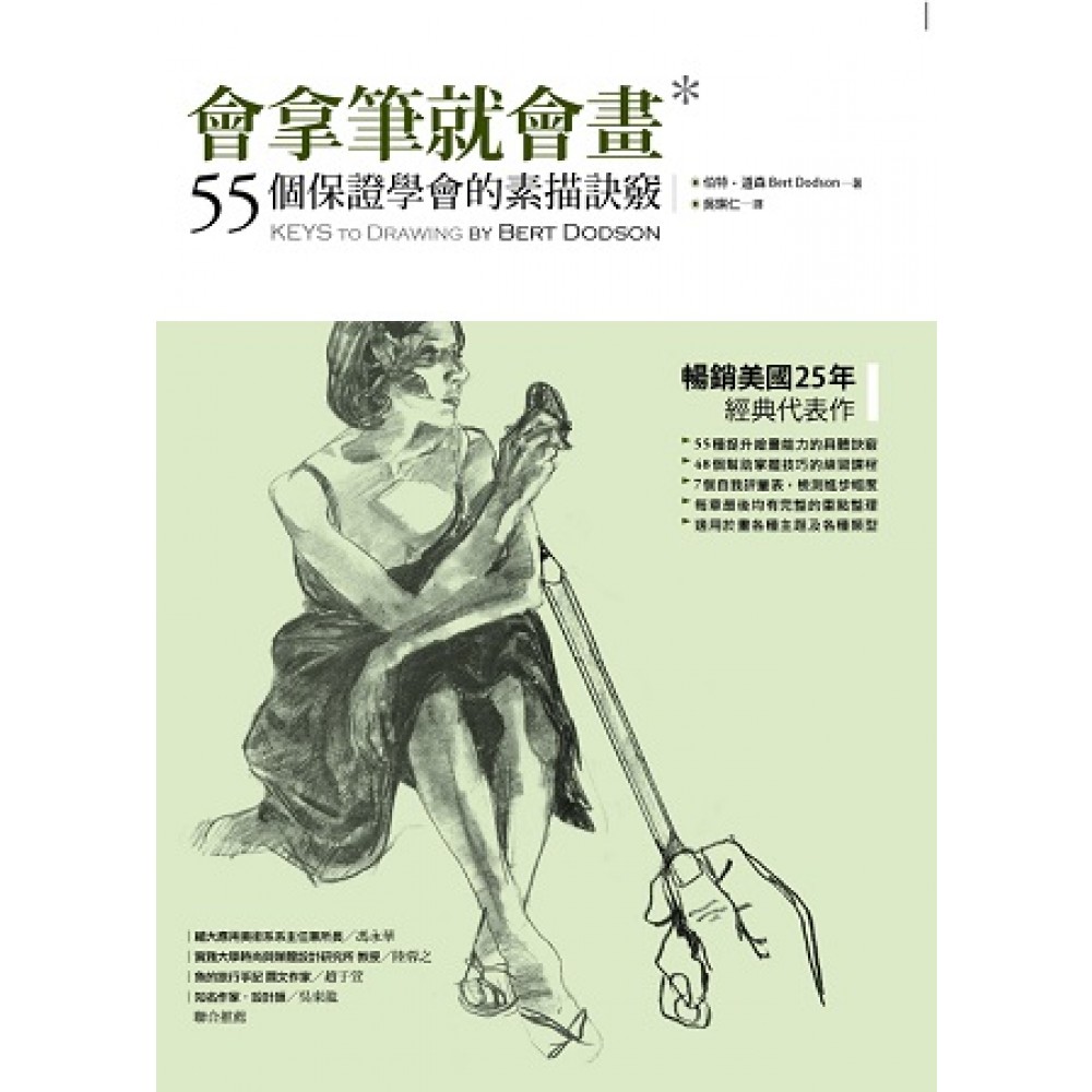 素描是各種藝術創作的根基,本書所提供的55個繪畫訣竅,將各種存在的形、色、線條、質感、量感、空間、動態……等複雜的因素,相互交織,在有限的二度空間上,發揮無限的美的情境,將自然的秩序,導換成入畫的秩序。這是一本足以打通素描觀念任督二脈的好書,特此推薦。 輔仁大學應用美術系 教授暨系所主任/馮永華 常有人問:「學畫畫有沒有秘訣?」 我說:「拿起筆!一天到晚到處亂畫!」 用心去感覺、隨性去塗鴉,只要你願意隨時拿起筆、用最快樂的心情畫, 時間就會告訴你答案。(想找捷徑嗎?這本書會告訴你!) 魚的旅行手記 圖文作家/趙于萱 暢銷美國25年經典代表作 只要你會拿筆,就能學會畫畫 本書帶你去重新認識畫畫的樂趣 本書以簡單清楚的文字,介紹一套保證學會素描的完整方法。這套方法適用於畫各種主題或各種類型的畫作,所以即使你曾經懷疑自己的畫畫能力,也不用擔心。全書以循序漸進的方式,講解55個畫畫的訣竅,並穿插有大量的練習,幫助你學習。 本書將教你學會: ☆ 聚焦法、瞇眼法、再勾勒、誇張法 ☆ 自由奔放的筆法、收斂謹慎的筆法 ☆ 畫出正確的比例、光影、立體空間與質地感 ☆ 如何構圖 ☆ 透過創意畫畫,激發想像力