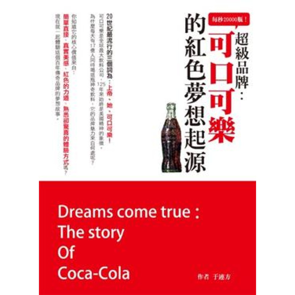 20世紀最流行的三個詞為:上帝、她、可口可樂! 可口可樂是全球最大飲料公司,125年來始終是美國精神的象徵。 為什麼每天有17億人同時喝這瓶神奇飲料,它的品牌魅力來自何處呢? 你知道它的核心價值來自: 簡單直接、真實美感、紅色的力道、熟悉卻驚喜的體驗方式嗎? 現在就一起體驗這個百年傳奇品牌的夢想故事。 2010年Andy Warhol畫作「Large Coca Cola」在蘇富比拍賣會以3530萬美元成交;可口可樂公司創始人艾薩.坎德勒說,假如可口可樂公司所有財產突然化為灰燼只要他還擁有「可口可樂」商標,他就能在半年後東山再起;掌管可口可樂公司60年的羅伯特.伍德羅夫說,可口可樂99.61%是碳酸、糖漿和水,如果不進行廣告宣傳,那還有誰會喝它呢! 當藥劑師約翰潘柏頓發明可口可樂時,他怎麼也想不到,這項發明日後會影響美國乃至人類的生活和思維方式。可口可樂風靡全球125年之久,地球上每個角落都可以看到它的紅色商標,而它的品牌競爭力更是商管教科書的必讀案例。 本書特色 本書以生動淺顯的文字,完整呈現可口可樂創史以來的夢想故事,看歷任經營者如何為其注入創意與活力,而其魅力又是如何在百年內凝聚起來,成為全球最具影響力的跨國企業之一!現在就來體驗這個天下第一品牌──可口可樂無人可擋的經典魅力吧!