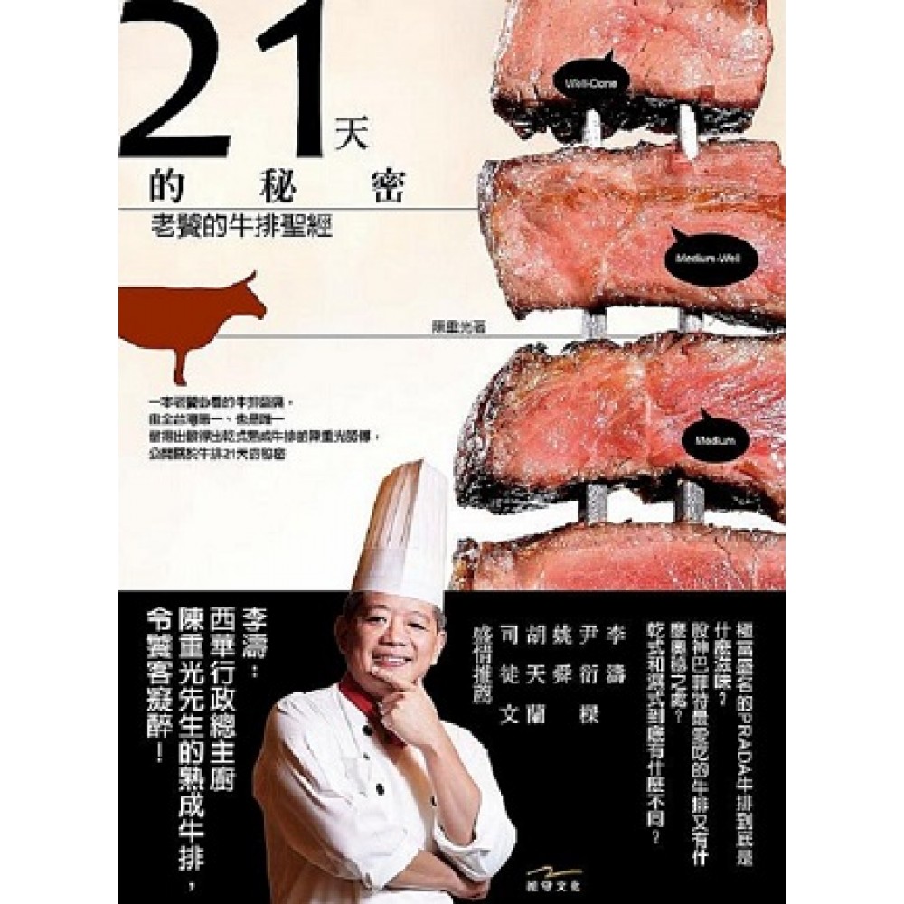 熟成,是烹飪女神維斯塔Vesta恩賜的美味魔術! 極富盛名的「PRADA牛排」,到底是什麼滋味? 股神「巴菲特」最愛吃的牛排,又有什麼奧秘之處? 什麼樣的牛排可以達到登峰造極的境界? 外焦脆、內鮮甜,肉汁四溢的咀嚼, 上等火腿的鹹香,餘韻在鼻腔繚繞, 這,就是21天乾式熟成牛排──神賜的美味 全台灣第一、也是唯一做得出乾式熟成牛排的「陳重光」師傅,公開好牛排「21天的秘密」,一本老饕必看的牛排盛典。 ◆直探乾式熟成的美味秘辛: 乾式熟成牛排難在哪裡?為什麼需要21天的熟成時間?專屬的熟成室有何利害之處?從選擇產的、部位,到運輸、儲藏、烹飪上桌,牛排的熟成,樣樣都是學問。 ◆牛排入門五大課程: 牛排是西餐永遠的主角,陳重光親自解說,從部位到處哩,教你如何做個在西餐廳能點出門道,吃出學問的老饕。 ◆陳重光的牛排食譜: 西華飯店行政主廚陳重光不藏私大公開,分享在家也能輕鬆烹調的牛排食譜與佐餐小菜。 等待熟成,就是等待美味…… 陳重光耗費三年時間找尋乾式熟成的秘密,而成為台灣第一個牛肉的風味來源,很重要的部分在於熟成的時間與方式,但過去台灣對於牛肉熟成的常識較少,一般消費者也很難體會到風味的差異,但是,熟成牛肉卻是牛肉品味的重要課題。 本書深入淺出,由牛肉的歷史開始,帶領讀者進入認識牛排的浩瀚知識領域,從認識牛肉的分類、部位…..到瞭解台灣這麼多專業廚師想做成、卻只有陳重光成功的乾式熟成究竟是怎麼一回事。 再佐以陳重光自己一路摸索奮鬥而成為西華首席行政主廚的心路歷程、激勵人心的成功故事……..。