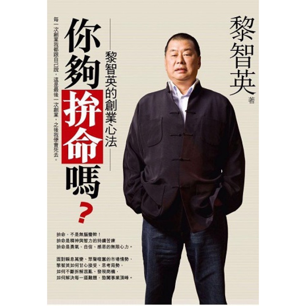每一次創業,黎智英都對自己說, 這是最後一次創業,之後我便會死去;因此只有現在、沒有將來, 我要投下我擁有的一切,跟它們同歸於盡,死而後已。 這是創業要有的EQ。 是黎智英做為一位創業家最重要的心法。 也是黎智英從一塊美金到現在身價超過五億美元的終極秘密。 即使到現在,他仍不斷地在創業中,每天思考生意所面臨的困難, 他心甘情願,因為創作是他生活的動力。 創業者為什麼要拚命? 對創業家來說,創業不只是賺錢, 創業更是一個創作的過程。一個學習的過程。 創業不知要遇到多少困難,解決多少難題, 創業時時面對不可預測的未來,因此若是沒有堅強的信念, 決大部分的創業人最後都會失敗,不是因為生意沒辦法做, 而是被自己的恐懼打倒。 書中黎智英的一位好友,想要辦幼稚園,卻沒有自己的想法。最後爭論了起來,好友對他說「Jimmy不是每個人都像你這樣,想要雄霸天下。我只想安安穩穩地做個小生意。」 面對好友的質問,黎智英心平氣和地對這位好友說不管生意大小,「創業避重就輕、捨難取易是死路一條。沒有錯,像你說的困難無疑會少一些,但那只是死路一條,走向死亡是完善的、沒有任何困難。不過,創業便是創造生意,既然是『生』的,又怎會沒有困難?」 如此獨具一格的創業與工作的思考邏輯,讓詹宏志在<我是黎智英>一書序中說到「好幾個做生意和寫文章的朋友,讀過他文章的人都深深覺得他的成功,並非偶然。」因而對現時的工作者來說,閱讀黎智英,也就同時閱讀出自己的位置,黎智英的創業體悟,無疑是一面鏡子,清楚映照出每個人沒有真正面對的事實。 本書特色 對現的大環境帶來的衝擊,黎智英對世局兼具宏觀與微觀的思考方式,書中並多有朋友或自己的例子說明,極具參考價值,並給上班族或想創業的人工作方法上的靈感。