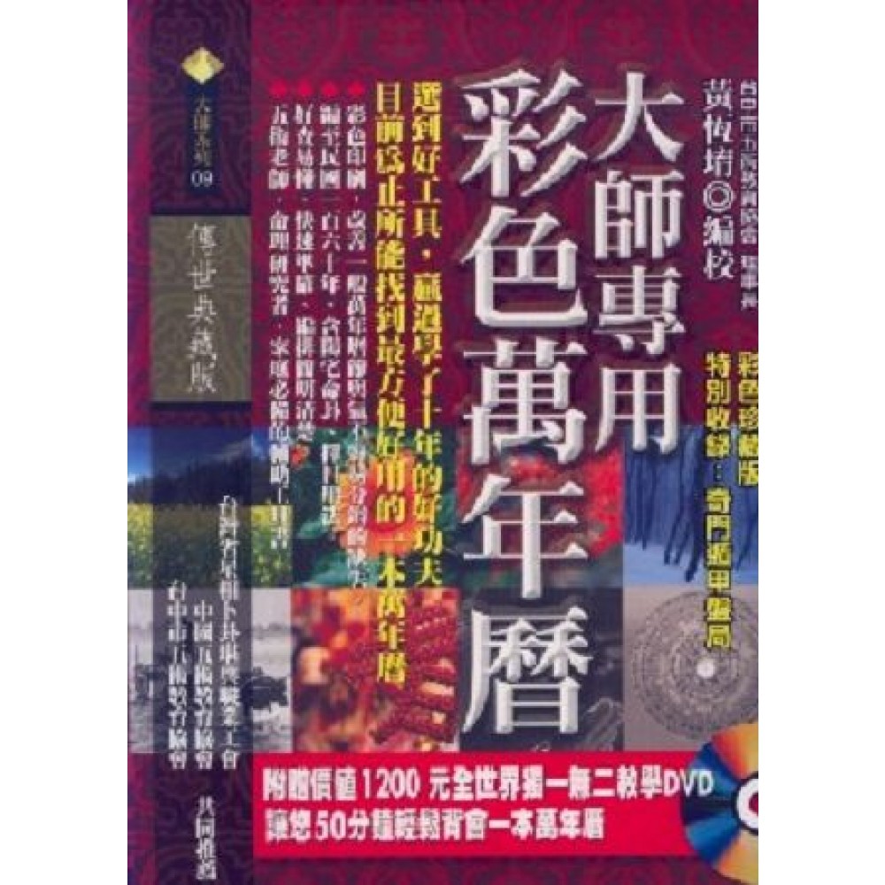 彩色珍藏版 特別收錄:奇門遁甲盤局 選到好工具,贏過學了十年的好功夫 目前為止所能找到最方便好用的一本萬年曆 ☆彩色印刷,改善一般萬年曆節與氣不容易分辨的缺失。 ☆編至民國一百六十年,含陽宅命卦、擇日用法。 ☆好查易懂、快速準確、編排簡明清楚。 ☆五術老師、命理研究者、家庭必備的輔助工具書。 這本萬年曆的編排跳脫傳統舊式萬年曆模式,以創新、方便、實用為取向,彩色印刷分類清楚好查好用,不只是五術老師與命理研究者需要,更適合每個家庭,簡單方便隨查隨用。 附贈價值1200元,全世界獨一無二教學DVD,讓您50分鐘輕鬆背會一本萬年曆