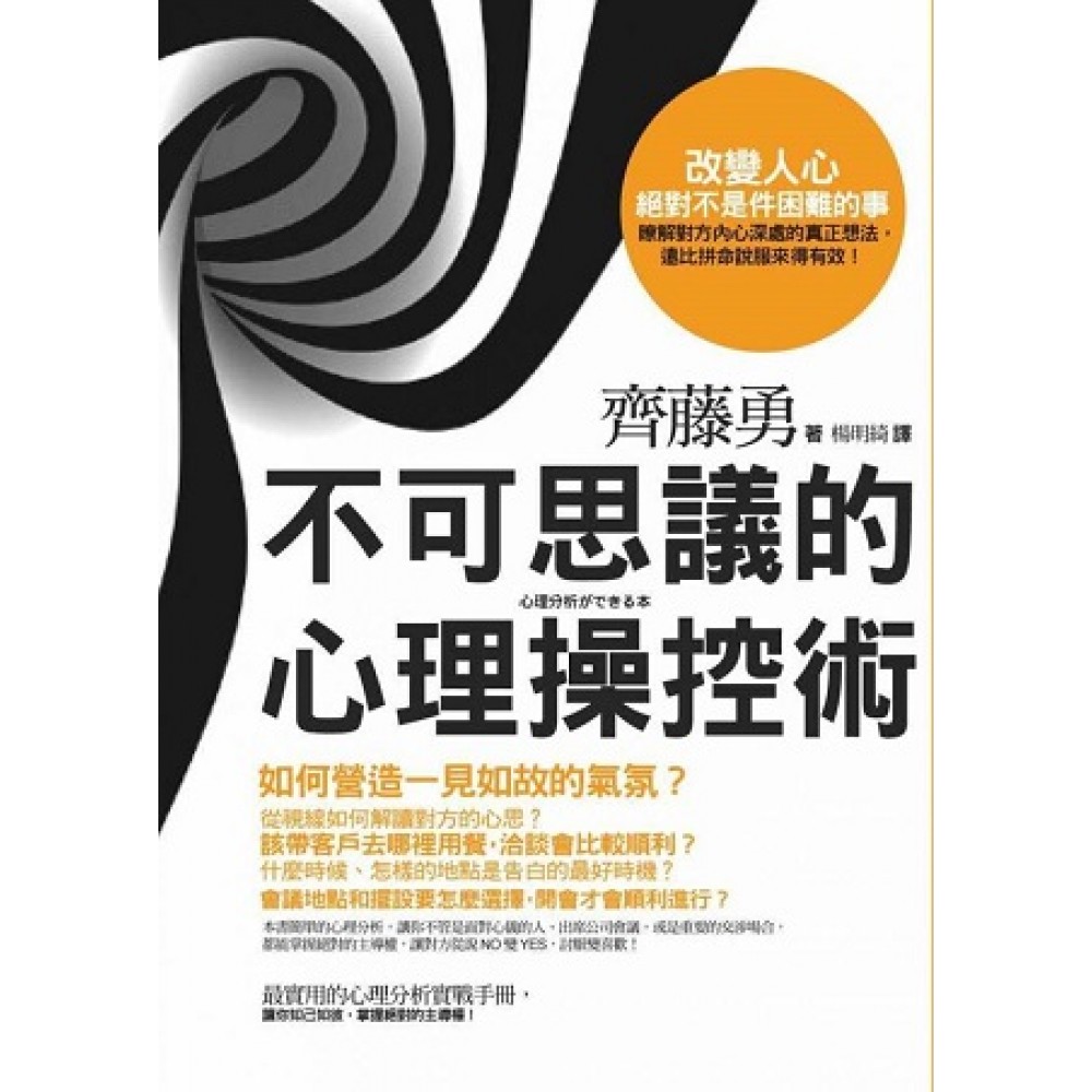 改變人心絕對不是件困難的事! 瞭解對方內心深處的真正想法,遠比拼命說服來得有效! 心理學家教你最有效的心理操控術。讓你知己知彼,掌握絕對的主導權! ●如何營造一見如故的氣氛? ●從視線如何解讀對方的心思? ●該帶客戶去哪裡用餐,洽談會比較順利? ●什麼時候、怎樣的地點是告白的最好時機? ●會議地點和擺設要怎麼選擇,開會才會順利進行? 簡單的心理分析,讓你不管是面對心儀的人、出席公司會議,或是重要的交涉場合,都能掌握絕對的主導權,讓對方從說NO變YES,討厭變喜歡! 各種場合都適用的心理分析實戰手冊! 面對心儀的人…… 最佳的告白時機為何?約會的衣服顏色如何挑?餐廳的座位如何坐? 商場上…… 如何讓人留下好印象?什麼樣的話能打破僵局?交換名片也有訣竅? 公司裡…… 如何增加同事間的情誼?怎麼跟討厭的人合作愉快?主導會議的祕技是……? 匪夷所思的各種習性,其實背後都隱藏著人們內心真實的意義…… 為什麼人們喜歡聊八卦? 日常說話的口頭禪也能透漏出對方的個性? 為什麼女人愛打扮、男人愛玩車? 廣告歌曲為什麼令人印象深刻? 為什麼人在失戀以後,反而更容易找到新歡? 希特勒是如何操控人心的? 本書集結了各種「心理學」的知識和實戰技巧, 幫助你輕鬆揭開人心不可思議的部分,瞭解對方內心真正的想法!