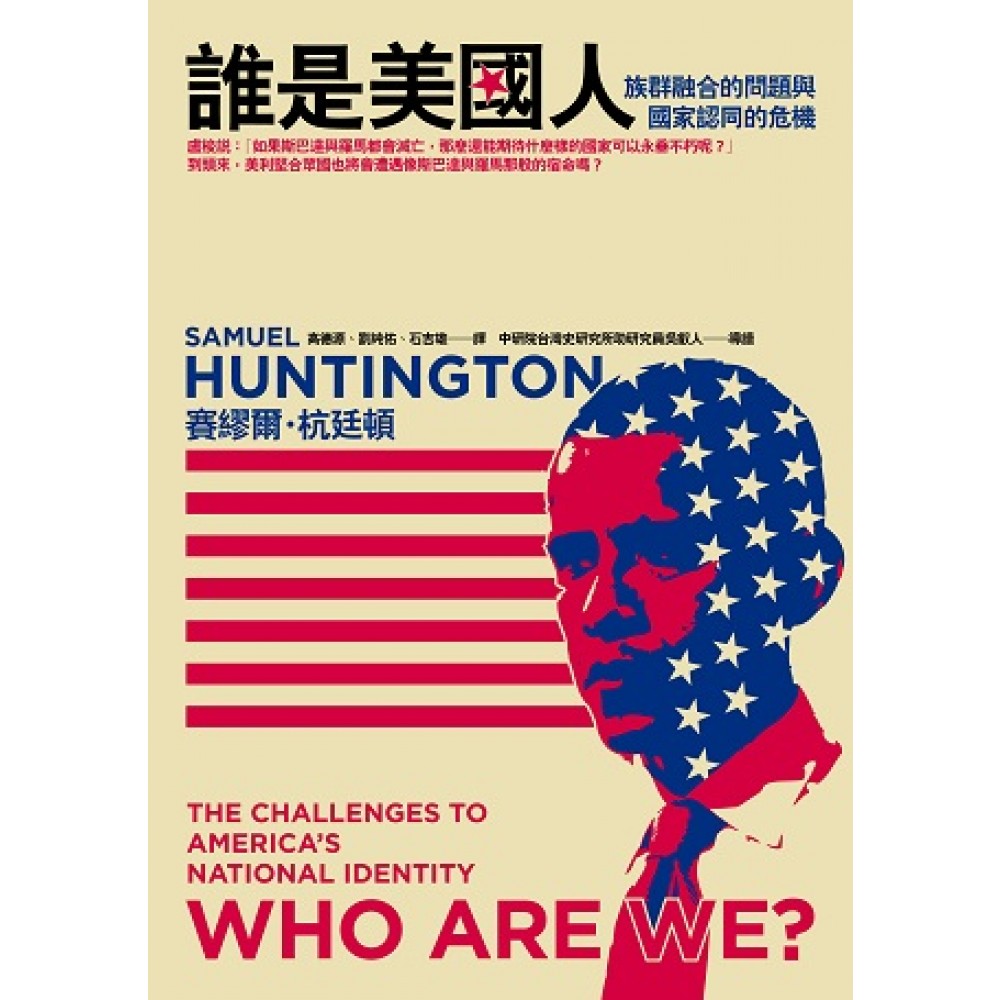 在他的重要著作文明衝突與世界秩序的重建一書中,杭廷頓以煽動且有先見之明的角度提出他的論點:在冷戰結束之後,「文明」已經取代意識型態成為國際政治的新斷層線。 他的敏銳分析現在已經被證實為真。現在,杭廷頓教授將他的焦點,從國際事務移轉到我們的國內文化分歧之上,他進一步檢驗了其他文明與相關價值觀對我們這個國家造成的影響為何。 美國是由英國殖民者所建立的。這些殖民者帶來了一個截然不同的文化,包括英語、基督新教的價值觀、個人主義、宗教使命感,以及對法律的尊重。後來來到美國的移民潮,逐漸接受了這些價值觀,並慢慢吸收了美國的盎格魯—基督新教文化。然而,晚進以來,因為接受同化的移民者大多都是西班牙裔移民,加上雙語主義、多元文化主義、公民身份的價值下降,以及美國菁英的「去國家化」表現,美國的國家認同已經遭到侵蝕。 九一一恐怖攻擊事件使美國愛國主義與美國國家認同得到復甦與復興。然而,有許多跡像已經顯示這種復甦與復興正在逐漸消逝之中。九一一恐怖攻擊事件並未替美國帶來有利的國際局勢,反而讓美國面臨到前所未有的安全挑戰。 我們是誰?顯示出我們必須要重申那些讓美國人之所以成為美國人的核心價值。我們的國家認同目前正處於危急關頭。 杭廷頓再一次地完成了一本重要的著作。這本著作毫無疑問地會引起相當激烈的辯論,同時也將讓全國深入進行探討我們是誰的問題。