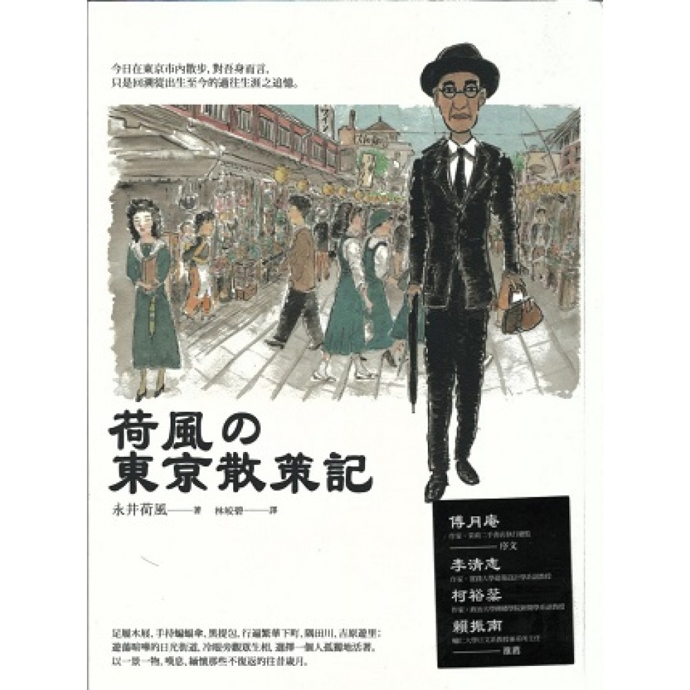 序 荷風習習。屐聲叩叩。 傅月庵 日和木屐 第一 日和木屐 第二 淫祠 第三 樹 第四 地圖 第五 寺院 第六 水附渡船 第七 小巷 第八 閑地 第九 懸崖 第十 (土反)坡 第十一 夕陽附富士 散步隨筆 〈傳通院〉 〈銀座〉 〈遊里今昔〉 〈放水路〉 〈百花園〉 譯後記 都市觀察家:永井荷風(林皎碧) 荷風年表