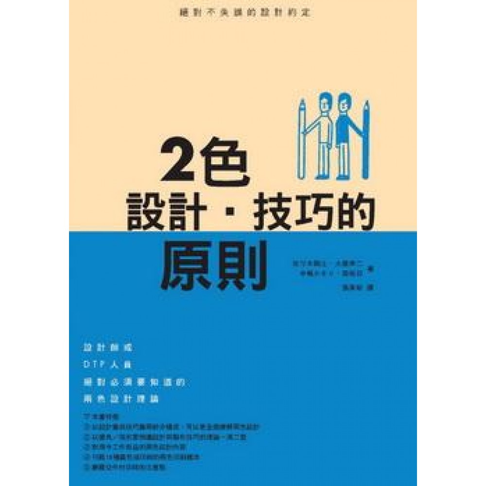《2色設計‧技巧的原則》 在2色印刷設計中,究竟要選用哪種顏色?色彩如何運用才會達到能夠引人注目的設計效果?本書以實際設計範例,詳細解說設計前、後範例的優劣比較對照。解說在2色設計印刷過程的注意事項,分色的方式、特別色的混色、印刷色的製作,必須了解的原則與技巧。