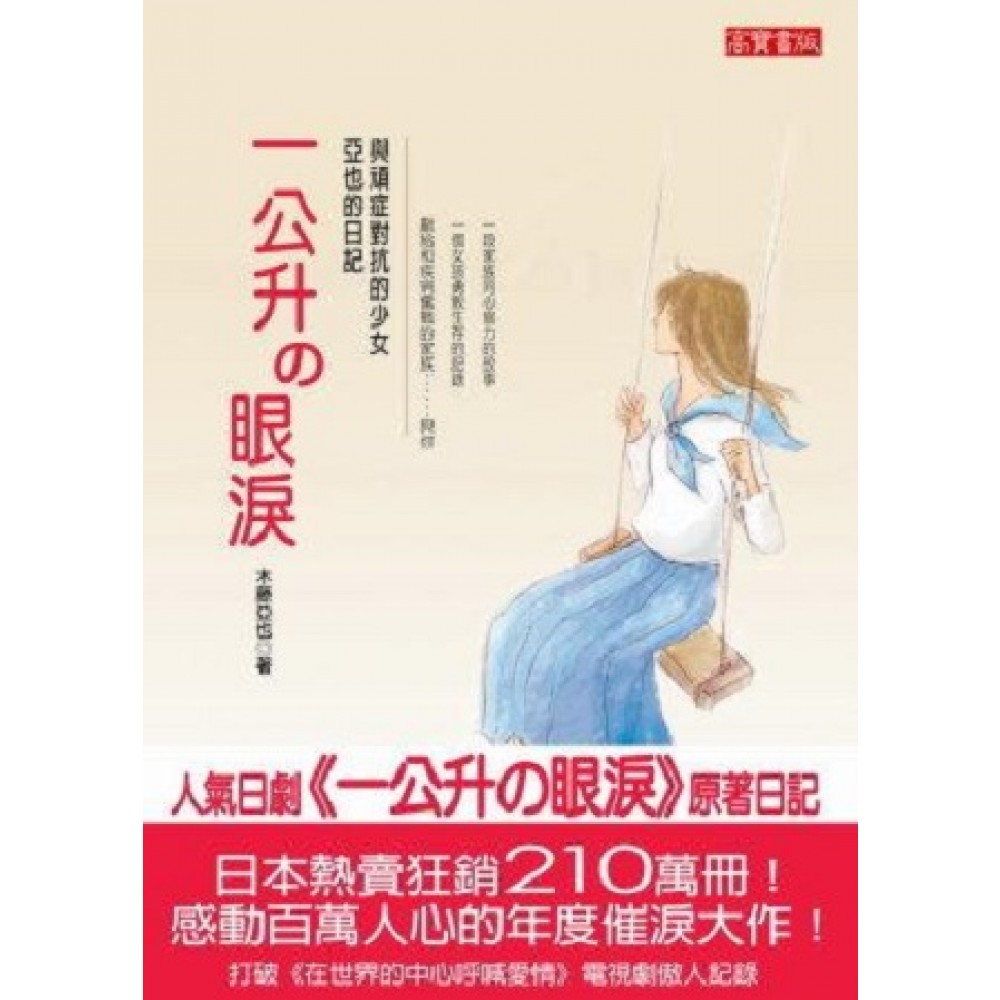 日本狂銷210萬冊!感動千百萬人的年度催淚大作! 2005年,改編日劇超高收視率超越《在世界的中心呼喊愛情》! BBS鄉民爭相討論:有人看完沒流淚的嗎? 母親潮香的手記《生命�障礙》同步好評上市! 一本讓你潸然淚下,卻不能停止閱讀的真實手記 一則觸動你內心深層最柔軟角落的生存故事 能夠活著,原來,是一件多麼幸福的事情! ★ 因?生命而倍感苦惱的人們,推薦你們閱讀這本書。——石原慎太郎,東京都知事 ★ 原作的內容相當感人,希望大家有機會一定要看!我希望能藉由自己的演出,讓各位能觸及到亞也最深層想傳達的訊息。──澤尻繪理香(飾 池內亞也) 《一公升�眼淚》以70年代末期的文化重鎮名古屋為故事背景,一位15歲的國三少女木藤亞也,正要展開人生中最燦爛的高中生涯。嘲諷的是,一場她從未預料過的變化改變了她的一生,使她的生命在短短的十年間加速凋零…… 一切,始自於一個罕見的絕症──脊髓小腦萎縮症。 肢體癱瘓、吞嚥困難、無法言語,都是亞也未來面臨的病症。她想寫字、想快樂的奔跑、想要談一場甜蜜的戀愛、想要回報父母的恩情,縱使知道未來的美好藍圖逐漸模糊,亞也仍毅然升入高中繼續學業。直到病情益發嚴重,坐上輪椅的亞也為了不增添家人及朋友的麻煩,最後終於同意轉至岡崎養護學校。 「我就要離開東高了。 從此以後,身負殘疾人這件沉重的行李,一個人繼續活下去。 這雖然是我做出的決定,但在經歷這個過程之前,我至少要先流過一公升的眼淚。自此之後可能還需要更多更多…」──亞也如此說。 歌唱、寫字、牽手、奔跑、甚至用嘴咀嚼食物……在一般人眼中是多麼平凡的行為,但在亞也身上全成為遙不可及的幸福。要忘記健康的自己,要忘記吞嚥食物的滋味,不久,亞也癱瘓在床,喪失她一直努力想維持的行走能力。支持她生存的意義,除了家庭,就是不肯對病魔妥協的強大意志力,以及她對未來生活的微小憧憬。 7年來,亞也努力用筆紀錄生活中對生命的思維與堅持,她並不怨恨父母給予她的身體、她並不怨恨上天為什麼殘忍剝奪她生存的權利,她只是一直為自己的身體而奮鬥,拖著日漸衰弱的身軀,慢慢朝前方那一道狹窄卻存在的生存之門前進,一直到21歲她喪失意識…… 1988年5月23日,她帶著對未來生命的期盼離開25年來曾經屬於她的世界,留下令人酸楚的一本本心情記事和鼓勵給更多不肯向病魔屈服的人們。「哪怕是多?微不足道的弱小力量,我還是希望能夠幫助別人。」亞也的文字裡沒有華麗誇張的詞藻,卻能讓讀者心底強烈感受到無形卻是最基本的渴望──「我想活下去」。能夠活著,原來就是一件最快樂的事。 一段家族同心協力的故事;一個女孩勇敢生存的記錄;獻給和疾病奮戰的家族…及你。