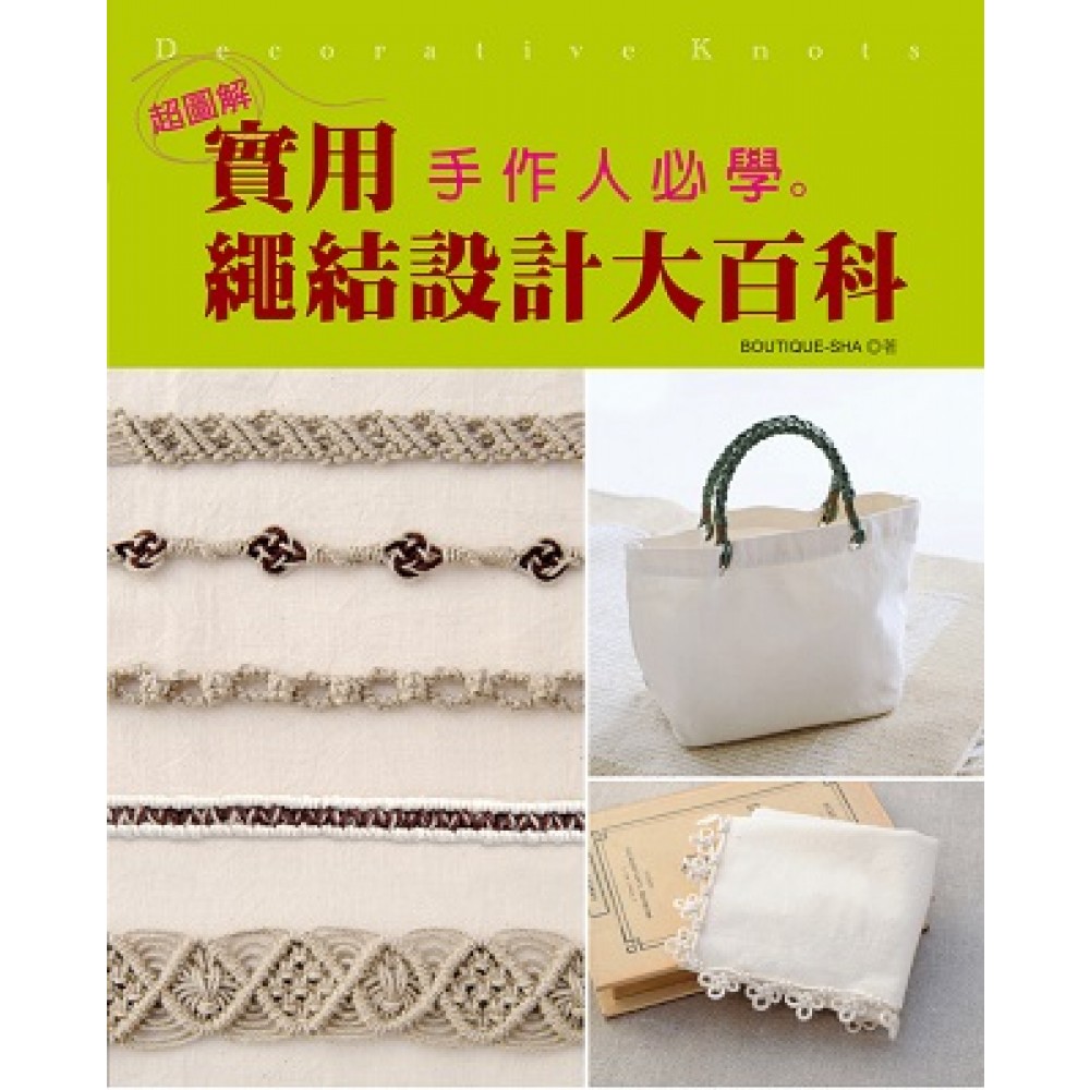 作者序 前言 人類由於「綁東西」、「數日子一天打一個結」發展出來的結繩行為,在長久的歷史演變中,逐漸創造出多樣性的變化——具實用性、裝飾性,並且在世界各地發展出了各種「結繩」文化。 本書蒐集了各種可以用於飾品或裝飾的繩藝,如「繩結」、「裝飾結」,加以詳盡說明。 以手打結,繩子就能有如此多種變化。請一邊享受驚喜,一邊參考本書中的應用作品,進入變化萬千的「結繩」世界吧!