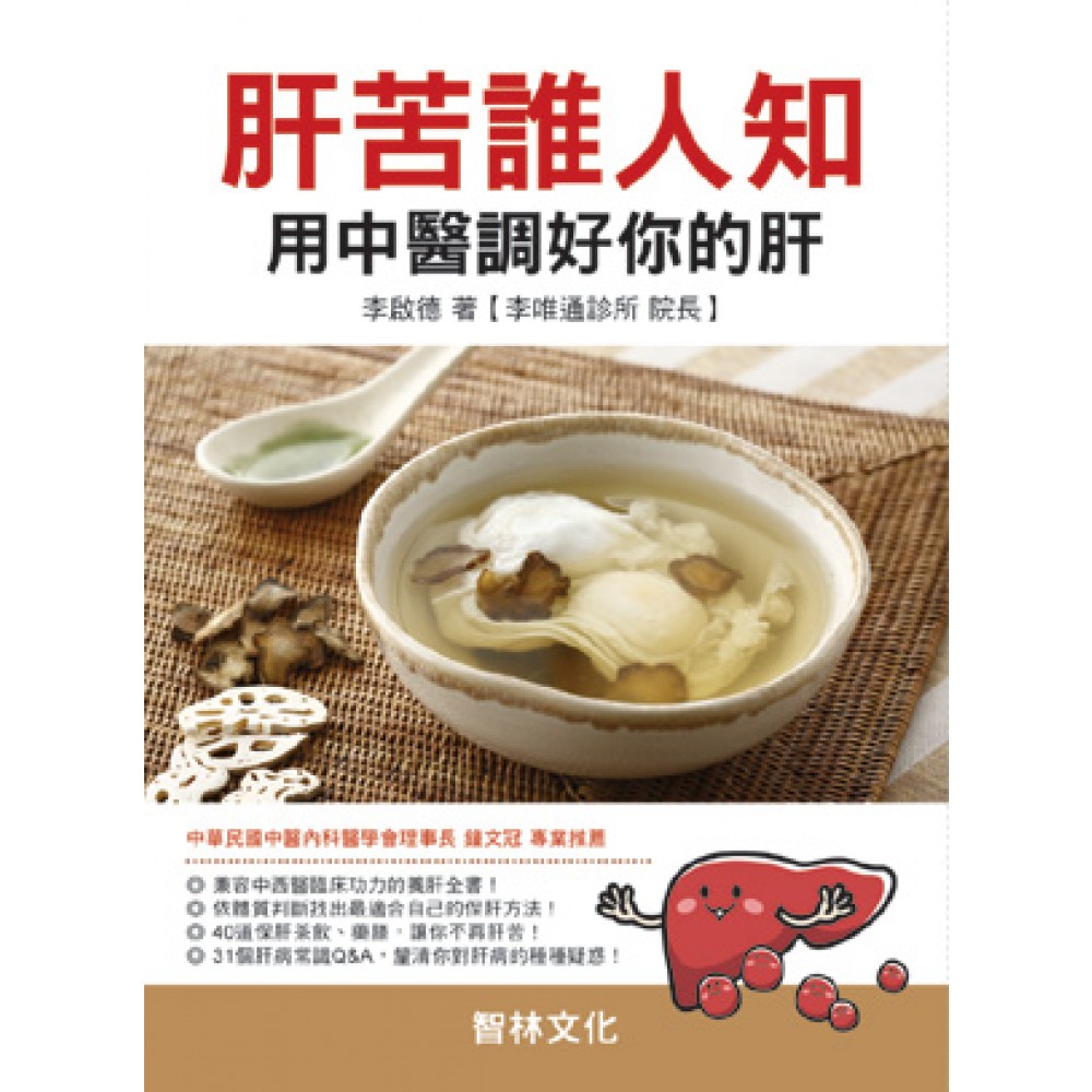 第一本兼容中西醫臨床功力的養肝全書!1個肝病常識Q&A,釐清你對肝病的種種疑惑!依體質判斷找出最適合自己的保肝方法!40道保肝茶飲、藥膳,讓你不再肝苦!呵護你的小心肝,就從現在開始本書結合防治肝病醫學領域中的臨床心得,除了介紹西醫現況,並根據中醫理論,深入淺出地闡述各種肝臟疾病的病因、臨床表現,以「肝病概念篇」、「中醫保健篇」、「茶飲篇」、「證例篇」為綱,盼使民眾從中尋得保健之法,及早擺脫肝病陰影,邁向彩色人生的康莊大道!