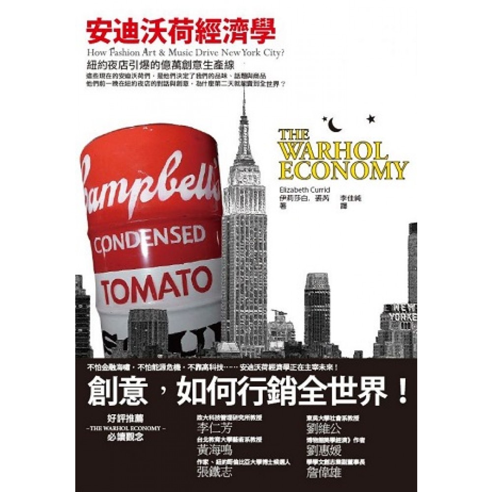 看見創意行銷全世界的經濟力! 這些現代的安迪沃荷們,是他們決定了我們的品味、流行與美感。 他們每晚在紐約夜店裡,快速激盪發想創意,結合名人、傳奇與商品, 在天亮後大量生產、再快速推向全世界。 這種經濟躲過金融海嘯、不怕能源危機,不靠高科技 它是在夜店裡打造的億萬創意生產線,它是安迪沃荷經濟學。 這是一本真正扭轉人們看待未來經濟發展新重心的鮮活作品,書的場景發生在紐約;而要探討的是紐約真正贏得全世界優勢的幕後故事──文化、流行與創意產業在這裡是如何紮根與散布到全球市場。 南加大的年輕女教授裘芮在這本書中,提供了許多第一手的報導,訪問了超過百位的紐約時尚界及文化經濟名人與觀察者,包含了名製作人昆西、瓊斯、當紅設計師馬可.傑可柏斯、Zac Posen、Diane von Furstenberg(美國時裝協會主席)、藝術家Ryan McGinness、靠部落格自發片而崛起的「拍手叫好」(Clap Your Hands Say Yeah)樂團,及首倡城市中「創意階級」族群興起的城市學大師理察.佛羅里達等。 而本書也證明了紐約經濟的長期成功,其實不是靠櫛比鱗次的企業總部及快速嗜血的金融市場脈動,而是靠它強大密集的文化、藝術及創意社群條件。這些條件配合著媒體與互動頻繁的「文創產業社交圈」,使得紐約得以享有全球品味的決定權、讓一首歌或一款象徵能以鋪天蓋地的湧向全球市場並攖取利潤。 回顧經濟史,紐約就算在美國經濟最黑暗的時代,它的衰退期也比芝加哥、底特律等城市要短得多;時至今日,過去推動紐約成長的經濟能力如:貿易港、製造中心,已成為退位的功能(這些優勢別的城市「只要努力都能追得上」);不過,論起讓一個新設計師尋找更多的試身手機會、藝術界的前輩與新秀「偶遇」或然率最高、音樂樂手的初登台可能性最大的地方,仍非紐約莫屬。 這裡是世界文創產業經濟勢力與工作者的天堂,這裡每晚的夜店與舞池就藏著無數個全球流行概念與爆紅商品的開端。這樣的紐約生態推到極致,就猶如主張讓藝術與金錢深刻聯結的安迪沃荷那句名言,「在未來,每個人都擁有成名15分鐘的機會。」 這種主宰未來,靠城市與創意圈發生、在夜店裡杯觥交錯間蘊釀的「軟經濟」力是怎麼一回事,它是否能搬來台灣的都市中上演,紐約「沃荷經濟學」,紐約的全球品味製造者社群,是門最值得我們讀的競爭趨勢學。