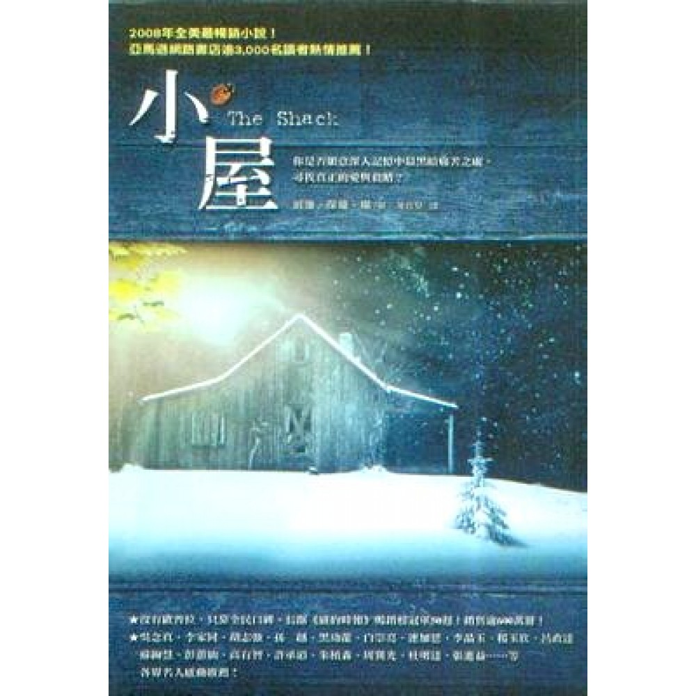 前言 當一個人宣稱自己和上帝共度了整個週末,而且還是在一棟山間小屋裡,有誰不會感到懷疑呢?這就是《小屋》的故事。 自從我和麥肯一起到鄰居家幫忙綑給牛吃用的乾草那天算起,我們已經認識二十多年了。從那時起,我和他便常常像時下年輕人所說的「廝混」在一起,共喝一杯咖啡──或者一杯滾燙的印度拉茶加豆奶。我們的對話有著一種深刻的樂趣,總是點綴了很多笑聲,偶爾也會留下一兩滴眼淚。老實說,我們年紀愈大,就愈常出去廝混。 他的全名是麥肯錫‧艾倫‧菲利浦,不過多數人都叫他艾倫。這是他們的家族傳統:男人的第一個名字都一樣,但大家都知道他們中間的名字,可能是為了避免一世、二世、三世或大麥肯錫、小麥肯錫等無謂的稱呼。這對辨識電話推銷員也很有效,特別是那些喜歡用跟你很熟的語氣稱呼你的人。所以他和他的祖父、父親,還有他的長子都有麥肯錫這個名字,但一般人都用中間的名字稱呼他們。只有他的太太小娜和親近的好友叫他麥肯。 麥肯在中西部某處出生,是個愛爾蘭裔家庭的農場小孩,家規嚴厲,相信雙手勞動的價值。他的父親雖然表面上篤信宗教,但這位過分嚴格的教會長老卻是不為人知的酒鬼,尤其是不下雨、或太早下雨,以及介於兩者之間的多數時候。麥肯絕少提到他,只要一提,他臉上的表情就會像退潮般頓時失色,僅留下暗淡無光的眼神。從他告訴我的幾個故事,我知道他老爸不是那種「一睡解千愁」的醉漢,而是惡毒卑鄙的「先打老婆再求上帝饒恕」的酒鬼。 事情的關鍵點發生在一場青少年信仰復興特會上,十三歲的麥肯錫勉強向教會牧師袒露了心聲。麥肯受到當時牧師呼召的感動,淚眼坦承他不只一次目睹喝醉酒的爸爸把媽媽打得不省人事,而自己卻從來沒有採取任何行動幫助她。麥肯沒有料到的是,聽他懺悔的神職人員與他的父親在同一個教會服事,因此等他到家時,他爸爸已站在前廊等他,媽媽和姊妹們都離奇缺席。事後他才得知她們都被送到梅姑姑家,好讓父親能毫無顧忌地教訓這個逆子何謂尊重。他被綁在房子後面的大橡樹上將近兩天,每次他爸爸恍忽醒來、放下酒瓶,就會一邊念著聖經經文、一邊用皮帶鞭打他。 兩週後,當麥肯終於能再抬起腳走路時,他乾脆動身離家出走。但離開之前,他在農場的每個酒瓶裡都下了劇毒。然後他從外面的小屋旁挖出一個小錫盒,裡面裝了他所有的寶藏:一張全家福照片,每個人都因直視太陽而瞇著眼睛(他爸爸站在一邊沒有加入)、一張一九五○年路克‧伊斯特(1)的菜鳥棒球卡、一個裝有約一盎司「我的印記」(他媽媽唯一搽過的香水)的小瓶子、一團毛線球和兩根針、一小架銀合金美國空軍F—八六噴射機,和他的畢生積蓄──十五塊十三分美元。他溜回屋子,在父親又喝醉躺著鼾聲大作時,把一張紙條塞入媽媽的枕頭下,上面只寫著:「希望有一天您能原諒我。」他發誓再也不回頭,而他也辦到了──只是為時不久。 十三歲根本還不算是個大人,但麥肯的選擇不多,而且適應得很快。關於之後那幾年的事,他說得不多。那段時間他多半待在海外,在世界各地工作,寄錢給外祖父母,再由他們轉交給媽媽。在某個遙遠的國度,我想他甚至在某種恐怖的衝突中拿過槍;自我認識他以來,他就極為痛恨戰爭。無論發生了什麼事,二十多歲時,他終於在澳洲的一家神學院落腳。上夠了神學與哲學的課之後,麥肯回到美國,與媽媽和姊妹們取得和解,然後搬到奧瑞岡州,在當地認識並娶了娜內特‧山繆爾森。 在口水滿天飛的世界裡,麥肯是個實際動腦與動手的人。他的話不多,除非你直接問他,而這又是多數人知道應避免的事。當他真的說話時,你又會納悶他是否是個外星人,因為他對人類思想與經驗的看法和每個人都不一樣。 問題是,他的道理通常讓人不舒服,因為這個世界上,多數人寧願只聽自己習慣的論調,而那些論調通常都乏善可陳。認識他的人大致還算喜歡他,只要他不表達自己的想法就好。他真的開口講話時,他們也不會不再喜歡他──只是他們都會對自己不再那麼滿意。 麥肯有一次告訴我,他年輕時會比較自由地表達心聲,但他承認這種言談多半是一種掩飾傷痛的生存機制,最後常常會把自己的痛苦發洩在周遭的人身上。他說他有一種指出別人的錯誤並加以羞辱、同時又維持自己虛假的權力感與控制感的方法。聽起來不太討喜。 行文至此,我回想自己向來認識的麥肯──相當平凡,絕對不是明顯特別的人,除非真正認識他的人才會這麼想。他將屆五十六歲,而且相當不起眼,是個微胖、頭髮漸禿、矮小的白人,很多男人都可以用這些詞語來形容。你在人群中可能不會注意到他,他在每週進城一次開業務會議的地鐵裡打盹時,你若坐在他旁邊可能也不會覺得奇怪。他在野貓路上家中的小辦公室完成大多數的工作,賣的是我不會裝懂的高科技組件:就是能讓一切跑得更快的小玩意兒,彷彿生活中的一切還不夠快似的。 你不會明白麥肯有多聰明,除非你剛好偷聽到他可能正在和專家進行的對話。我曾經聽過,他說出口的語言忽然不太像英文,我發現自己難以理解如寶石之河般滔滔湧出的概念。他幾乎對任何事都能言之有物,即使你感覺到他對事物有著強烈的信念,但他就是有種溫和的方式,能同時讓你也保有自己的信念。 他最喜愛的話題都是關於上帝與創造,以及人為什麼相