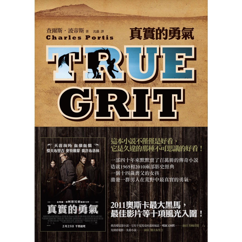 柯恩兄弟導演熱愛的小說 奧斯卡入圍10項大黑馬經典原著 紐約時報排行No.1 四十年來長銷百萬冊的傳奇故事 它不但造就了1969、2010兩部影史經典 它還能讓你讀完說不出話來 看一個14歲喪父的女孩如何激發一群男人在荒野中最真實的勇氣! 只有非比尋常的狀態,才能激發出真實的勇氣 1870年代,南北戰爭剛結束的狂野西部,14歲的女孩麥蒂.羅斯決定深入這片蠻荒之地,為被冷血殺害的父親報仇。 她不是真的不怕,但既然法律幫不了爸爸,那就由她用以牙還牙的態度,來為父親討回公道。她頑強而執著的信念促使她聘請性格剛烈的聯邦執法官考伯恩,並與前來要求合作的德州騎警勒博夫,三人同行前往亡命之徒流竄的印第安特區,尋覓殺父仇人。 這個怪異的組合,卻開啟了一趟令所有人都難忘的特別旅程。兩個飽經風霜的世故大男人從女孩身上重新體會到不懼與不畏,喚醒內心深處早已遺忘的真實勇氣。而麥蒂也在這場經歷中,意外獲得撫慰喪父之痛的機會,形塑出截然不同的人生體悟。 從傳奇小說到影史經典 1968年,美國《週六晚郵報》開始連載一部小說,傳奇性的故事馬上就讓讀者深深著迷,想繼續讀下去。這部小說就是查爾斯.波帝斯的《真實的勇氣》。故事裡充滿冷面幽默、特立獨行的角色,並探討豐富的主題,成為現代小說的經典。這部暢銷作品很快就被搬上大銀幕,1969年拍成由約翰‧韋恩主演的《大地驚雷》,2010年再次被柯恩兄弟相中,改拍為《真實的勇氣》,柯恩兄弟特別對這位小說家讓一名堅決為父報仇的少女成為小說的主人翁感到好奇,尤其是她置身於充滿危險、模稜兩可的道德觀以及殘酷的現實這一點。本片為本屆奧斯卡最大黑馬,入圍最佳影片、導演、男主角、女配角、改編劇本等10項提名,台灣也將於2月下旬上映。