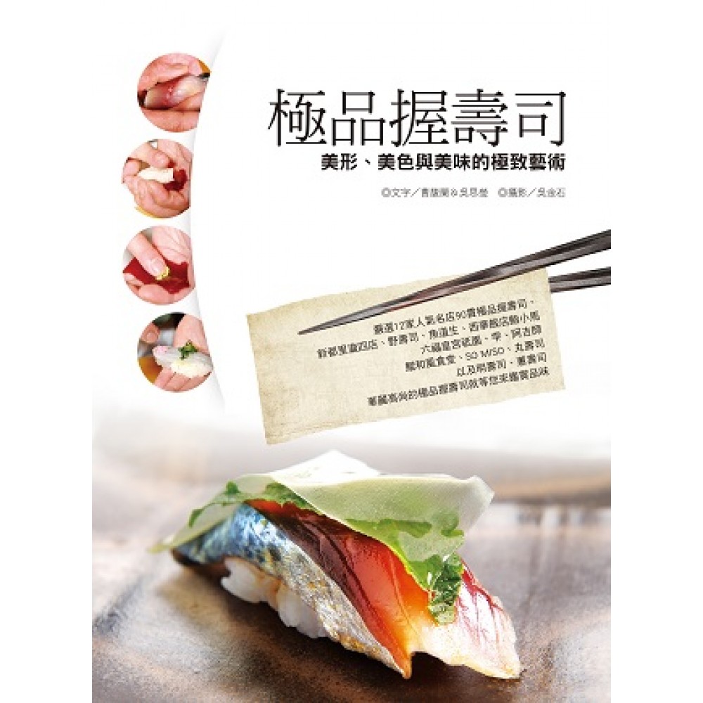 Part1 認識握壽司 10 握壽司概論 12 品嘗握壽司禮儀 18 Part2 握壽司食材介紹 22 海鮮類 24 蔬菜類 29 常見佐料 30 側記──醋飯爽口的祕密 31 Part3十二家名店極品握壽司大賞 34 新都里瀧四店──重現自然氛圍的空間美學 36 野壽司──日本料亭風味的完全再現 45 魚道生──以江戶前手法,創造極致的美學盛宴 50 鮨小馬──從容自在,五星級的幸福 56 祇園──京都懷舊,台北復刻 62 □Shizuku──壽司.割烹的時尚演繹 70 阿吉師──市場立食,四十年功力行家朝聖 76 鯤和風食堂──愛魚、懂魚,釣魚人的食味天堂 81 SO MISO──一場法式優雅的和食之旅 88 丸壽司──穿著平民外衣的頂級迴轉壽司 96 明壽司──家庭式的溫馨,日本饕客成粉絲 104 蕙壽司──以父之名,駕馭台灣魚材尚青 109 Part4 握壽司手技圖解 114 青花魚(醋漬) 116 水針魚 118 醃漬鮪魚赤身 120 春子(醋漬) 122 小肌 124 鱈場蟹 126 真羽太 128 炙燒鮪魚肚 130 真鯛握壽司 132 漬鮪魚 134 明蝦明太子握壽司 136 星鰻 138 紅馬頭魚 140 Part5 食器美學展現 142 食器類 144 茶陶與酒器類 148 筷子類 149