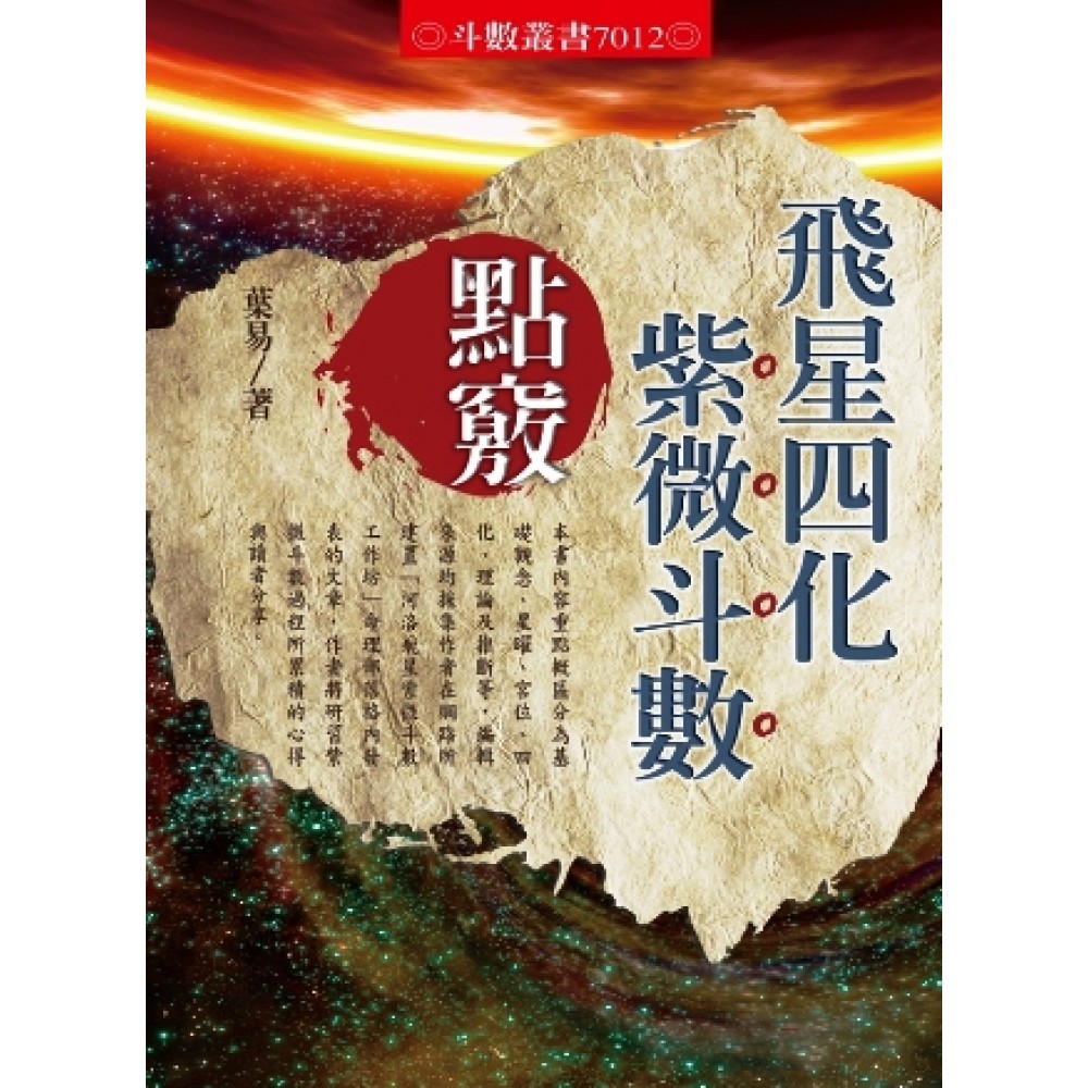 回想起從七十年代期間,坊間紫微斗數皆以三合派為主,且所談的都是紫微斗數全書、全集的範圍,個人也不例外也是抱著古書生吞活剝,經常落入星曜、格局、廟旺利陷的五里霧中,尤其斗數所用星曜繁多,人的記憶能力有限,常常衍生思後而忘前不甚困擾的窘境,兼以三合推論方式,只有空間的象,實務運用上,總覺得有隔靴搔癢抓不住時空輪替與竅門之感,故有段時間幾乎想將紫微斗數放棄,置於高閣! 直後至80 年代坊間突然有所謂「秘儀」資料的出現,命理界一時間風起雲湧,使許多原本研究紫微斗數《全集》、《全書》或研究其他玄學不得其門而入的人,紛紛轉入四化的領域,此乃形成四化蓬勃發展的原因。據稱說「四化」乃源於明朝的欽天監,再輾轉流入民間,故號以「欽天四化」名之。 個人也無法免俗搭上此一風潮的列車,期間企求借著不同理則的命理演繹方式出現,探索能否突破以往陷於紫微斗數泥沼的困境,雖然書籍蒐集不少,也再度投入大量心血去研究,希望獲得脫繭而出的喜悅,然耗費心力甚多,觀念、理則亦有若干進步,但還是無法達到滿意的地步,同時在關鍵的地方,總感覺尚欠缺臨門一腳的意味! 及至2005 年在書局購置恩師翁福裕先生所出版的「斗數執法」、「紫微神探」、「斗數護法」等飛星四化紫微斗數叢書,恭讀之後,理念上幡然有所頓悟。復在2006年初親自登門拜訪,並蒙恩師不嫌棄收容於門下,傳授大易源正宗欽天四化紫微斗數,尤記得恩師翁福裕先生教學與坊間方式不同,其常言每個人都知道紫微斗數重點就在「宮、星、四化」,一般接受教學之同門,基本上對其已具相當概念,若再予以炒冷飯一遍,將教學時間拖過,那是浪費時間不負責任的作法,故上課皆由學員提出命例討論,因此教學過程都在命盤演繹實戰中渡過,一年下來少則經過百來個不同命盤的洗鍊,使學後皆能言之有物。 恩師翁福裕先生生性耿直,嫉惡如仇,惟與同門後學之間相處,令我們感覺屬亦師亦友,有命理上疑難,電話連絡或至住家詢問其均能耐心告知,甚至授業期滿,若干同門要求再返回重複聽課,老師也從不拒絕。另吾輩也常要求其能撥空撰編斗數書籍,以嘉惠後學眾生。可惜的是天不假年,恩師在2008 年年底時,罹病與世常辭,使命理界失去一位敢言敢作之風範學者。 今日「飛星紫微斗數點竅」印製成書,除緬懷恩師翁福裕先生對個人教誨外,本書諸多文章心得皆傳承於老師對飛星四化一貫的理念,個人因囿於自己才疏學淺,雖極力為之,但仍難以將師之法門作詳盡解述說於萬一,謹將此書獻給老師作為紀念! 後學葉易 敬序於桃園