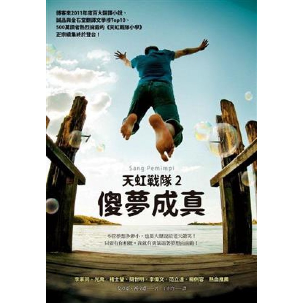 ▓推薦序 勇於作夢,始能成真 文/范立達 對一個平均每年要啃掉兩百本書的嗜讀者來說,絕大多數的作品,能停留在腦海中的時間,大概很難超過一個星期;如果感動能夠持續一個月,就稱得上是好書;而對於《天虹戰隊》,心裡的悸動竟一直維持下來,直到驚喜的發現第二集《傻夢成真》的問世……,這在我的閱讀生涯中,不能不說是一種相當特殊的經驗。 對印尼文化相當不熟悉的我,以前,也絕少看過印尼作家所寫的文學作品。記得去年初次接觸到《天虹戰隊小學》時,心中還狐疑,印尼的小說家有可能寫出撼動人心的大作嗎?以教育為主軸的小說所在多有,本書能夠跳出陳舊的窠臼,開創出新的局面嗎?作者安卓亞.西拉搭在我的記憶資料庫中,是個從未聽聞的人物,他的初試啼聲之作,真能一鳴驚人嗎? 當然,這一切疑惑,都在讀完《天虹戰隊小學》後,有了清楚,而且相當滿意的答案。 這回接觸到《天虹戰隊2:傻夢成真》的手稿時,心中也有另外的疑惑。 無可避免的,最初浮上心頭的想法一定是:續集能夠超越首部曲嗎?這會不會是部狗尾續貂之作?對照厚達三百多頁的第一集,這本續集書在分量上顯然就遜色不少,那麼,內容的紥實度呢?閱讀過程中會有更多的驚喜嗎? 很高興,在看完這本《天虹戰隊2:傻夢成真》後,心中的疑惑也同樣有了清楚而且相當滿意的答案。 看過《天虹戰隊小學》的朋友們,一定都還記得,書中描寫一群尼印貧苦少年在求學之路上如何努力掙扎的過程。教育是讓階級流動的最好方法,但受教權卻不是人人皆能擁有,勿里洞島的小孩們在完成充滿歡笑與淚水的初等教育後,能夠順利再上層樓的,卻屈指可數。 書中主角伊卡在本書《天虹戰隊2:傻夢成真》中,已經幸運地成為高中生,但昔日戰友卻已各奔前程,在新的環境中,陪伴他的是表哥亞萊和嗜馬如命的憨友金寶。 求學的過程依舊充滿歡笑與淚水,為了籌措學費,他們三人必須披星戴月,在天色還沒亮時就起床打工,再靠著半工半讀掙來的薪水,努力設法實現他們的夢想。 他們雖窮,但不自私,也不悲觀。書中有一段情節,描寫他們三人慷慨解囊,拯救生活比自己更過不去的一家人,令人動容;金寶為了朋友,犧牲小我,完成大我,也令人感動。當然,讀到他們三人偷溜進電影院看A片的過程,以及亞萊求愛卻鎩羽而歸的慘狀,也讓人捧腹大笑。 書中也有幾段非常精彩的對話,值得一看再看。例如,當伊卡因為意氣消沈,而使成績一落千丈,甚至喃喃道出「儘管說出夢想,好讓上帝看看笑話」時,表哥亞萊鼓勵他:「像我們這樣的人,什麼都沒有,只有衝勁與夢想,我們得為夢想全力而戰!」、「要是沒有夢想,像我們這樣的人跟死人沒兩樣!」、「也許畢業後我們只能當苦力,但在這所學校裡,我們絕不能讓命運 提早成真!」而伊卡也因此醒悟,「悲觀主義不過是自以為是,只是讓命運提早成真罷了!」這段內容,真值得想要自我放棄的人們再三咀嚼。 伊卡的夢想最後能不能一如書名所示,終於成真?那就要讓各位讀者們自己去發現了。但看完本書後,心中卻立即浮現那句格言:「不要擔心自己的夢想有多大,要擔心自己敢不敢作夢!」 昨天的夢,是今天的希望,是明天的事實! 共勉之。