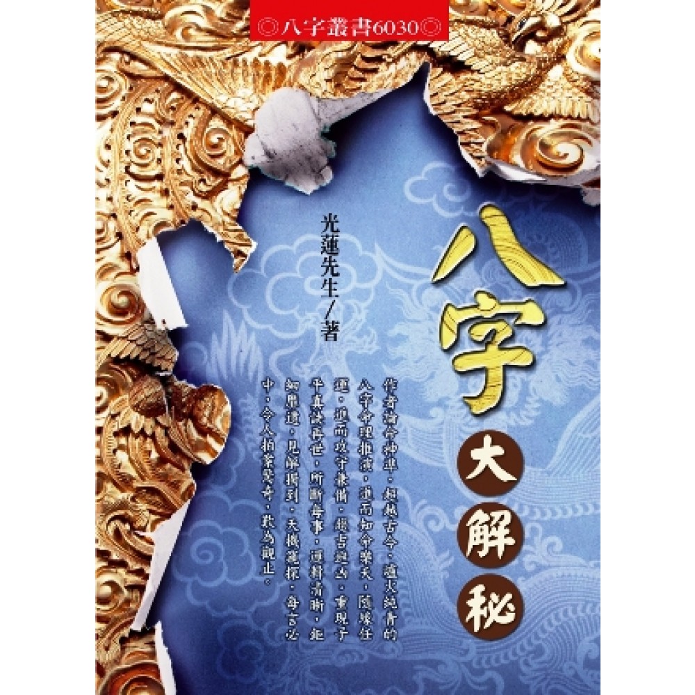 本書內容直入八字核心,徹底瞭然命運真相。本書針對真正有心深研八字的讀者,盡個人多年研究,與同好一起通過學習障礙。 有了本書,讀者們可以不必面對八字苦思無解,廢寢忘食,輕輕鬆鬆就能即刻抓到八字重心,大明八字底細。因為人生在世,時間有限、時間寶貴! 本書是個人過去所有著作的總整理、總論、總解秘,學習者熟識裡面原理、原則以後,在拿到任何八字時,立時瞭然命運的實相,當然還可以加上自己的創見,這樣絕對可以把八字學發揮到淋漓盡致,而且可以為「生命是由五行與地球磁場的順逆、旺衰而出現和消失的。」作見證。 本書分五大主題,第一:「感情與婚姻」、第二:「生命的障礙」,都是補前《揭開神秘的八字命理》資料的不足。第三:「歲運現象」,增加頑皮孩童、考試運、驛馬奔騰、貴人相助、《八字機緣點竅》裡的「八字氣數神機簡介」的例題解答,這些讓人大開眼界的項目。第四:「六親緣分與生男生女大解秘」,熟悉這個主題,就可以知道與親人的緣分,有把握親情盡孝道的難能可貴,與緣盡應該放下的醒悟,另外還有什麼時候容易生男孩和生女孩的利用;讀者更可以在雙人部分裡面,知道怎樣的婚配是好婚姻或婚姻事件的為什麼?第五:「名人八字記錄淺析」,這裡可以清晰瞭解名人一生的為什麼?看過就會立即了然名人一生成敗的關鍵。