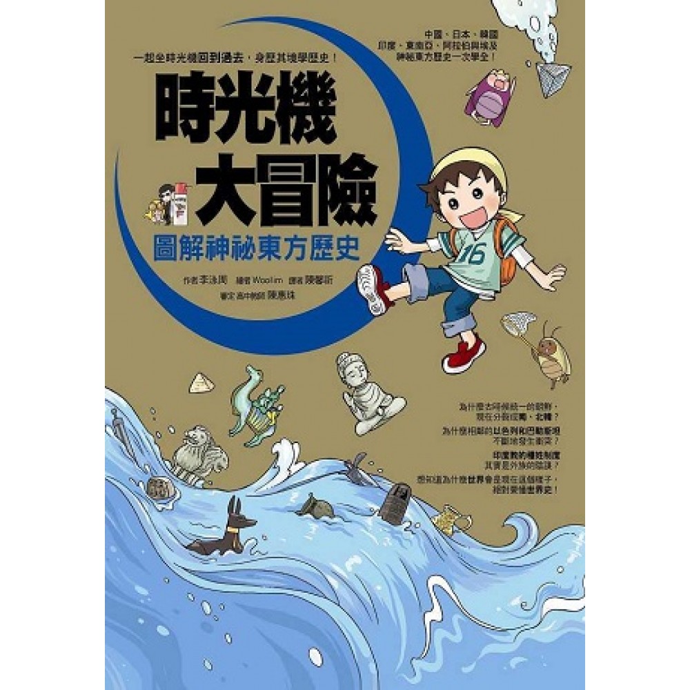 一起坐時光機回到過去,身歷其境學歷史! 為什麼古時候統一的朝鮮,現在分裂成南、北韓? 為什麼相鄰的以色列和巴勒斯坦不斷地發生衝突? 印度教的種姓制度其實是外族的陰謀? 想知道為什麼世界會是現在這個樣子,絕對要懂世界史! 中國、日本、韓國、印度、東南亞、阿拉伯與埃及等神祕東方歷史一次學全! 跟著飯店小開白寶與蟑螂王子安德烈、隨從咕夢一起… 用故事學「東方歷史」、 用美食學「東方人文」、 用漫畫玩「東方古蹟」。 全書系韓國史上最暢銷學習讀物, 台灣學生有史以來傳閱率最高! ■《時光機大冒險--圖解神祕東方歷史》原版書蟬聯韓國網路書店排行榜冠軍。韓國國中、小學生,幾乎人手一本。全系列狂銷超過3百萬冊,並獲選韓國優良讀物! ■《時光機大冒險--圖解神祕東方歷史》全書故事緊湊,坐時光機學歷史,1小時帶你穿梭千百年! 《時光機大冒險--圖解神祕東方歷史》全書內容豐富卻不繁雜,上一秒還在中國的商朝,下一秒就到日本的幕府時代!利用關聯性一次學習東方歷史,1小時熟透千百年的故事。 ■《時光機大冒險--圖解神祕東方歷史》用漫畫告訴你,為什麼世界會是現在這個樣子! 夢想成為大廚師並對美食如數家珍的白寶、受良好教育的蟑螂王子安德烈,與他的萬能隨從咕夢,因為一個意外必須共同到世界著名古蹟完成任務,在途中他們經歷多次牢獄風險、面臨許多難關挑戰,以及許多遊玩享受、搞笑互相吐槽的情節裡,都可以學到世界為什麼是現在這個樣子。 ■《時光機大冒險--圖解神祕東方歷史》不只有漫畫故事,每章還有課後重點筆記整理,方便隨身攜帶隨時記憶! 看完了白寶與安德烈的搞笑漫畫,每章最後還有圖文並茂的筆記整理,短短的2~4頁歸納出整章的學習重點,有圖有文時而伴有表格,清楚易懂,一目瞭然,影印下來可隨身攜帶,隨時背誦複習,考前抱佛腳超好用,因為考題都在上面,但是不能當作弊的小抄喔! ■韓國國中、小學地理老師指定課外讀物。 ■全台灣高中、國中、小學、課輔班、安親班瘋狂搶購中。