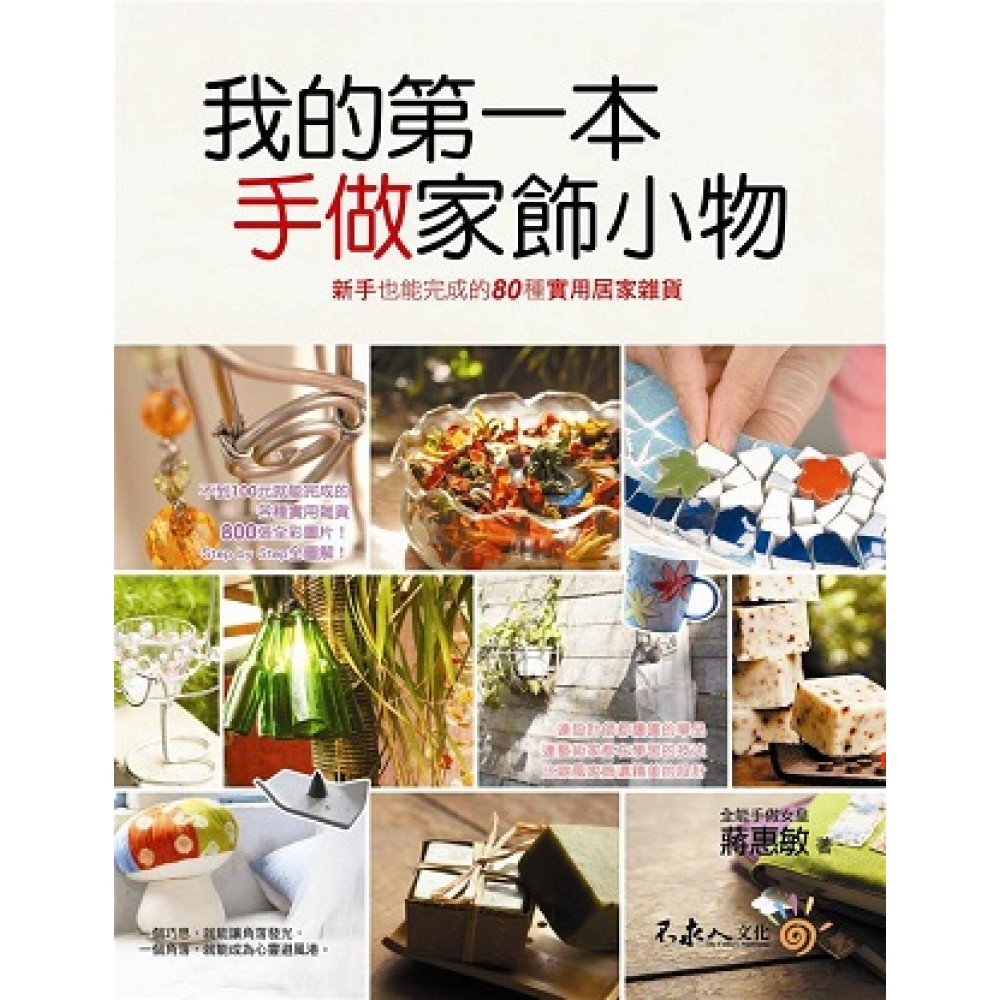 用手做小物寫下你的故事 如果你參觀過樣品屋,你會看見一個裝潢氣派、燈光明亮、空間寬闊、家具齊全的房子,但就是缺少了「人味」,也因此,我們只能認定它是房子,是樣品屋,而不是一個「家」。 現代人工作壓力大、生活忙碌,療癒小物盛行,不論在辦公室、隨身包包、房間裡到處充滿了可以讓你會心一笑的物品,這些小物的集合帶出了你的品味、個性、與不為人知的心思,也讓你在密度過高的生活中得以喘息。 然而這些小物用買的容易取得,如果你選擇自己動手做,你會發現在製作中這段與自己對話的過程,將得到更令人滿足的心理慰藉,並賦予這件手作物品一個故事,這就是我執迷於手作的原因,而且不用花很多錢,可以利用現有的東西,或是準備丟棄的舊物或廢物,恣意地發揮你的想像,把你的故事寫進手作小物裡。 把捨不得丟棄的舊衣服、鈕扣變相框;珠珠、鋁線、布料變成抱枕、娃娃;或把過去的舊相片,燙印在相本的書衣上……所有完成的作品總能讓我滿懷興奮與滿足。作品上的舊東西可以喚起曾經有過的記憶,讓美好回憶與我們相伴;我把自己的手創生活中用作品一一呈現出來,算是另類的日記吧! 因為《百元打造浪漫滿屋》與《設計.家》的熱烈迴響,我們將內容做部分修改之後,再推出《我的第一本手做家飾小物》,讓更多新手讀者也能親身體驗親手佈置家的喜悅,小至一個椅腳套,大至一面牆,都是我們可以盡情發揮創意的地方,只要有一些簡單的材料和步驟,任何人都可以為自己打造一個溫暖的避風港。 這次出書過程中要感謝(女吾)碧老師在肥皂、薰香及肌膚保養單元製作上幫了我很大的忙,讓《我的第一本手做家飾小物》這本書在生活的各個面向更加完整,能在讀者面前達到最完美的呈現。