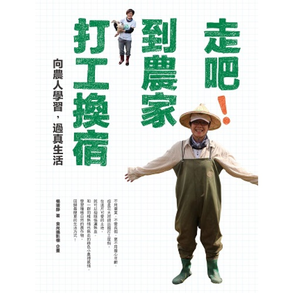 到農村去,透過交換食宿,向農人取經,學習過真生活。 我從來不知道我這麼行,砍柴、燒水、搬甘蔗樣樣都來,也不知道原來我可以早睡早起當農夫。 在農家學習生活的這段期間,在台灣各地的農莊裡,透過交換食宿,跟雞作伴,找鴨玩耍,帶報紙給鳳梨看。 這些日子裡,我彎起腰,捲起袖子,光著腳丫,在水田裡插秧、抓螺、拔草,趕水鴨,在果園裡抓蟲、套袋、剪枝、採果與除草,在農舍裡做糖、製茶、挑黑豆。 到農家學習農事之後,腰際變黑了,手指腳趾甲間變得黑嘛嘛,身上的肌肉變結實了。從田裡回來後,媽媽見到我,忍不住說:「你幹嘛去田裡做辛苦工?手腳被蟲叮成紅豆冰,白白的臉變得好黑。」 我回答:「在野外曬太陽,總比一直躲在室內冷氣房裡好;在鄉間看綠油油的植物,總比一天到晚盯著電腦,看到眼睛脫窗好;學習當農夫,回歸最簡單的生活方式,總比在都市裡爭到你死我活好;日出而作,日落而息的工作,總比工作到半夜,還不能回家好;學會種植自然的農作物,總比花大把錢去買保健食品好。」 於是我奔波於台灣各地,體驗農夫生活,學習到簡單的生活態度,認識許多為台灣這塊土地默默耕耘的人們,這是無價之寶,不是金錢可以衡量的。這是一門珍貴的課,讓我學習到農夫友善大地的生活之道, 這樣的主題,看起來像似市面上非常盛行的農村體驗、棄業旅行與換工旅行的書。但不只如此! 本書拜訪了全台十多個農家,體驗從製鹽、製糖,到種植稻米、雜糧、蔬果與養殖雞鴨禽類的生活學習,重新發現生活的意義與旅行的價值。內容結合了農人的故事、農家生活體驗、農務常識、農家的料理,以及在地農村旅行。 這是一本可以當作生活旅行的文學書、勞力交換食宿的工具書,也可當作是一本料理工具書、認識好食的參考書。更是一本提供想要尋找自我、回歸自然,學習簡單生活的理念書。