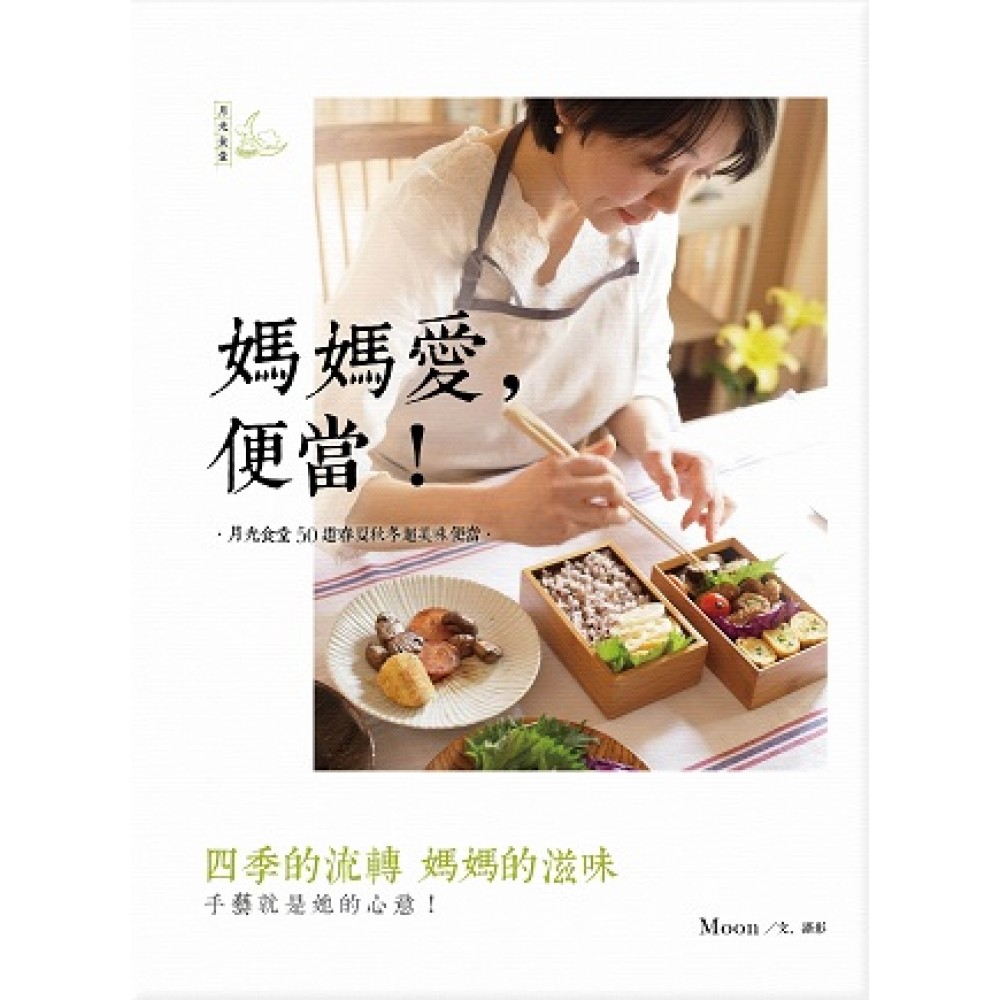 四季的流轉.媽媽的滋味 手藝就是她的心意! 把便當變成時尚,把平凡家事昇華為一場盛宴! 道地和食料理不藏私第一手公開 step by step做法完全圖解 主菜 + 佐菜 = 一天的能量 基隆媽媽的家鄉味→(春)什錦炒麵三明治 給你加油打氣的吶喊→(春)南瓜歐姆蛋便當 化解飢渴、沮喪、憂鬱的心靈→(春)和風炸雞便當 月光便當的點菜冠軍→(夏)三色鬆便當 野餐席地隨手吃→(夏)烤味熷三角飯糰 一見鍾情的美味→(夏)青蝦鑲蝦仁便當 桌球比賽的日子→(秋)肉捲秋葵便當 道地傳統和食料理←(秋)鹽麴鮭魚便當 記憶難不倒.向大考衝刺→(冬)豆腐漢堡排便當 下午茶時間→(冬)水果三明治 蒙灰的心情→(冬)明太子飯糰 人生的大節日→(冬)乾煎鯛魚便當