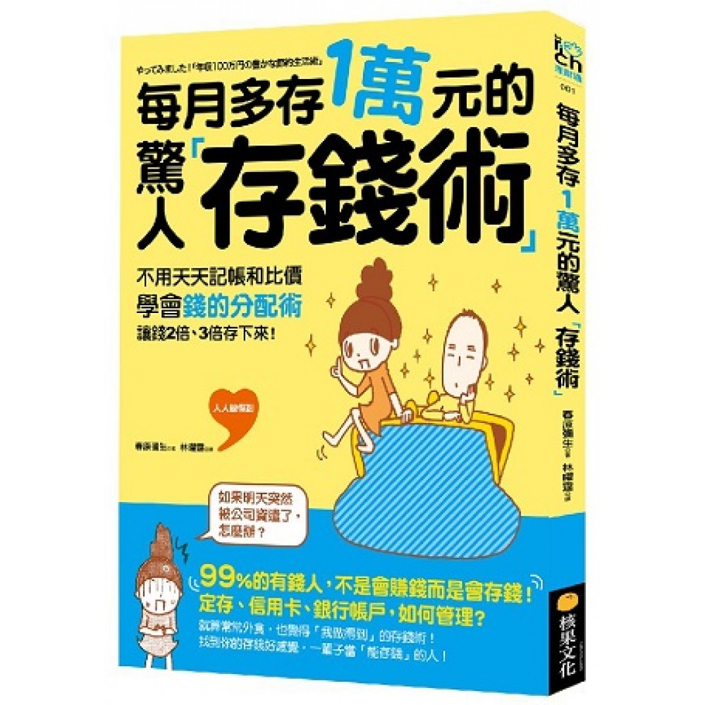 賺錢辛苦,「存錢」才是致富王道。 學會「錢的分配術」,不需要斤斤計較,每個月多存1萬元。 不可靠時代,為自己多存一點救命錢! 一直存不了錢的人妻漫畫家驚人發現: 「只做7件事,每月『自動多存』1萬元」 本書作者春原彌生一直以來都很怕老公問起:「老婆啊,我們的帳戶存了多少錢?」,以插畫接稿為生的作者,收入明明比以前多,家裡也沒有顯而易見的大筆開銷,但,銀行裡的存款數字居然一點兒都沒有增加,還接近「零」…… 每個人都想存錢,但一想到「存錢=過得苦哈哈」,開始約束自己這個不能買、那個不能吃的時候,就渾身不對勁……,作者也是,在執行省錢計畫前就頭昏眼花、心跳加速、直冒冷汗,真是唉呦喂呀!不如明天再說吧…… 作者覺得自己不是很會花錢,但是為什麼存款數字一直無法增加呢?透過求教「每月只花3,000元、追求幸福感的節約達人」山崎壽人先生,插畫家春原彌生養成驚人的「存款體質」。 ◆天天出門,其實是不自覺的大漏財! 這位完全沒辦法存錢的苦悶人妻,在接觸「追求幸福感的節約達人」山崎壽人先生後,才發現存錢「哪有那摸苦」!只需要動點腦筋,就能魚與熊掌兼得:既保有生活品質,存款數字又快速增加!不但不苦悶,還頗有樂趣的呢。 一般人總以為,想要存錢,就得天天記帳、得算這算那、得每天看廣告單撿便宜,實在有夠麻煩。(還很小鼻子小眼睛,全身一股窮酸氣!)作者也曾經很不爽地跟老公撂話,「為了便宜一塊錢而跑到老遠的地方買東西,工作一忙起來時我可做不到!」(啊啊啊!小編也這樣想!) 自從發現可以把存錢當遊戲來玩,而且不影響生活品質後,作者開始「奮起」力行。她經常這樣驚呼:「我的媽呀~原來日用品價差這麼大!原來各種紅利點數都被自己浪費掉!原來帳戶裡有一點錢,就會不由自主的花掉!」原來每天出門,都在不自覺地漏財!!! 於是她不但自己頓悟,還以最擅長的漫畫形式,幫大家除「心魔」! ◆跟著做「7件事」,立即省,每月存 每個人對「生活美好」有不同的想像,對春原彌生來說,工作後暢快喝啤酒、一個人跑去吃燒肉、三不五時看看舞台劇,是絕對不能減損的生活樂趣。 以「讓生活更豐富」為目標,夫妻兩人嘗試各種輕鬆、效果大又有續航力的存錢idea,並總結為7個簡單的方法: 1. 找出「固定花費」漏錢的地方,一次省很多! 先從「固定花費」下手防漏,效果最大。網路費、電視收訊費、電話費,甚至美甲費、美容費、補習費…找出過去沒注意的「漏洞」,未來一兩年不用特別做什麼,每天眼睛張開都在省錢。 2. 選定固定店家,省下天天比價的時間! 走訪家附近的商店做簡單的比價之旅,以認清商品「可下手」的價格。這麼做的好處有兩個,一來避開價格不合理的商店,少上門減少失手機會,二來選擇一家常往來商店,能讓紅利積點最大化。 3. 收入進帳前,先分配錢的用途,是存錢的大關鍵! 「流水帳式花錢法」讓人傻傻付錢不設防!將花費和帳戶都做簡單區隔,能讓大腦知道是否花過頭了?結清存一點點錢的存簿,也能幫助腦袋斷捨離。 4. 換掉不實用的信用卡、會員卡,集中火力集點! 一般人浪費掉的紅利點數,出乎意料的驚人!尤其現在幾乎每家店都有積點活動,三不五時還有特別的會員折扣,書中教大家如何簡單算,馬上排除煙幕彈,找到最適合你的花錢方案。 5. 一週速記,快速找出存錢漏洞! 每星期都能莫名其妙花掉一筆錢,若有這種感慨,記帳是一定要的。但一般人沒有時間天天記、筆筆記,怎麼辦?作者分享了一週速記的方法,把發票收集起來黏上去,花費一目了然。 6. 改掉天天外食習慣,多省的錢超乎你想像! 小時候外出吃飯是大事,難得吃一次總能回味許久。現在天天外食,不夠營養健康不說,連心裡的滿足感也稀釋得厲害。請開始學做簡單但看起來高級的料理,不但多存錢,還賺到了家人間的相處! 7. 「是想要還是需要?」買東西之前請問自己100次 我們處在一個行銷至上的年代,常被各種訊息洗腦,誤以為沒有A就沒有B,比如聖誕節沒有吃大餐,就沒有過節的氣氛;老公沒有送鑽戒,愛情就沒辦法恆久遠。可是照著做,並沒有比較幸福?價值觀重新大洗盤,省下來的都是大錢呢! 重新檢視花錢的方式,幫助我們看到自己的「生活美好」。這一點,還真是有錢也買不到的呢! ◆99%的有錢人,不只會賺錢更「會存錢」! 就算常常外食,也覺得「我做得到」的存錢術! 找到你的存錢好感覺,一輩子當「能存錢」的人!