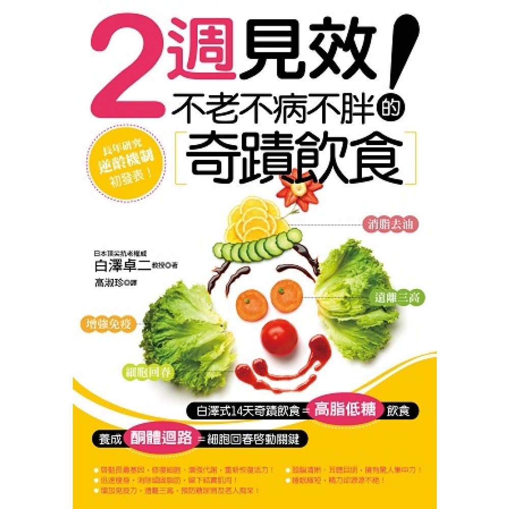 醣類比脂肪讓人更容易變胖和生病? 縮短睡眠時間反而可以迅速提升工作能力? 減少攝取碳水化合物讓你一天工作15小時也不會累? 錯誤的常識謀殺你的身體,你的健康觀念該更新了嗎? 要享受美食,也要保持身材! 要享受生活,也要擁有健康! 掌握大原則,調整用餐比例分配,滿足口腹之慾還能愈吃愈健康。 奇蹟飲食法=三餐照吃,不必節食,兼顧現代人生活型態與可簡單實踐的飲食計畫 即使是低脂飲食,醣類還是會轉而合成脂肪,只有減少醣類的攝取,身體才會分解開始脂肪。白澤教授提出的飲食法,是一種高比例脂肪、適量蛋白質和低碳水化合物的飲食,它將身體的主要代謝能源從利用葡萄糖轉變為利用脂肪,通過肝臟代謝產生酮體,酮體作為另一種身體能量的供給源可以產生對腦部的作用,當身體進入「酮體迴路」時,細胞會開始自我修復、重新活化,使代謝增強,體態迅速健康苗條,睡眠品質變佳,進而精力源源不絕,集中力更是提升到前所未有的程度! 日本頂尖抗老權威白澤卓二,長年研究逆齡機制初發表! 「酮體迴路」=細胞回春啟動關鍵 ◆14天絕對見效,「10種蔬果汁+外食2周」打造生酮體質 ‧7分飽是維持健康的最高原則 ‧早上來杯蔬果汁遠離砂糖毒害 ‧2周內啟動酮體迴路 ‧低GI值食物避免血糖急速上昇 ‧吃東西的順序也很重要 ‧細嚼慢嚥讓身體產生飽足感 ‧吃太飽會導致血糖值上昇 ‧發酵食品有益身體健康 ‧以蔬菜、肉類和魚類為主食 ‧偶爾喝點酒也無妨 ‧一定要避免攝取的食物 ‧外食2周的推薦菜單