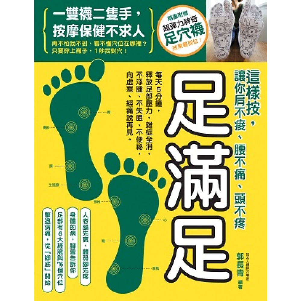 腳是身體器官的地圖 能促進血液循環、活化身體機能、刺激淋巴排出廢物 提升免疫力和自然痊癒力 是最好的預防醫學 一找就到、一看就懂、一按就對位,按病找穴,配合書中完整建議按摩時間、按摩順序、手法與搭配中藥調理,全方位的家庭必備保健書。 首刷限量附贈「足穴襪」 再不怕找不到、看不懂穴位在哪裡? 只要穿上襪子,一秒到位, 立即成為自已和家人的專屬按摩師 一雙襪、二隻手,按摩保健不求人! 不論是頭痛、失眠,甚至是高血壓、心臟病、糖尿病,流傳已久的神奇足穴按摩療法,都在本書裡找得到對治之道。穿上「足穴襪」,跟著書中示範的步驟,一一找到對應的穴位,每天5-30分鐘,無需龐大的費用,沒有任何副作用,舉凡大小症狀、預防或自療,輕輕鬆鬆就能達到驚人的效果。 書中不但對足穴按摩原理、手法、工具等有詳盡解說,更針對內、外科等5大科常見61種病症,每一步驟及其對應的反射區,均以全彩圖解示範。按圖索驥、易查易懂,除穴位按摩本身,更針對個別療程,分別提供中醫對治藥方或飲食建議,相輔相成,務使每一次療程都能達到最大效益。 足穴按摩的四大好處: 一、 動作簡單、步驟好記 二、 不受空間限制,隨時都能做 三、 招式變化多,持之以恆不無聊 四、 只要幾分鐘,就能達到效果 按了會神采奕奕的關鍵解說: Point1.:足穴按摩、反射區與足浴保健。 Point2.:5大科61症狀自療速查 1. 內科:常見如感冒、氣喘、便祕、心臟病、糖尿病、高血壓等。 2. 外科及骨科:如痔瘡、各種扭傷、類風濕關節炎、骨質疏鬆等。 3. 皮膚科:如痤瘡(青春痘)、溼疹、牛皮癬等。 4. 婦科、泌尿科及小兒科:如月經不調、不孕、陽痿等。 5. 五官及耳鼻喉科:如牙痛、耳鳴、扁桃腺炎、慢性鼻炎等。 Point3.:全身自我診察、居家日常預防保健示範。內容涵蓋所有現代生活從頭到腳、由裡到外最需要的保養,包括了: 如何觀察雙足,藉由望、觸診來感應自己身體有無異狀。 如何預防感冒、失眠,如何用不傷身的方式瘦身減脂等。 如何舒活頭、眼、耳、鼻、脾、胃、腎等五官、臟腑,保持血脈暢通,遠離病痛。