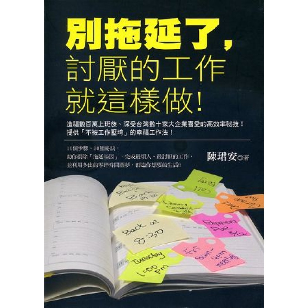 作者序 只要使用一招,你就是效率達人 你是不是經常發生下列的狀況呢? .帳單放到過期而被催繳,並被罰滯納金。 .總是拖到最後一天才報稅。 .計劃每半年就去做一次牙齒檢查,但已經過了兩年了,你還沒有任何動作。 .凌亂的書桌令你感到煩躁,而你有「整理」的念頭已經一年多了。 .每年寄的新年或生日賀卡,都變成了「遲來的祝福」。 .生病時,總是能拖就拖,直到無法忍受時才願意就醫。 .赴約時經常遲到。 是不是有某件事情或工作長久佔據你的心裡,你應該要完成它,卻一直延遲沒有去做?面對很重要的事情,你是不是會拖到最後一刻才願意動手去做?你會為了想要把事情做到完美而延遲進行,並感到內心忐忑或焦慮不安嗎?你的拖延習慣是不是影響到你的工作效率,並讓你的生活陷入一團混亂?是不是把家人、同事、朋友都快逼瘋了? 從時間安排中獲益的人,就好像是騎自行車遠足的人群,他們知道要到什麼地方去:他們的自行車已準備就緒,時間安排原則如同他們出發探險所需要的地圖或指南。而拖延的人則是在公路上散步。他們甚至還沒有決定到哪裡去,也忘了騎上自行車,當然,因為他們事前沒有給自行車補胎,即使有自行車也走不了多遠。地圖和指南(時間安排原則)對這群人是毫無用處的。他們需要的是別的東西──克服拖延的問題。 做事情拖拖拉拉,可能對你的生活造成難以想像的傷害,它會給你帶來重重壓力,讓你疾病纏身,並降低你的自尊。它使得你無法達成目標,實現你的夢想。不過沒有關係,你還有希望。在本書中,我將告訴你如何不再做事情拖拖拉拉,變得富有創造力與效率,並學會就你的個人目標和價值,做出輕重緩急的安排。 本書可以讓你做到以下幾點: .認識並糾正你的一些徒勞無益的思維方式。 .弄清你藉口拖延的小把戲和行為風格。 .應用已證明是有效的對抗拖延技巧。 .當陷入或重新回到你以前的拖延的格局中,要制訂向前邁進的戰略。 .設計你的個人行為計畫。 在每一章的最後,都附有「對抗拖延」練習題,它將幫助你接受你所閱讀的資訊,並藉著將本書中的原則運用到你的生活中,並將這些資訊個人化。如果你喜歡回答問題並衡量進展情況,這一部分是專為你準備的。如果你寧願跳過這些練習,不做也沒有關係;但至少看一看每一道練習,你可能會發現這些練習很有意思,很有趣。 不管你是常常拖延,還是偶爾才會拖延,本書都非常適合你,而且現在就是閱讀本書的最恰當的時間。你正開始要爬出拖延陷阱的邊緣。所以,我們現在就開始吧。就是現在!別再拖延了!