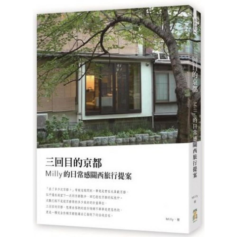 「去了多少次京都?」常被這樣問到。畢竟是實在太喜歡京都,似乎還在渴望下一次的京都散步,卻已經在京都的私旅中。 次數已經不是從京都得到多少美好的計量單位,三回目的京都,想要去容納的旅行情緒不單單是更悠然的,更是一種完全信賴京都能讓自己愉悅下的自我自在。 【三回目SAN‧KAI‧ME】意指第三次,在日文中「三」也可代表很多的意思。 一回目的京都,興奮度很高,清水寺、金閣寺、錦市場都走遍了。 二回目的京都,開始往巷弄裡鑽,探尋地元人的私房美食。 三回目的京都,腳步好像真的可以放慢了,想在旅行中營造出日常的情緒,能不能就幻想一下自己在京都生活呢? 這回Milly遇上了久違的新綠京都,櫻花已飄散落盡,枝頭綠芽冒出,為古都換上一身清新。體驗不同於楓紅時期的嵐山魅力、與鴨川培養感情、品嚐屬於大人的料理美味、採購麵包、享用悠閒咖啡……然後呢,關於旅行的挑戰可以再進階了。以京都為據點,出發進行不同主題的小小旅行吧。 比京都更古的奈良,除了春日大社前的鹿,更多隱秘小店等待被發掘。 宛如日本女子旅行會的行程,來去城崎溫泉身心靈放鬆。 散發舊時代風情獨特氛圍,到神戶體驗東西文化的完美結合。 就只是想可愛,與小小車站貓咪站長的約會。 新與舊的交會,大阪車站的超級城中城與天王寺下町風情。 屬於日本關西地區的美好路線,在休日與日常之間完美轉換,這是三回目開始的京都,任性的依戀著以京都為家的歸屬感,帶著小小冒險的玩心,重新定義生活旅行的全新比例。
