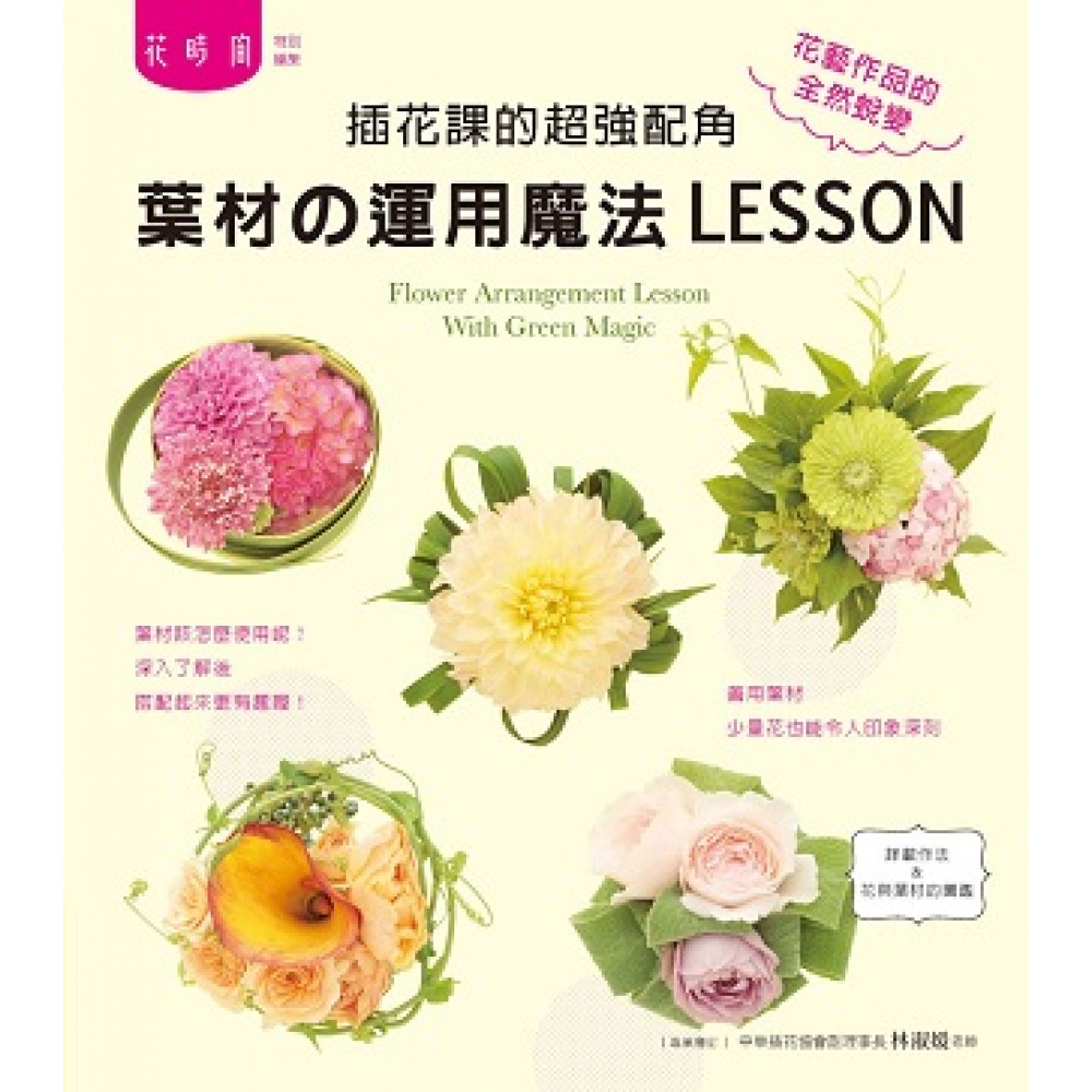 「花時間」特別編集 專業審訂:中華插花協會副理事長 林淑媛老師 花朵的美麗是無庸置疑的,但在葉子的襯托下,不但可使花卉更加耀眼,花藝作品也富有變化了。在花市或花店採購時,面對不同形狀與品種的葉材總是不知該如何挑選,那你一定要看看這本書,保證能對使用葉材更加得心應手喔! 書中的葉材依形狀與顏色分為多種類,如面狀葉材、線狀葉材、蔓性葉材、銀色系葉材、鋸齒狀葉材等,有的可以增加氣勢、有的柔美又纖細、有的讓作品增加動感或野趣……內附常見葉材的圖鑑,認識了形狀與特性之後,更能掌握使用的時機囉!即使是同樣或同類的葉材,依照搭配技巧的不同,也能展現作品的更多表情喔! 而配合書中單元,以四季生產的各式葉材,加上創意巧思,來製作充滿季節感的小禮物或家中裝飾都很不錯喲!