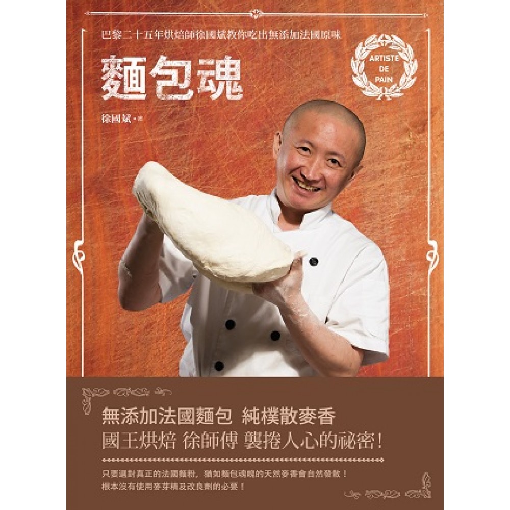 推薦序 潘秉新 「傅培梅飲食文化教育基金公益信託」執行長、「yamicook廚藝教室」負責人、今周刊「吃得幸福」美食專欄作者、環宇廣播電台「人生廚房」主持人。 在一個惠風和暢的三月天午後,yamicook廚藝教室內,有被主管派來取經的大飯店麵包師傅、有為了家人健康第一次上麵包課的母親、有迷戀法國麵包的時尚美女、有做麵包調劑生活的電腦工程師,還有一位先生,要以自己親手做的麵包,當成讓妻子驚喜的生日禮物。 他們是徐國斌師傅好幾個梯次麵包課的其中一班學員,而不管是抱持甚麼想法來上課,當我看到,每堂三個多小時示範及實做過程中,16位學員聚精會神地學著徐師傅的手法,體會自己親手做出來的興奮,以及,從他們品嘗徐師傅的招牌「富貴金棍」時,每個人臉上所流露的滿足、愉悅和感動,我深知,徐師傅的「麵包魂」已深深埋入他們心中。 我非常了解那個「麵包魂」帶來的心靈悸動,因為2013年四月,當我第一次在新北市新店區中正路遠東工業區,找到徐師傅的小小麵包店「國王烘焙」,把他的棍子麵包撕一塊放入口中咀嚼,那滿溢口腔的麥香和乳香,外有勁、內濕潤的口感,及剖面金黃油亮、冷吃更為迷人的風味,這一切的感覺,讓我在「今周刊」的「吃得幸福」專欄中寫了這段話:這個有靈魂的麵包,有如米勒「拾穗」畫中,在田地勞動的農婦,如此自然純樸又富生命力。 很榮幸,2013年我是第一位採訪徐師傅的美食記者,更榮幸,2014年能為他的第一本書《麵包魂!:巴黎二十五年烘焙師徐國斌帶你吃無添加法國原味》寫推薦序。 才一年半,徐師傅已闖出不小的名氣,創下一天賣出2000根棍子麵包的驚人記錄,成為遠東工業區的傳奇;「我憑的就是法國麵粉所散發的天然麥香味!」口口聲聲強調麥香、麥香、麥香的徐國斌,要以這個味道打破法國麵包在台灣的神話,他不標榜資歷、技術、工序、溫度、菌種、發酵時間等等,不管是對顧客、對學員,就是一再強調:「有麥香的麵粉才是麵包的靈魂。」 他教學員,不要追逐流行,應以了解飲食文化為做麵包的心態;也因為熱愛法國飲食文化,徐師傅堅持教法國傳統麵包工法,材料是優質的法國麵粉、海鹽、酵母、水。做法只需用雙手輕撥、輕揉,經過一定的時間發酵,就能做出健康美味的棍子麵包。不必攪拌器、發酵箱,不需費勁揉搓,材料簡單、做法簡單,所以,他上課的開場白通常是:「請大家不要叫我老師,因為實在太簡單了,叫我小徐就好了」!這番話總引來哄堂大笑。 儘管如此,還是有學員課後和我分享,他們覺得徐師傅其實有一雙魔手,因為,麵團在他手上似乎特別聽話;我想,徐師傅25年的投入,全身的細胞早和麵包緊緊連結,每天心情的好壞,就是取決於麵包做得好不好。如果真要說他的麵包有何「附加調味」,那就是徐師傅邊做麵要邊聽三大男高音的演唱。「潘姐,我的音樂呢!」他上課時,我要隨時注意調整CD音量,聽不到時,他會小小抱怨,然後跟學員說:「今天麵包做不好,就是潘姐沒放音樂!」這話又引來一陣笑聲。 其實,他想教的,是一種以麵包為主食的生活方式,一種不只是麵包的生活品味!在這本書中,他不藏私的把麵包配方公開,介紹他喜歡麵包配紅酒、起士的吃法,就是抱持一種推廣和分享的想法。雙魚座、屬虎的國斌,個性有柔有猛,身為苗栗頭份客家人,生活方式和觀念卻是法國人;書中也寫了他13歲隻身在法國,27年來人生每個階段的起落。相信,大家一定可以從這本書中,得到充滿「人生況味」的美好閱讀感受。 而我,則要趕快想辦法,讓越來越多報名候補的學員上到國斌的麵包課! 作者代序 歸心,台北 2012年初夏,我讓自己漫長的二十多年烘焙師生涯休了一個難得的長假,遠離了長待的法國,來到加勒比海渡假。在那裡,最初領我進入烘焙領域的師父Borucki Frederique已經在此過著退休生活近二十年了。當初在職技學校的安排下,我有幸能以師徒制的方式入了這一行。他待我如師亦如父,領我進入了巴黎變化似乎緩慢、競爭卻激烈的麵包糕點業的經營,我雙手所被賦予的敏感度,在與他的共事過程中,一點一滴自然地發揮了出來。 事實上他大我只不過五歲,和我一樣是二十歲年輕之齡就創業開店,但是後來不幸罹患癌症,他在身體復原後,像是天啟似地決定放下一切、帶著妻小隱居到法屬地馬提尼克島,過著終年只見加勒比海、陽光、及椰林陪伴的生活二十年了;同樣在這二十年中,我卻像把他那份未能繼續在巴黎烘烤出麵包的努力攬在身上、用雙倍的力量在過去歲月裡加速使用。像是為他、也為自己完成了這個標誌著二十年長度的里程碑。而下一步的起跑點,似乎自然地,這個浸潤著麵包的魂魄,將帶著法國味,尋找另一個燃燒旺盛意志的地方。 我決心回家。雖然某種程度上,法國似乎更像我的家,我的思考邏輯、生活的態度、整個人的節奏,更像是一個法國人了,畢竟,我的青春期是在這開始的,在這樣的青春年代奠定了一個人完整的人格,以及未來在生命中起跑的姿態。 我仍然決心回家。待在法國的最後幾年,我剛好有更多機會回台探親。當年,我是從台北松山機場離開了家鄉,當時覺得機場好小、飛機好大啊!那個飛上去的天空更是寬闊到無以丈量;而這幾次回來,台灣有了真正的國際機場,親人陪我走逛台北這個台灣的最大都會時,接觸到的,似乎都是國際化或說西方的印記,美式、法式、德式、歐式甚至北