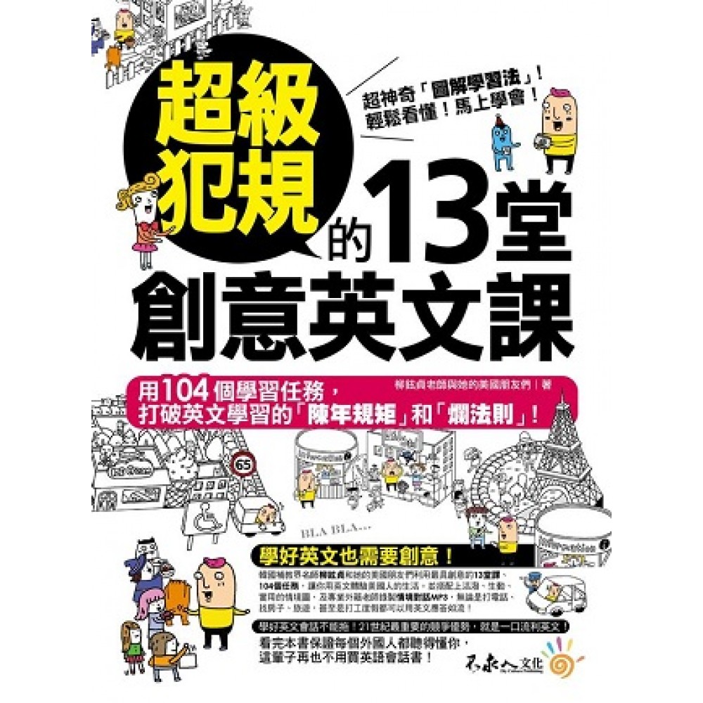為什麼車庫的英文又叫 man cave(男人的山洞)? 旅行時行李箱不見了該怎麼跟工作人員描述它的長相? 開車時沒油了,該怎麼跟工讀生說我要加無鉛汽油? 血拚時想分期付款,英文到底該怎麼說? 網購時想要貨到付款,如何才能讓賣家懂你的意思? 為什麼在學校上了十多年的英文課, 踏出台灣發現連一句都派不上用場? 其實英文就藏在我們日常生活的各個角落! 用 104 個學習任務, 打破英文學習的「陳年規矩」和「爛法則」! 用英文及全景情境圖體驗外國人的日常生活, 讓英文不再是存於紙上的平面文字, 而是跳脫課本真正融入你生活的立體語言! 學好英文也需要創意! 韓國補教界名師柳鉉貞和她的美國朋友們利用最具創意的 13 堂課、104 個學習任務,讓你用英文體驗美國人的生活。並搭配上活潑、生動、實用的情境圖,及專業外籍老師錄製情境對話 MP3,無論是打電話、找房子、旅遊,甚至是打工度假都可以用英文應答如流! 超神奇「圖解學習法」!輕鬆看懂!馬上學會! 學好英文會話不能拖!21 世紀最重要的競爭優勢,就是一口流利英文! 看完本書保證每個外國人都聽得懂你,這輩子再也不用買英語會話書! 使用說明 STEP 1 掌握英文單字! 在圖中找出必學英文單字,並熟悉每個對話的場景,圖中每個彩色的場景,就是最常用、最常發生的情況。另外在進入每課之前先預習一下上課會用到的單字,學習起來會更加順暢喔! STEP 2 掌握對話內容! 先用中文猜想對話內容,然後仔細思考用英文應該怎麼表達。要達成學習的最佳效果,不能一股腦地看一堆英文,在課前先仔細思考自己會怎麼使用、哪裡有不懂的地方,學習成效馬上加倍! STEP 3 用英文開始對話! 掌握各種情景相對應的英文會話內容,跟著由外籍老師錄製的MP3學習發音,同時複習相關的單字及片語。模仿是學習的第一步,就像小嬰兒牙牙學語一樣,不要害羞盡量模仿老師說話的發音、語調和速度吧! STEP 4 回憶學過的情景! 看圖回憶之前學習過的英文對話。如果一時想不起來,不能跳過,重新翻回前面複習相關內容。人的大腦記憶力有限,根據研究指出,在學習後的 24 小時內如果有複習,學習成效可以高達 80% 喔! STEP 5 熟悉文化常識! 若想說出符合情景的道地英文,瞭解相應的文化常識也是很重要的,你知跟著插圖學習需要掌握的文化常識。你知道車庫為什麼叫「man cave(男人的山洞)」嗎?你知道如果行李不見了該怎麼跟機場人員描述你的行李箱長怎麼樣嗎?學習英文別忘記也要瞭解英文的文化! STEP 6 鞏固所學內容! 透過圖片及小測驗再度測試自己是否有吸收本課所教授的內容,並根據情境選出最符合的對話。雖然大家都很討厭考試,但是它是測試自己有沒有好好吸收最快的方式,認真地作答,看看自己的英文程度上升的多少吧!