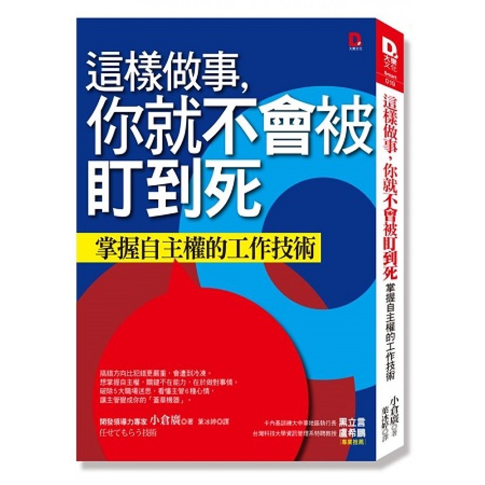 讓你工作自主又快樂 撰寫本書《這樣做事,你就不會被盯到死:掌握自主權的技術》的契機,在於二○一一年一月,拙作《交辦的技術:當主管就該懂的帶人訣竅》(大樂文化出版)的問世。《交辦的技術》在無法交辦工作給部屬的主管之間大受歡迎,成為暢銷書。然而,為了聲援處於相反的立場,也就是無法受到重用的部屬,於是企畫這本書。 再回想一下,撰寫《交辦的技術》的起點,在於我和某位演講聽眾的對話。那時候,我剛結束演講,正準備回家,一位稍有點年紀、擔任管理職的聽眾走過來和我交流。他說:「小倉先生,感謝您今天的演講。您的說法真是有道理。主管應該更加信任部屬,並把任務交辦給他們才對。不過...。」 他說著說著,突然躊躇起來,並心灰意冷地說:「雖然您說得沒錯,但不管怎樣,就是不能把任務交辦給『無能的部屬』。當主管打算改變作為的時候,如果部屬不再努力一點,不改變想法的話,那麼按照現在的狀況,想要靠他們也靠不住啊!」 對於這個問題,我將想法寫在《交辦的技術》裡,並且強調:「並非等到部屬變得有能力時,才將工作交辦給他;而是因為主管交辦,所以部屬才逐漸變得有能力。交辦的本質在於,即使部屬做不到,主管也照樣交付任務。如果認為這對部屬而言是強人所難,就不交辦,那麼始終沒有開始。想等到部屬變得有能力才交辦,就永遠無法交付任務。」 所以,並非等到部屬改變之後,才將任務交付給他。首先該改變的是主管。但是,凡事都是一體兩面。也就是說,無法交辦任務不單只是主管的錯,想承辦的部屬也必須改變想法,一點一滴累積努力才行。 主管和部屬齊聚時,應該先把矛頭指向自己,而不是指向對方:「自己沒有錯,錯在對方。」並且,第一步是改變自己,而不是企圖改變對方。如此一來,「交辦」與「承辦」的世界勢必能夠實現。 在本書中,我寫下自己年輕時許多丟臉、痛苦的回憶。我擔任部屬時,總是單方面思考:「主管不交辦給我,不給我自主權,是他不對。」然而,在我一點一滴改變自己的想法和行為,而主管也逐漸將工作交辦給我的過程中,我開始成長。本書就是以這些軌跡為基礎,整理、歸納出讓上司將關鍵任務交辦給你的訣竅。 副書名是「掌握自主權的工作技術」。在我身上確實可以印證這句話。以往,我總是向主管抱怨:「不交辦給我,不給我自主權」。但是,當我一點一滴改變自己時,主管也自然而然改變了。我是如何改變想法,進而改變言行舉止呢?相信你一定可以在書中找到答案。 謹將本書獻給像我一樣,性格倔強、煩惱「為何主管不給我自主權」的所有部屬。