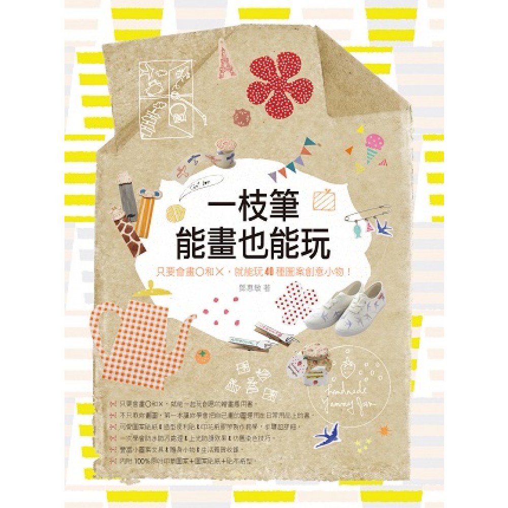 一枝筆能畫,還能馬上玩創意! 將自己的小圖畫,變成獨一無二的日常小用品。 對繪畫有興趣,卻不知如何下筆? 會畫圖,但不知如何運用圖案玩創意? 特別喜歡用手繪圖的生活雜貨? 想讓自己的繪畫做成獨一無二的商品? 喜歡製作手感雜貨,送給親朋好友? 只要會畫O和×,就能玩40種圖案創意小物! 把自己的小圖畫,放在包包、帆布鞋、耳環、髮夾、杯盤、標籤、貼紙上,馬上實現藝術夢。 所有的繪畫書都教你畫,但沒有教你怎麼應用學會的畫。 這是第一本教你把自己手繪的畫變成藝術感的日常小物的應用書。 ★超神奇!自己製作可愛圖案標籤貼紙+獨創印花紙膠帶+造型便利貼,不必再買昂貴的紙膠帶,不必再和別人一樣使用相同的便利貼,不必再用單調的白貼紙。 ★一次學會防水防污處理+上光防護效果+仿舊染色技巧,讓完成品的質感立刻提升。 ★收錄小圖案文具&隨身小物&生活雜貨,跟著做,發揮自己的創意天分。 ★內附100%原吋印章圖案&圖案貼紙&貼布紙型,立刻做,成就感百分百。 想學畫圖,還不會畫圖的人;學會畫圖,但不會玩創意的人;很會畫圖,但不知道可以變成日常用品的人,一定要將這本豐富精采的塗鴉小物應用集獻給你,讓每個人都可以實現藝術夢!