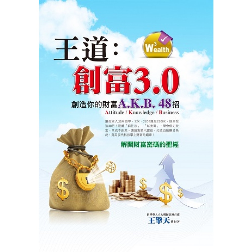 解開財富密碼的聖經 創造你的聚富A(Attitude) 態度、K(Knowledge) 知識、B(Business) 事業 48招 讓你收入加兩個零,22K 、220K還是2200K,就差在這48招! 學生該讀、社會新鮮人要看、創業族必備! 一本絕對致富的終極祕笈,讓你創業沒煩惱,存款、財富三級跳! 啟發你的財富新思維,脫離「窮忙族」、「薪光幫」,學會借力致富、零成本創業、讓銷售額大躍進,打造自動賺錢系統,運用現代科技攀上財富的巔峰!創造自己的財富星光大道! 你知道什麼是比特幣嗎?我的商品要如何搭上「滑世代」的風潮?創業沒錢怎麼辦? 創業計劃書要怎麼寫?我的產品賣不掉,誰來幫幫我?到底有沒有更省力的方法賺更多的錢? 如果你曾有過以上的疑問,那麼看這本書,就對了! 誰說賺大錢一定要很辛苦?讓成功創立近20家公司的總裁教你如何創業致富,只要照著做,保證讓你的財富值一飛衝天! 【本書特色】 ★創富1.0:給你正確財務觀念,讓你小資也能變多金。 ★創富2.0:創造「0成本創業」的奇蹟,打造專屬於你的財務自由之路。 ★創富3.0:用最先進的科技與最新的商業模式,來打造專屬於個人的自動賺錢機器! ★集投資、創業、行銷、人脈經營等全面向創富知識於一書的全能寶典! ★Tips to Wealth! 直接告訴你創富成功的步驟與訣竅,照著做,準沒錯! ★Have Your Thought! 領導你思考創富的可能與盲點,創造專屬於你的財富星光大道!